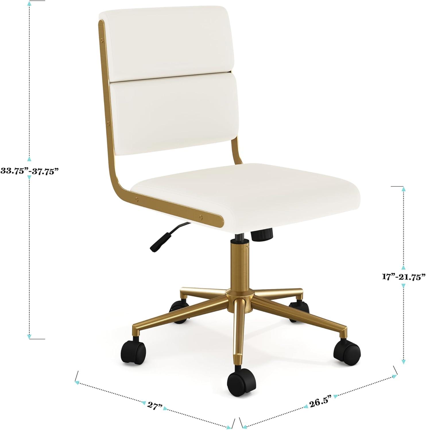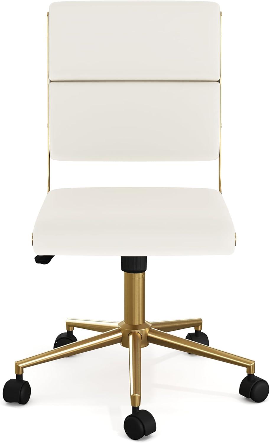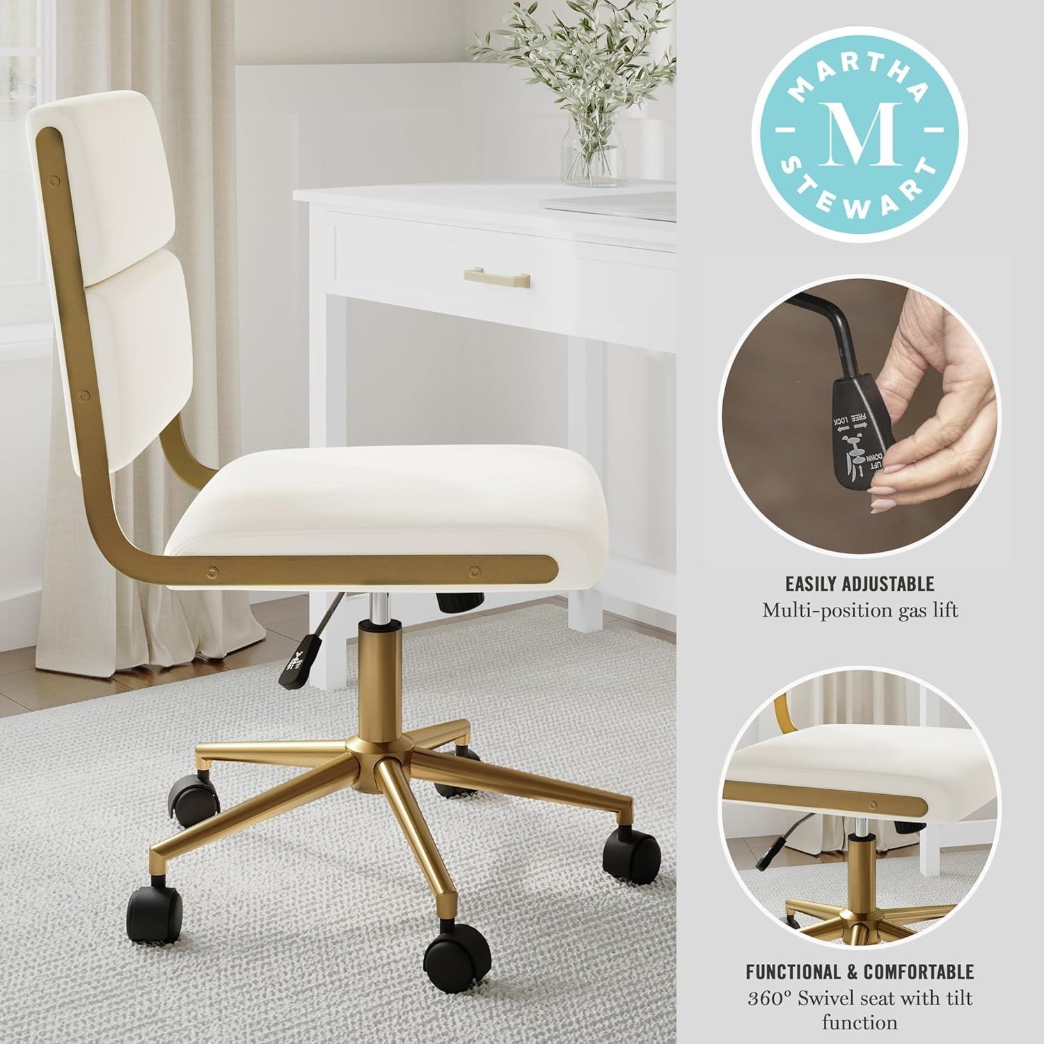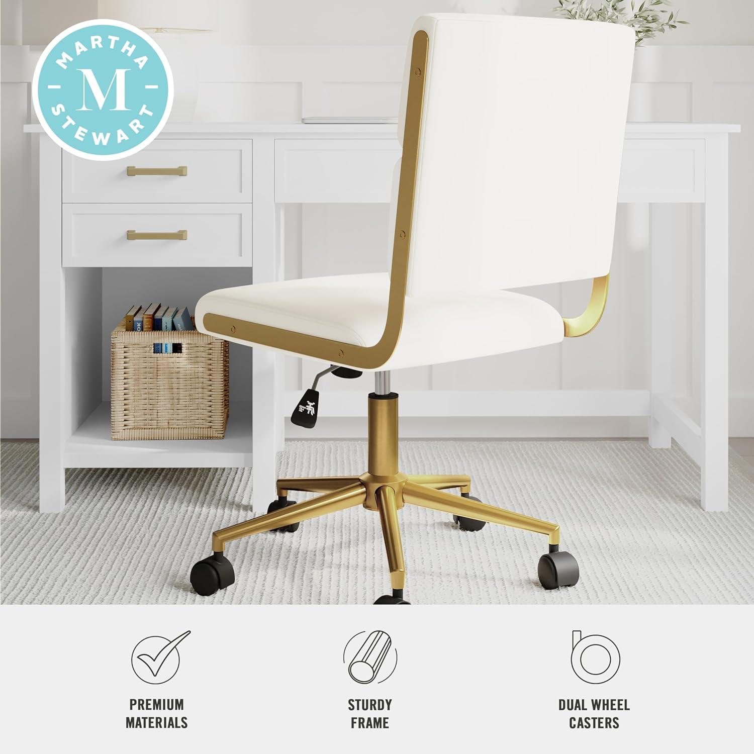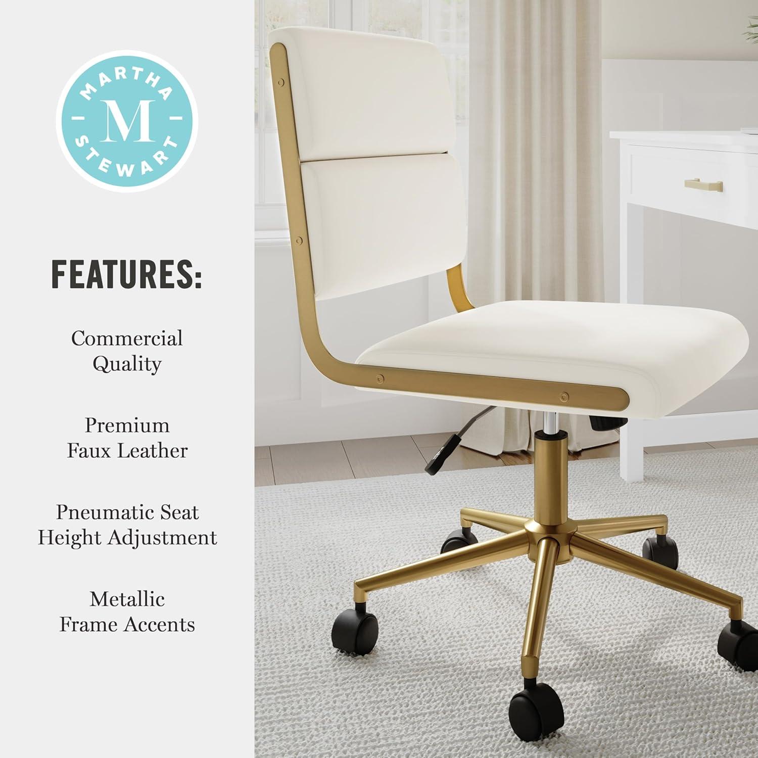 Martha Stewart Lulu Swivel Task Chair with Height Adjustable Seat for Home Office in Off White Faux Leather with Polished Brass Frame(Off White Faux Leather/Polished Brass Frame)