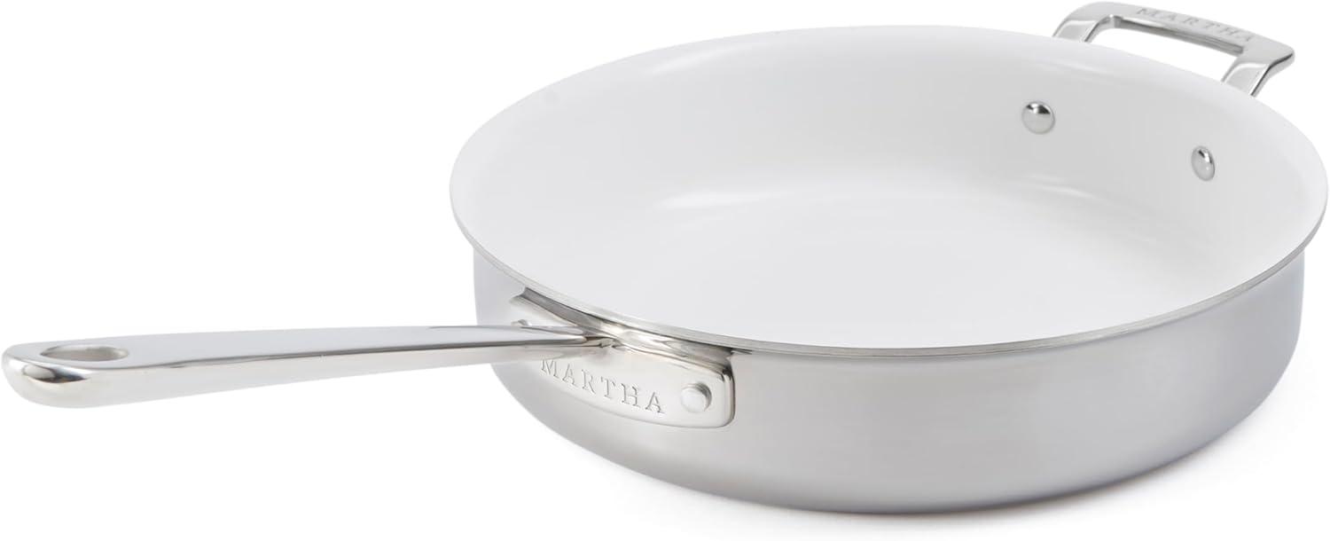 Martha Stewart Martha 8″ Triply Stainless Steel Saute Fry Pan w/Ceramic Non-Stick Interior(Stainless Steel)