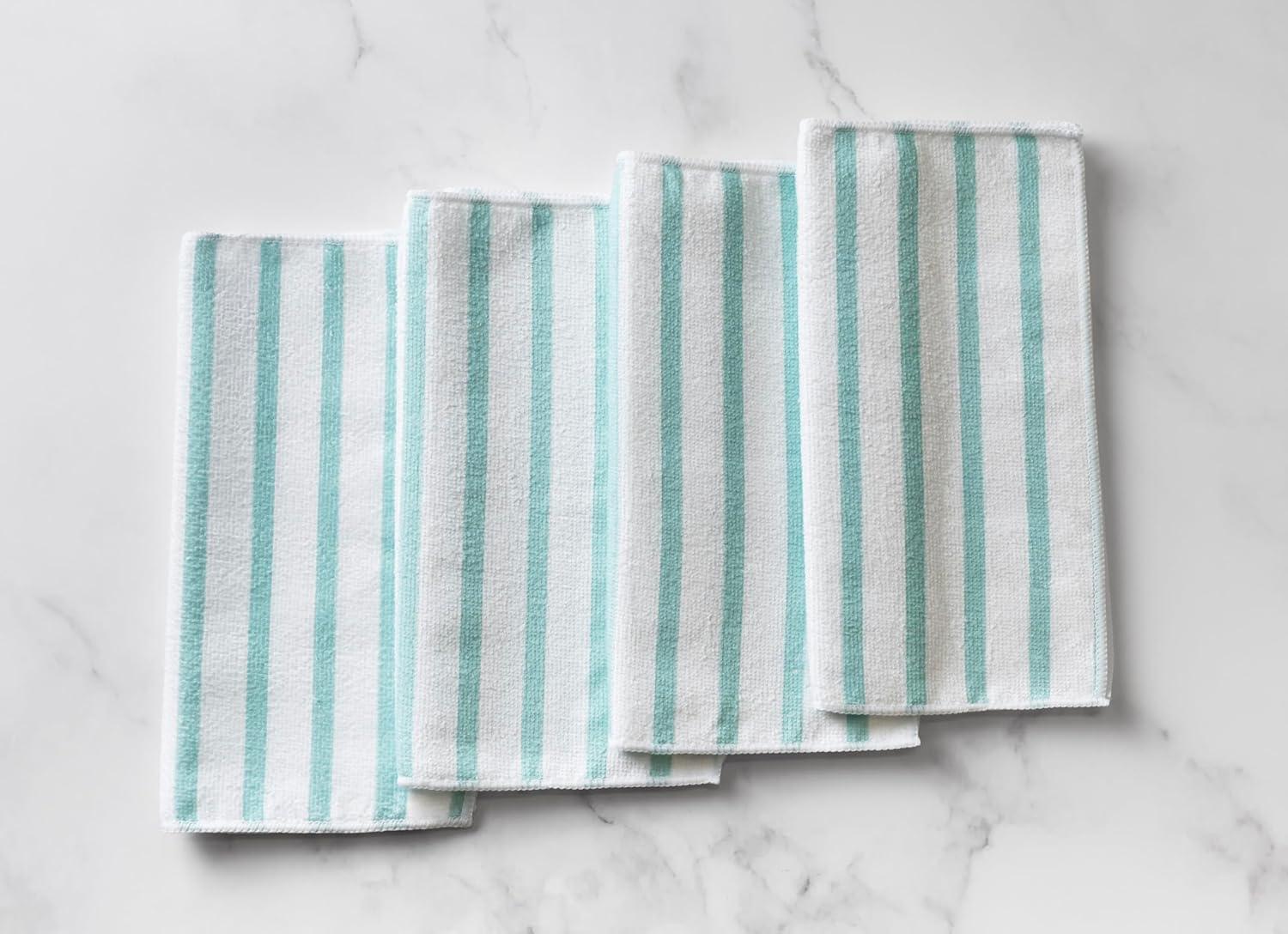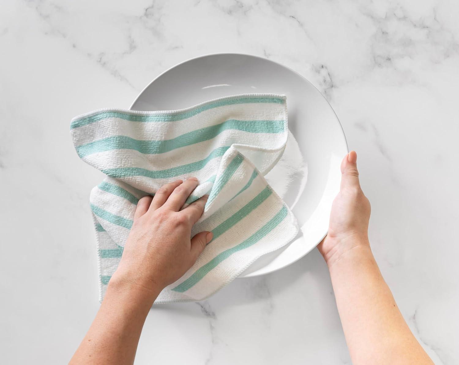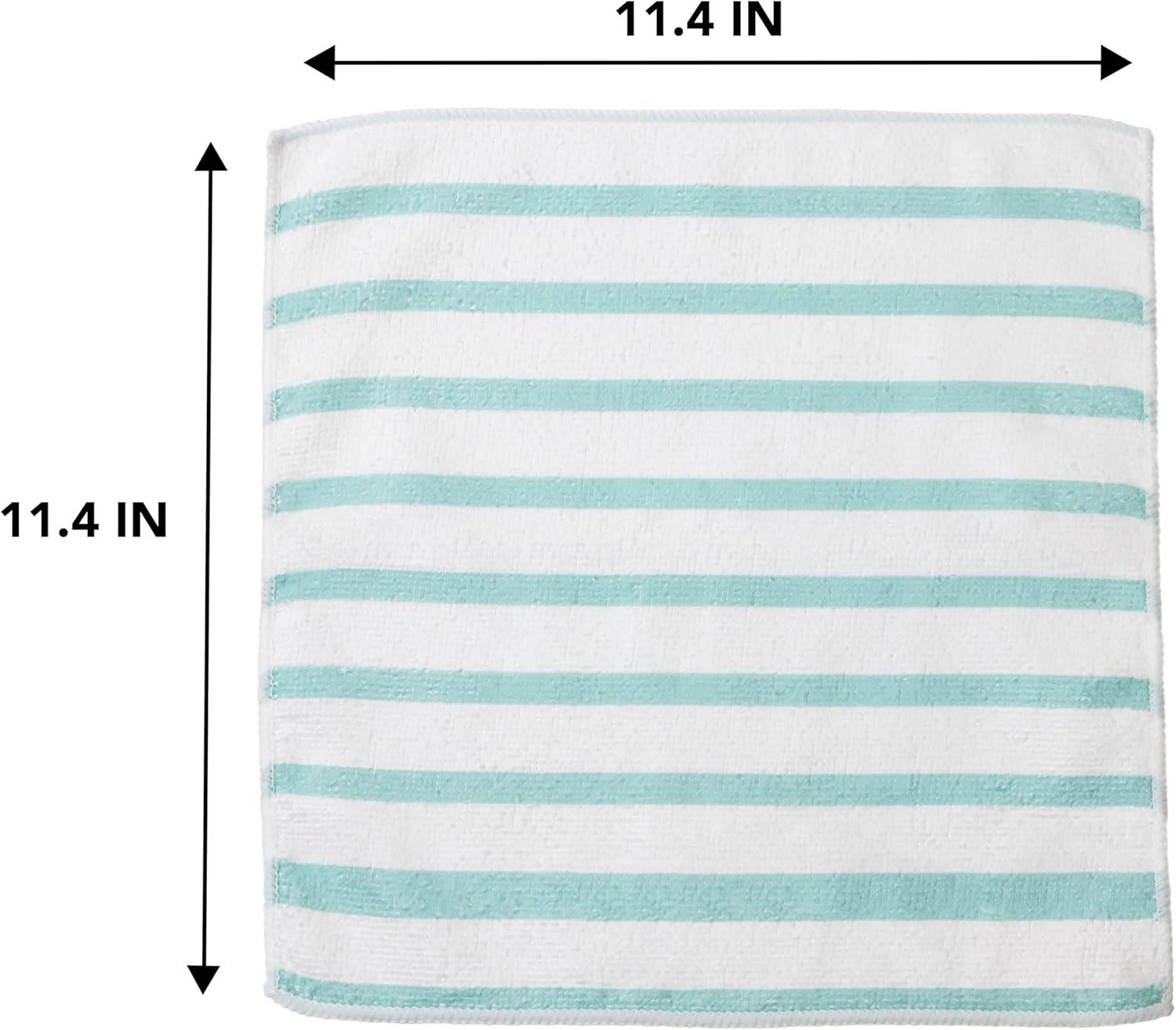 Martha Stewart Microfiber Cleaning Cloths, Ultra-Absorbent, Lint-Free Cleaning Towels for Home & Kitchen, Faux Bois Design, 11 Inches, 24 Count(Teal Stripes)