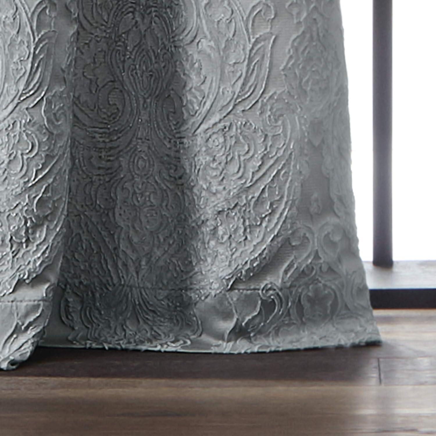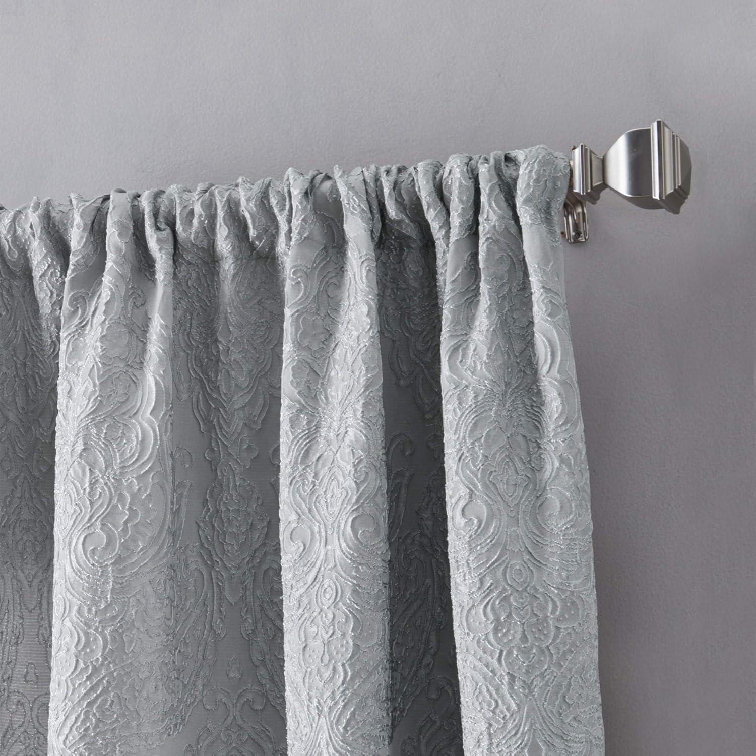 Martha Stewart Milan Damask Room Darkening Lined Rod Pocket Window Curtain Single Panel, 84", Ivory(Grey)