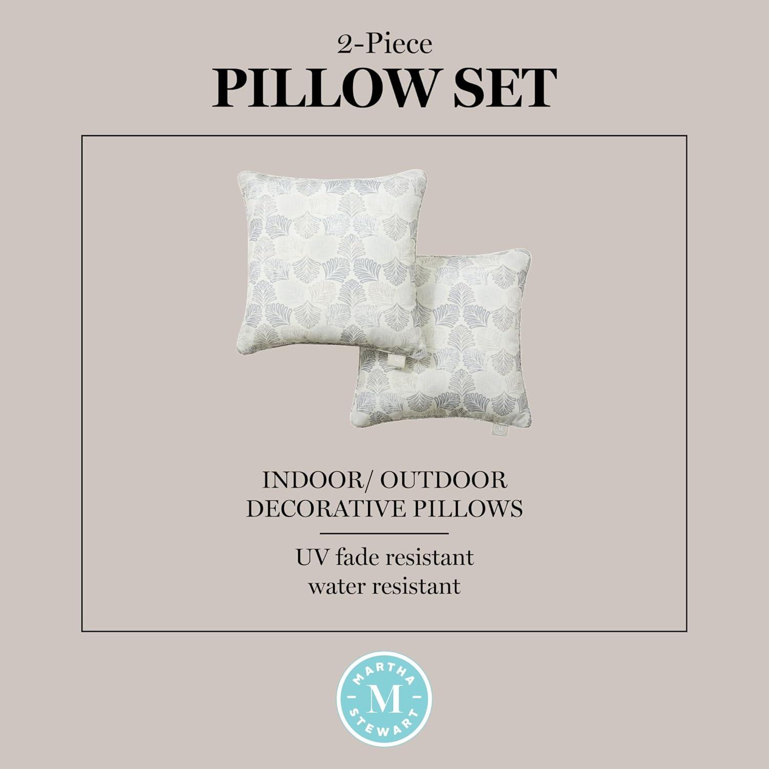 Bring comfort to your outdoor living spaces with the Martha Stewart Modern Banana Leaves indoor/outdoor decorative pillow 2-pack set. Printed with a modern tropical design, these pillows will add comfort and style to your outdoor décor. Use these decorative throw pillows indoors or outdoors, as they’re made with UV-fade and water-resistant materials and are soft for everyday use. This indoor/outdoor decorative pillow set includes two filled throw pillows made of 100% Polyester, making them easy to clean. Simply spot clean or handwash as needed for continued use in your home. Standard 100 by OEKO-TEX Certified.