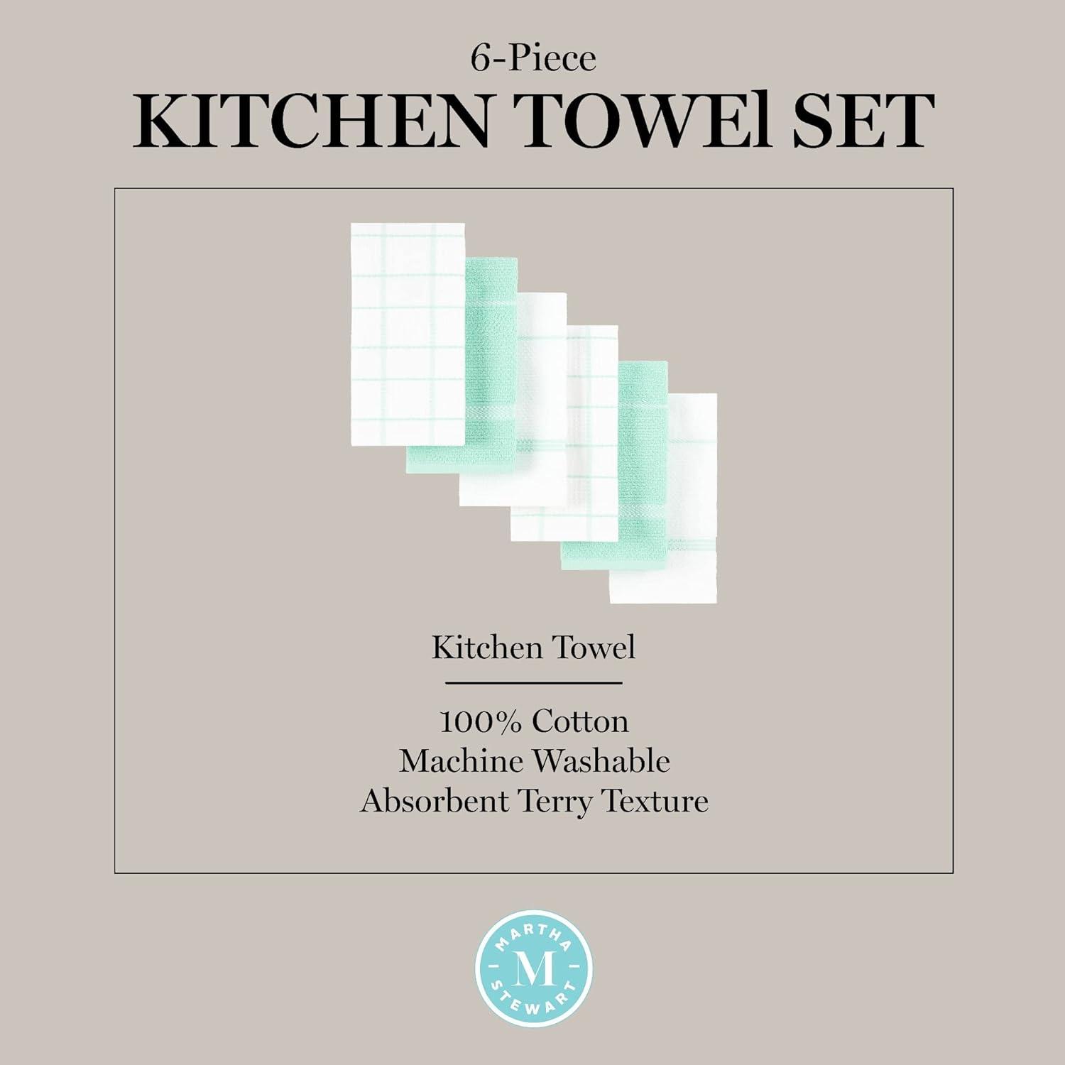 PLAID & STRIPE DESIGN: The Martha Stewart Waffle/Solid Kitchen Towel 6-Pack Set is beautifully designed with a plaid and stripe design over waffle and terrycloth textured towels. This set will brighten your kitchen while cooking, baking, or cleaning.
