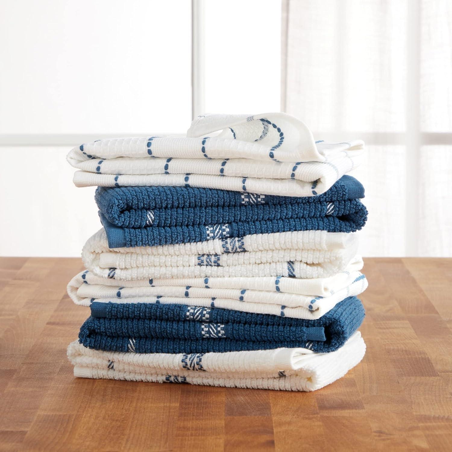 DUAL-PURPOSE KITCHEN TOWELS: This kitchen towel set offers many uses with its double-sided construction. Use the textured front for display, cleaning, and cooking and the absorbent terrycloth back for drying dishes or soaking up spills.