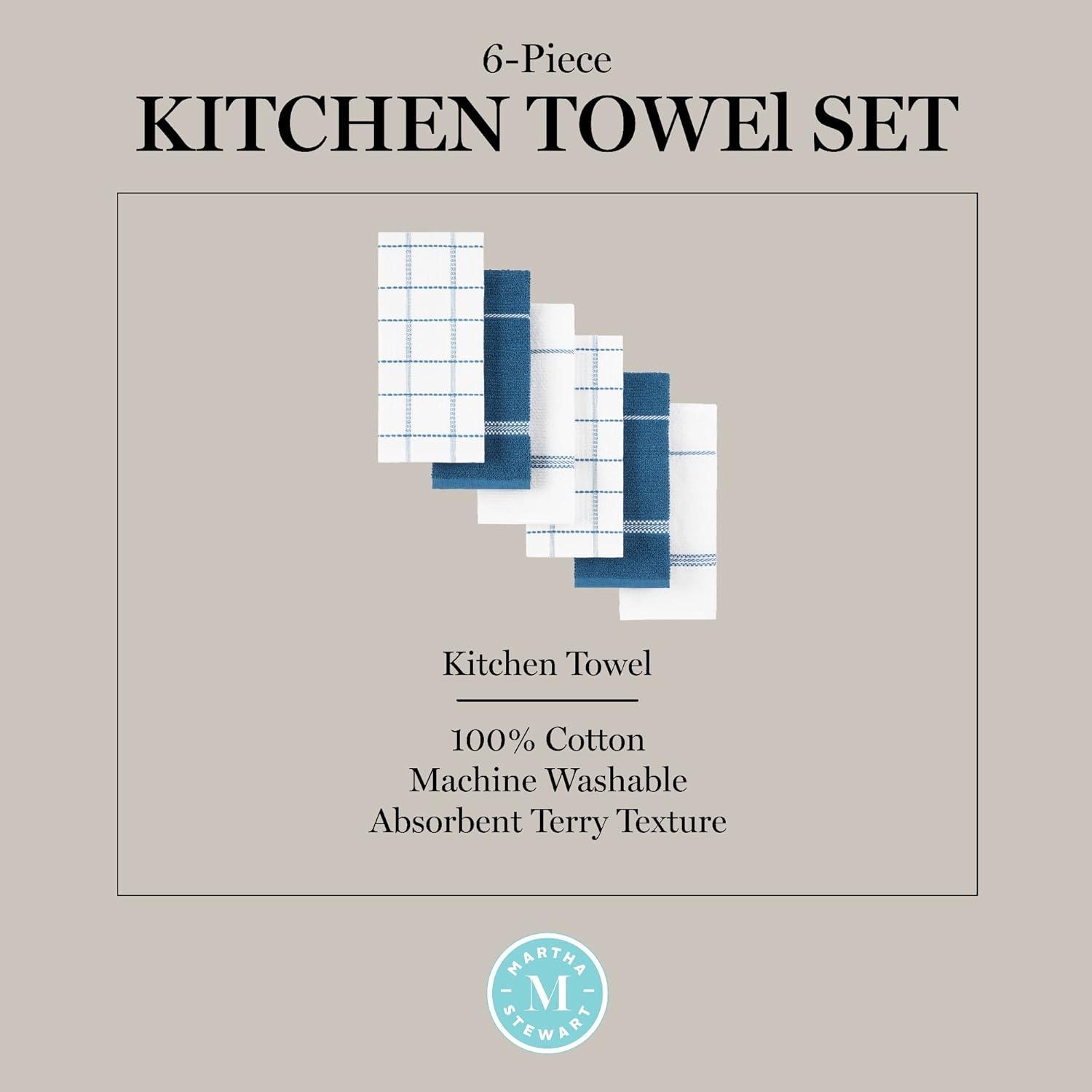 PLAID & STRIPE DESIGN: The Martha Stewart Waffle/Solid Kitchen Towel 6-Pack Set is beautifully designed with a plaid and stripe design over waffle and terrycloth textured towels. This set will brighten your kitchen while cooking, baking, or cleaning.