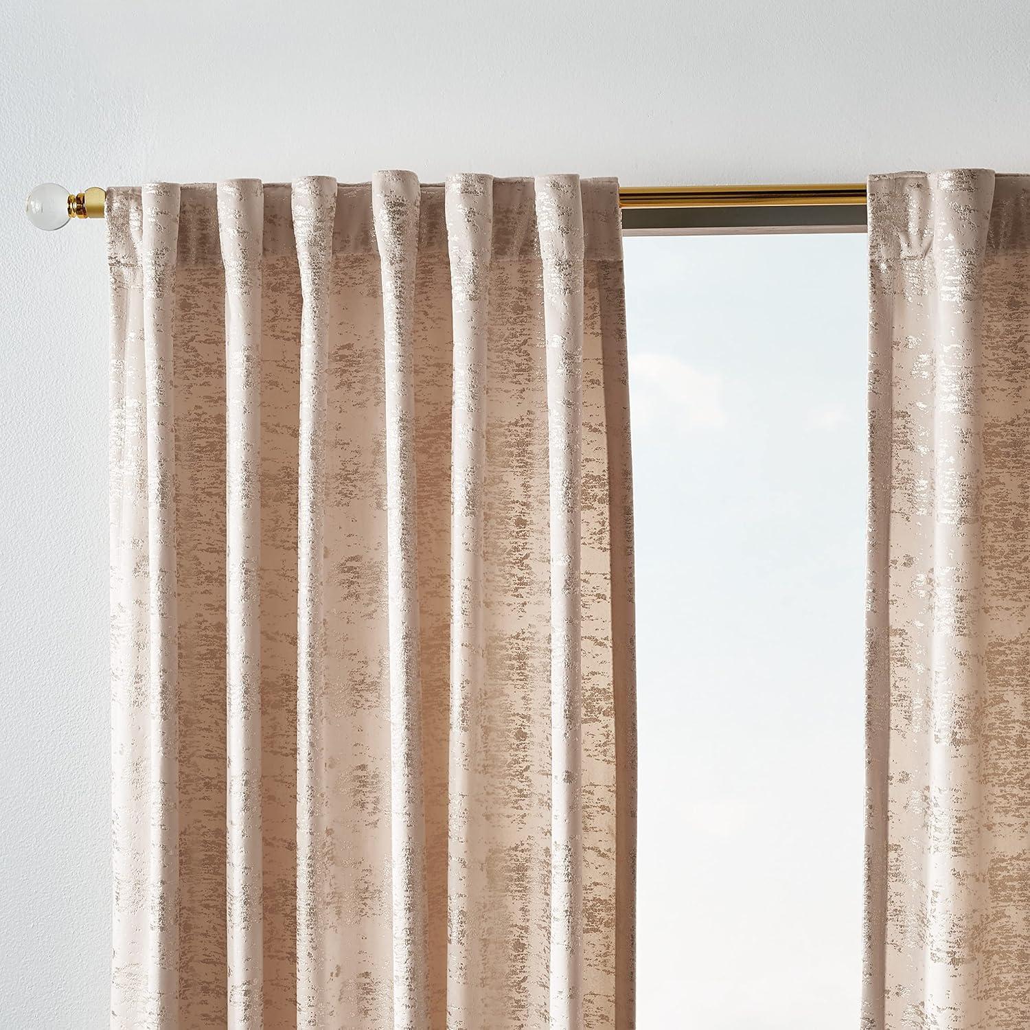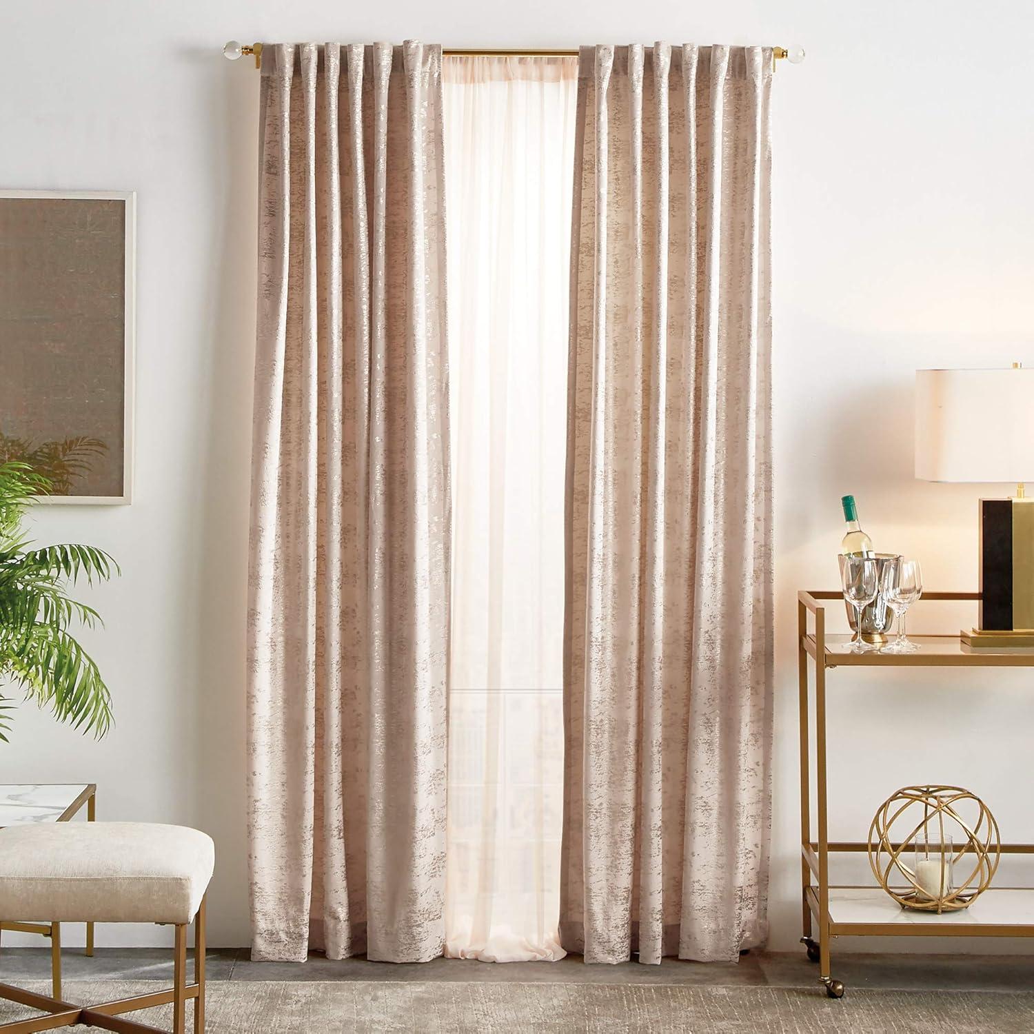 Martha Stewart Monroe Metallic Velvet Back Tab Window Curtain Panel Pair, 95, Blush(Blush)