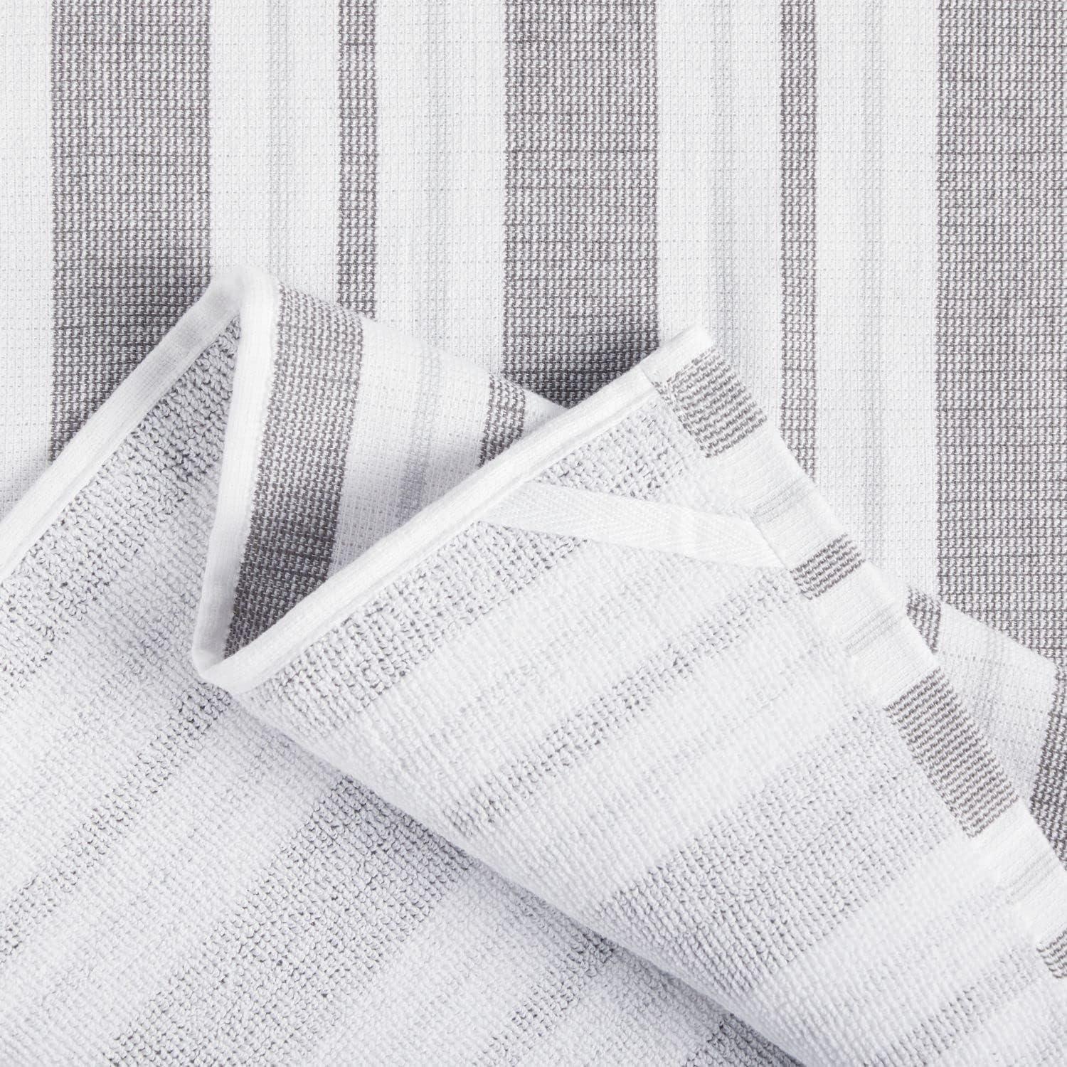 2-PACK TOWEL SET: Includes two (2) kitchen towels with a stripe print for a stylish accent. Each generously sized towel measures 18″ W x 28″ L.