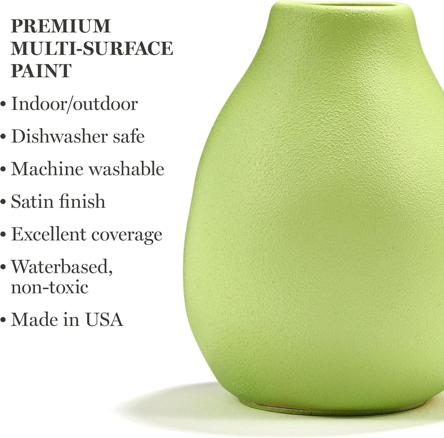 Featuring rich, highly pigmented satin colors, the Martha Stewart 12-piece Multi-Surface Satin Paint Set allows you to create beautiful, professional-quality projects just like Martha. Each captivating color boasts exceptional coverage, with a smooth, creamy texture that ensures long-lasting durability. Perfect for a range of techniques including sponging, stenciling, and stamping, these paints are easy to apply and work on multiple surfaces. Plus, they are AP-certified and non-toxic, offering the best painting experience. Bring your projects to life with vibrant, on-trend colors and the exceptional quality of Martha Stewart paints. Additional Details: Martha Stewart Satin Paints can be used on glass and ceramics, making them dishwasher-safe on the top rack once cured. To cure, air dry the items for 1 hour then place them in a cool oven. Set the oven to 350 degrees Fahrenheit and bake for 30 minutes. Let them cool in the oven to room temperature and avoid using for 72 hours for best results. To cure Satin paint for machine washing, heat set painted fabric with an iron on cotton setting, no steam.