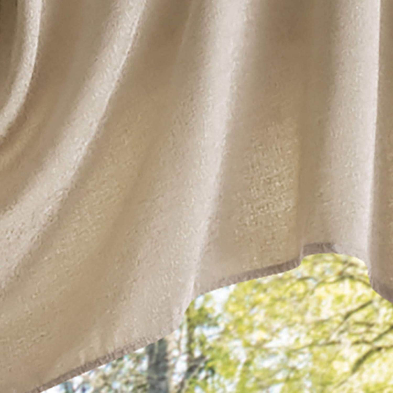 LIGHT FILTERING Unlined valance allows natural sunlight to shine though window; Medium weight; Velvet like texture with sheen; Fabric has dark flecks for added dimension