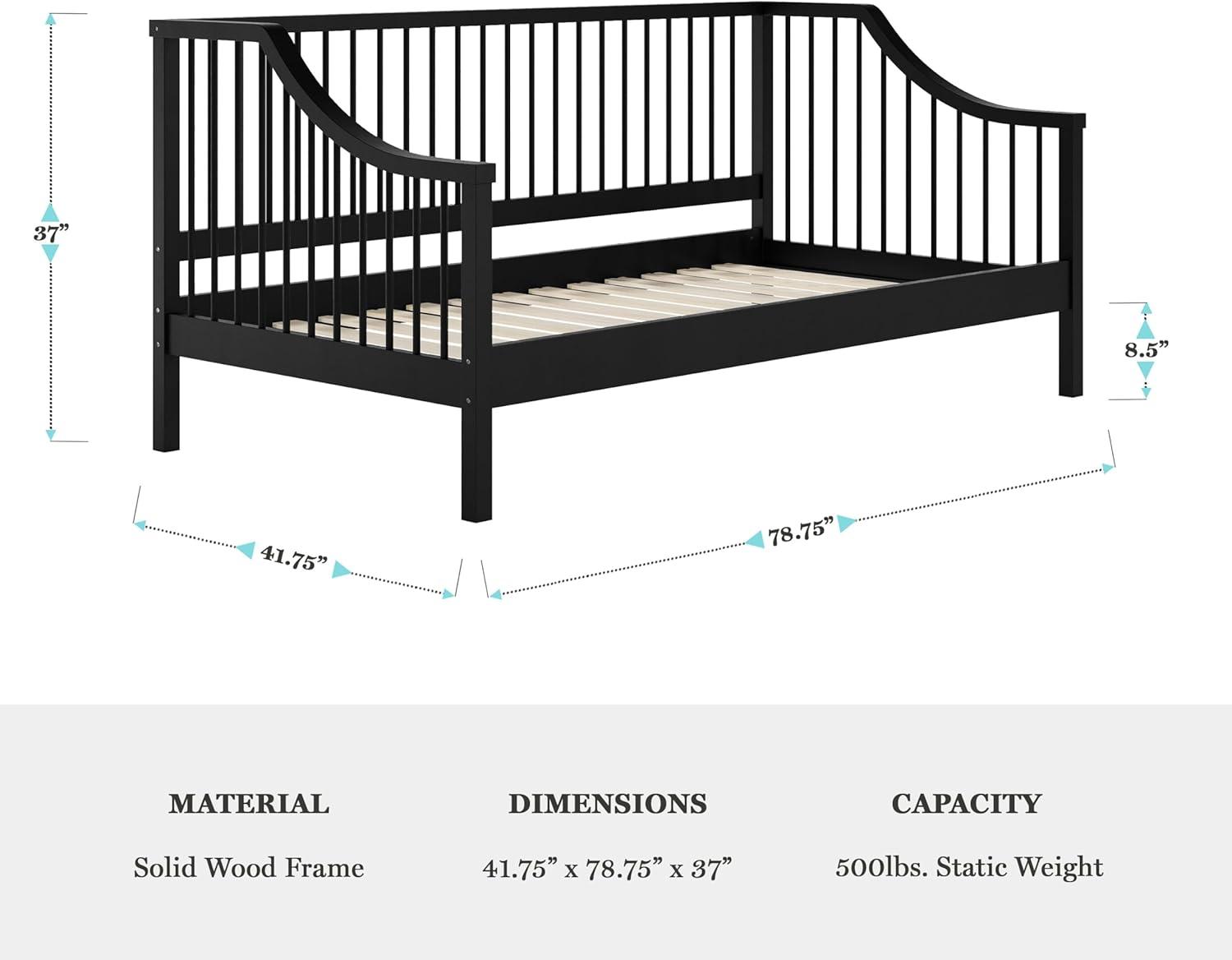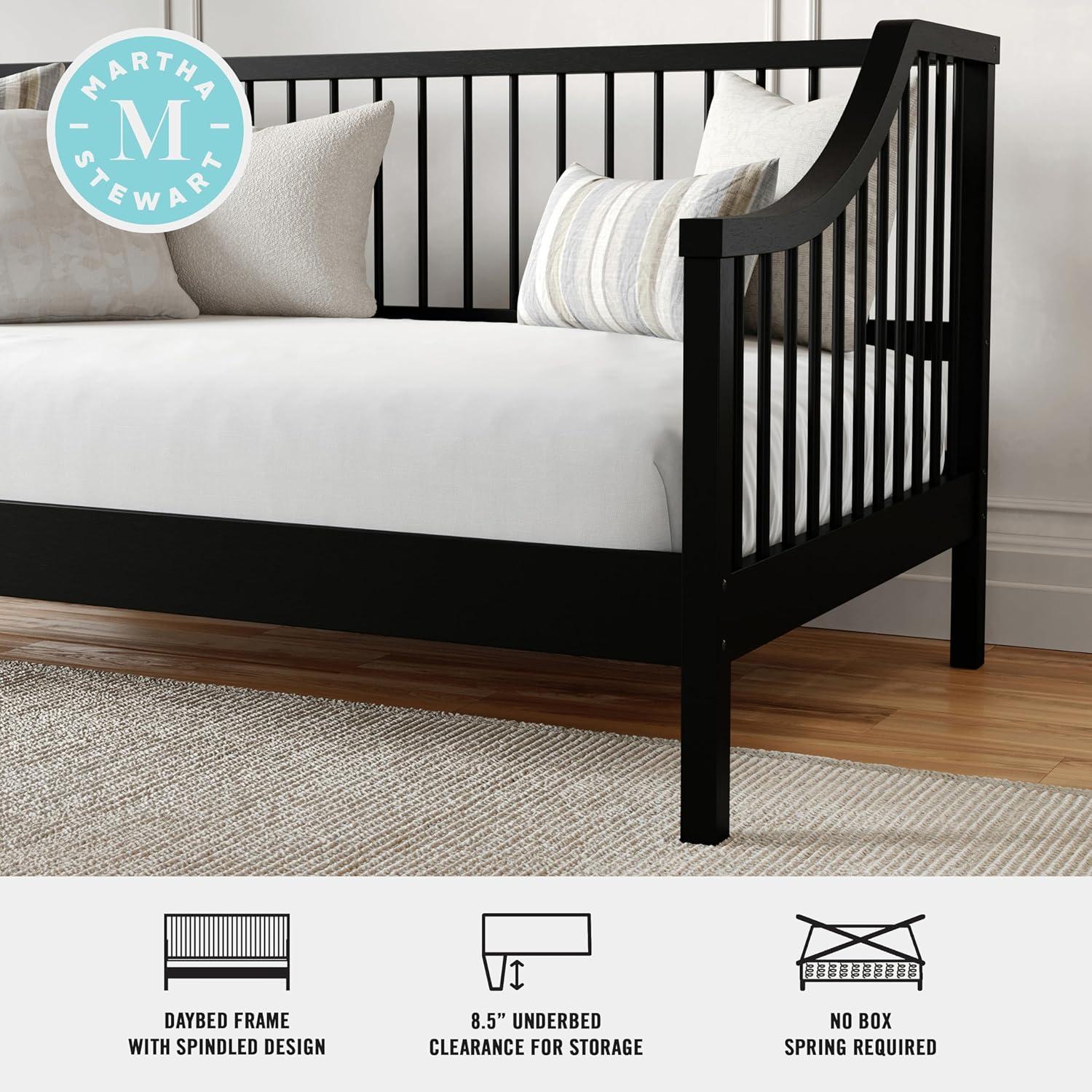 Comfort and efficiency are essential in the modern household and the versatile Martha Stewart Neely Solid Wood Platform Daybed meets the challenge effortlessly and elegantly. The beautifully contoured frame features wooden spindles for a traditional point of view that adapts to any environment. Ideal for apartments and smaller spaces, this multitasking daybed frame poses as comfortable seating during the daytime only to convert to a cozy sleeping nook at night. Comprised of solid wood with an engineered wood veneer and wooden support slats, this twin-size daybed ensures optimal support for your mattress with no box spring needed and holds up to 500 lbs. of static weight capacity. This wooden daybed is designed with 8.5 inches of underbed clearance for much needed storage. The recommended 2-person assembly can be achieved in under an hour with the included assembly and tools. Optimize your sleep experience and pair this bed with one of our premium Martha Stewart SleepComplete mattresses for an exceptional look and luxurious comfort.