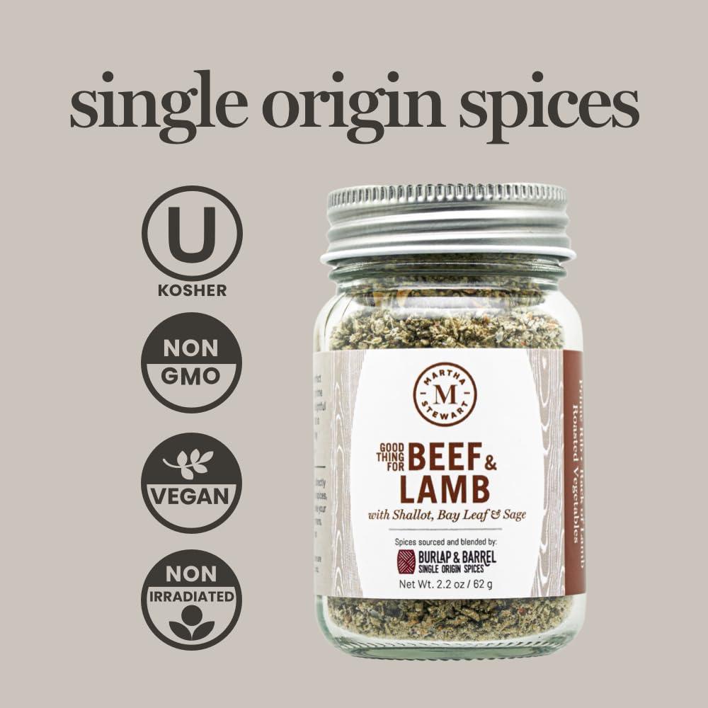 Martha Stewart Pork & Poultry Seasoning - Martha's Own Spice Blend Made with Single Origin Herbs and Spices from Burlap & Barrel - Perfect for Seasoning Roast Chicken and Pork - 1.4 oz Glass Jar(Beef & Lamb)