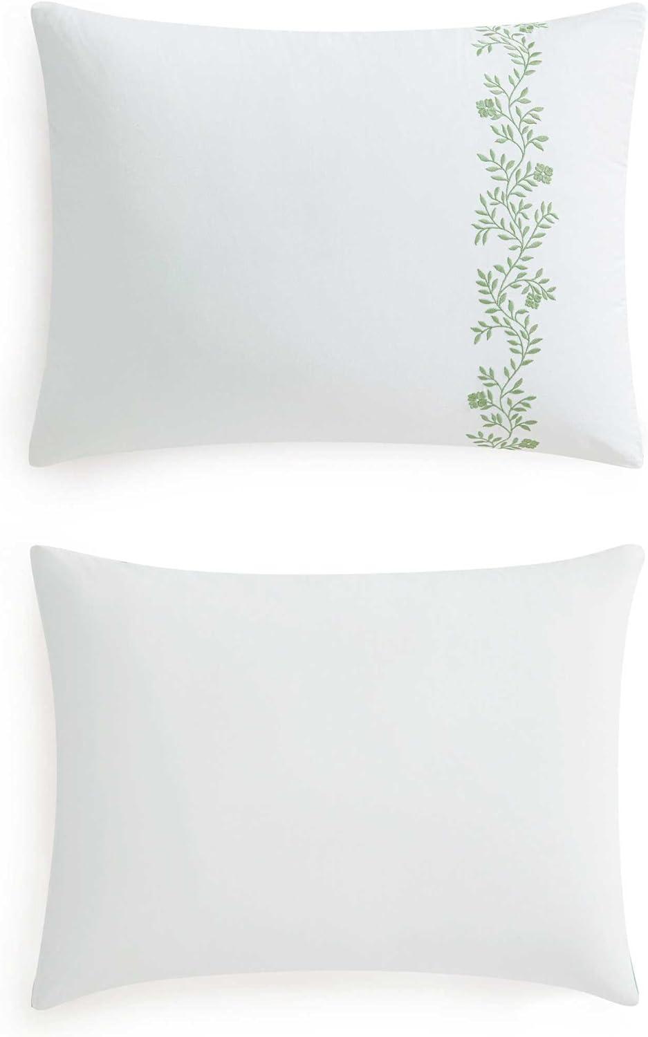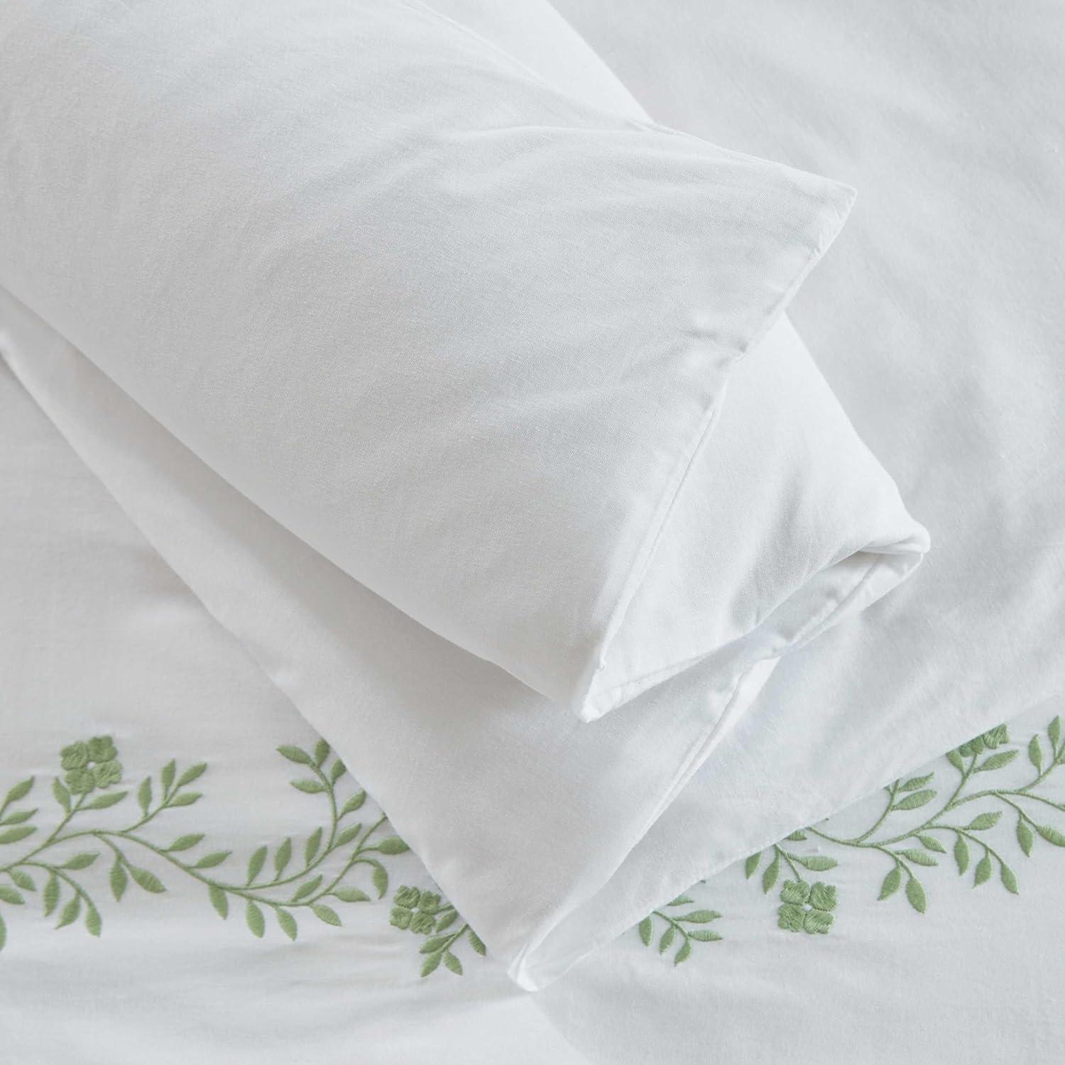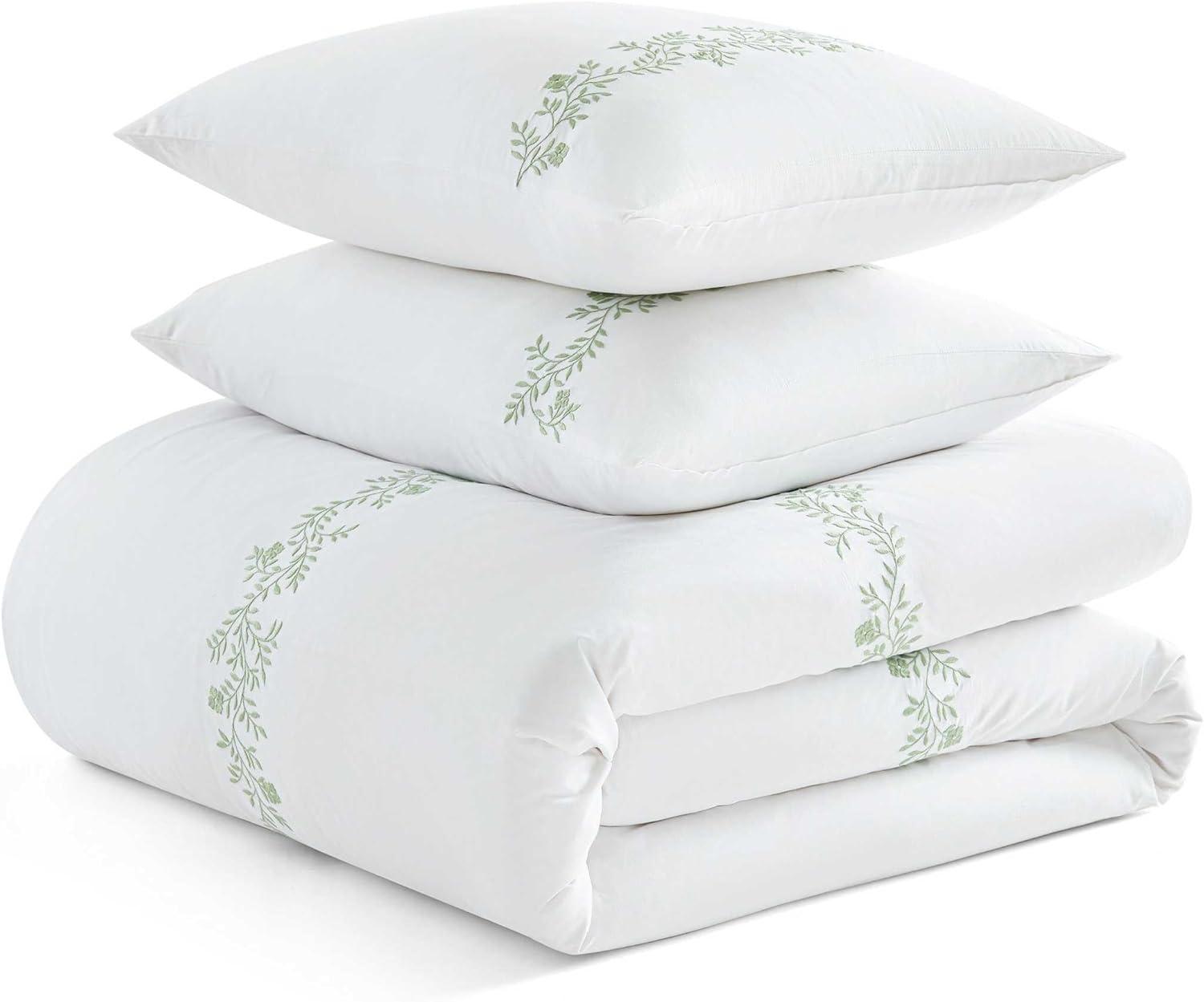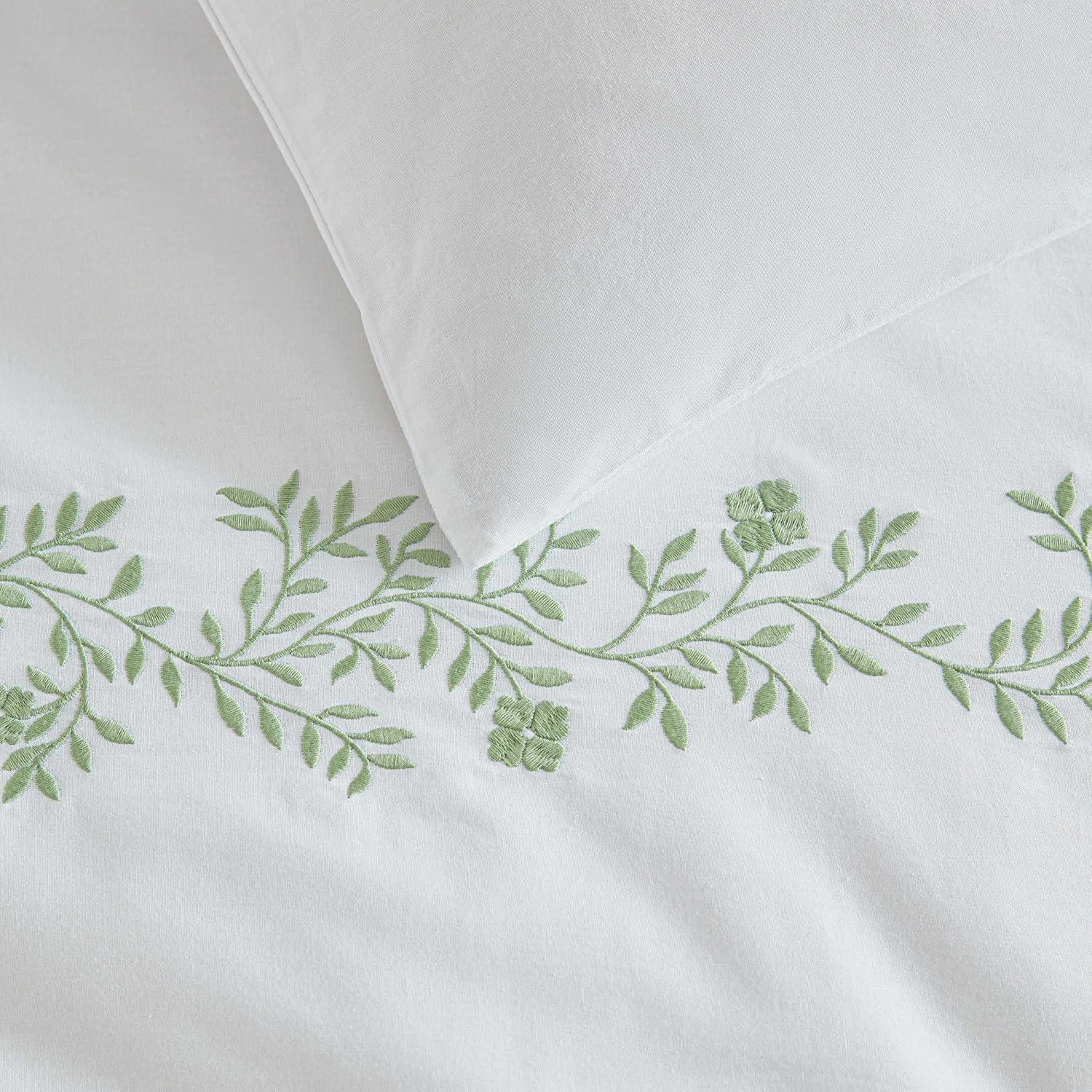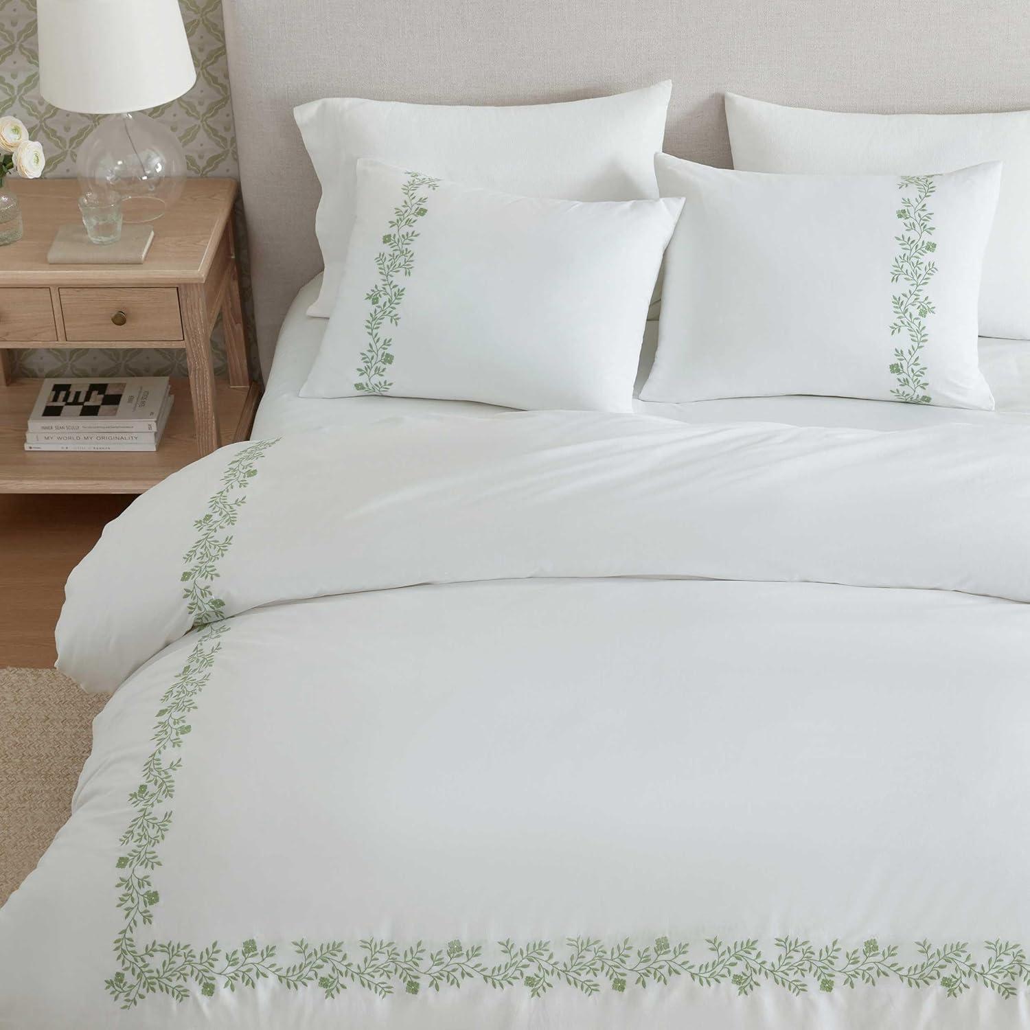 Martha Stewart - Queen Comforter Set, Naturally Soft Cotton-Rich Jacquard Bedding w/Matching Pillowcases, Textured 3 Piece Bed Set (Garden Trellis White)(Garden Path Embroidery Green)