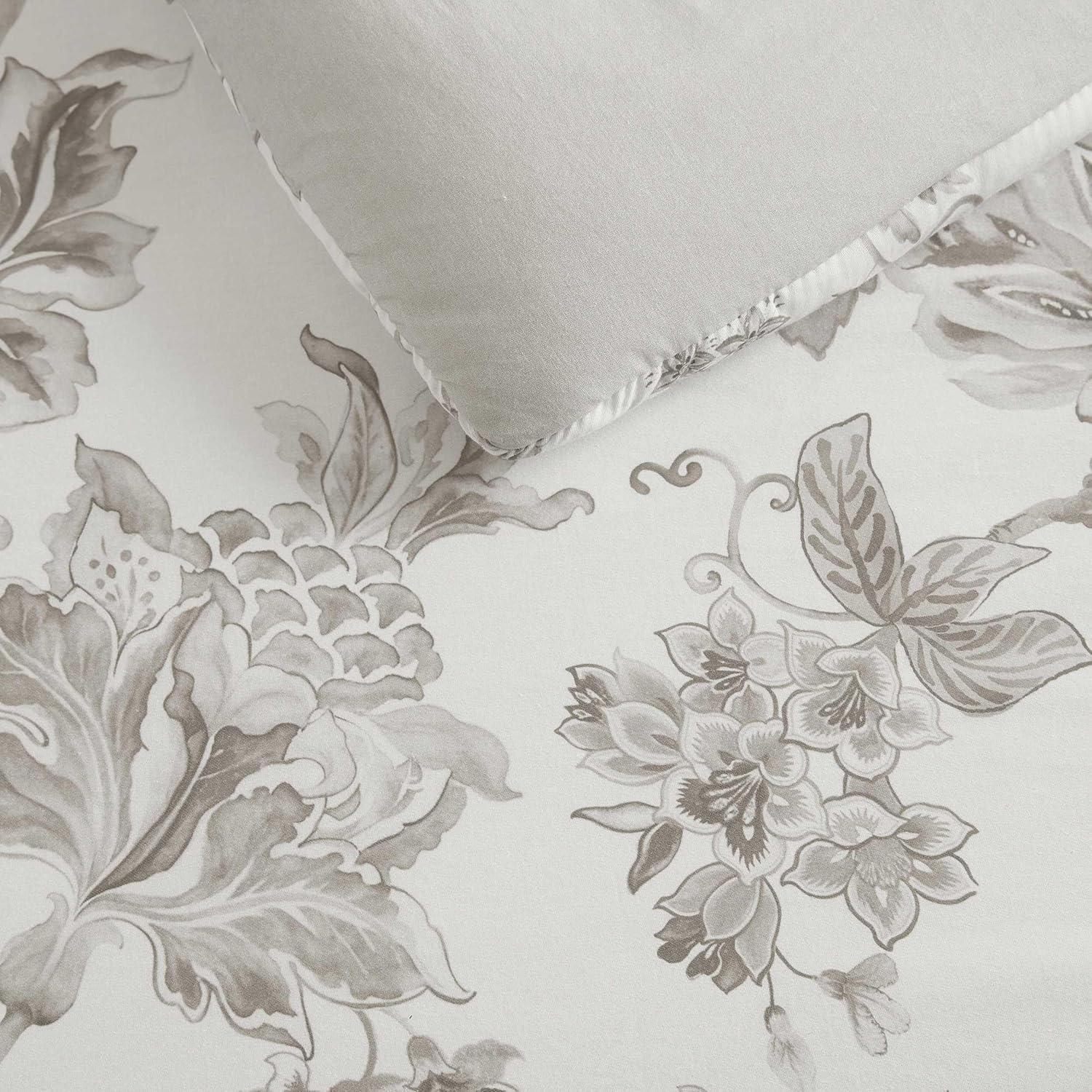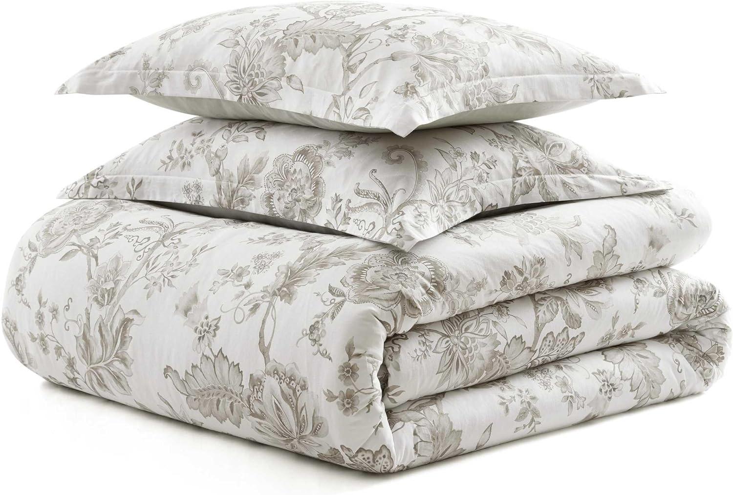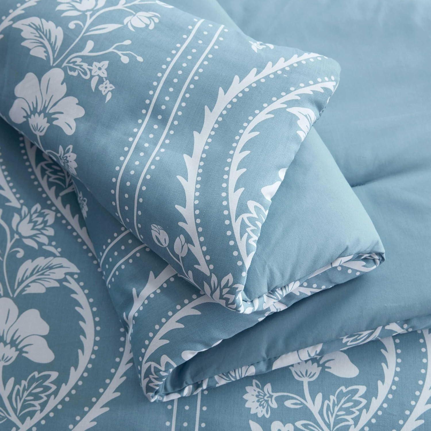 Martha Stewart – Queen Duvet Cover Set, Smooth Sateen Front with Subtle Sheen & Lightweight Cotton Percale Reverse, 3 Piece Bed Set with Matching Pillowcases (Sophia Stripe Blue)(Vivian Floral Blue)