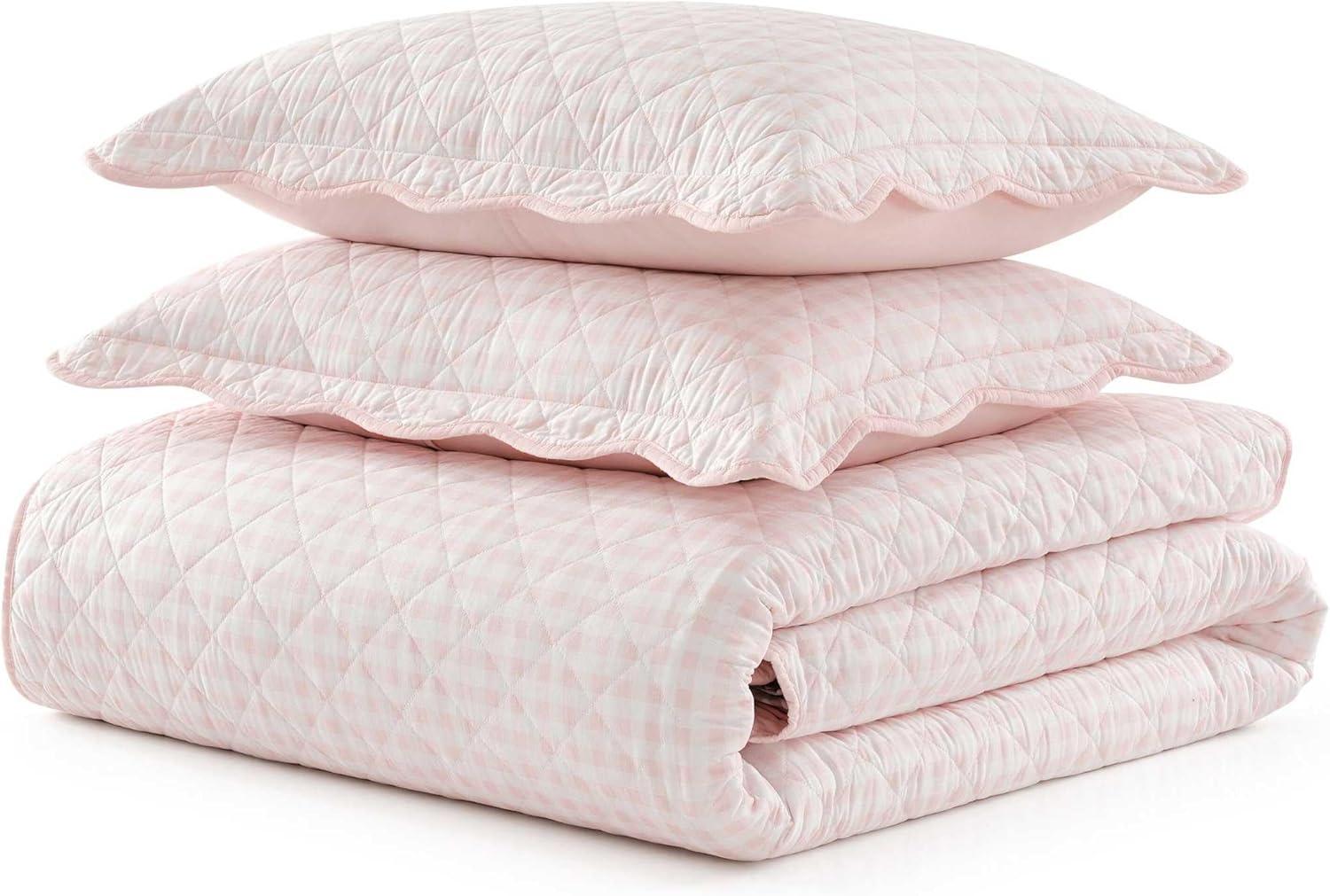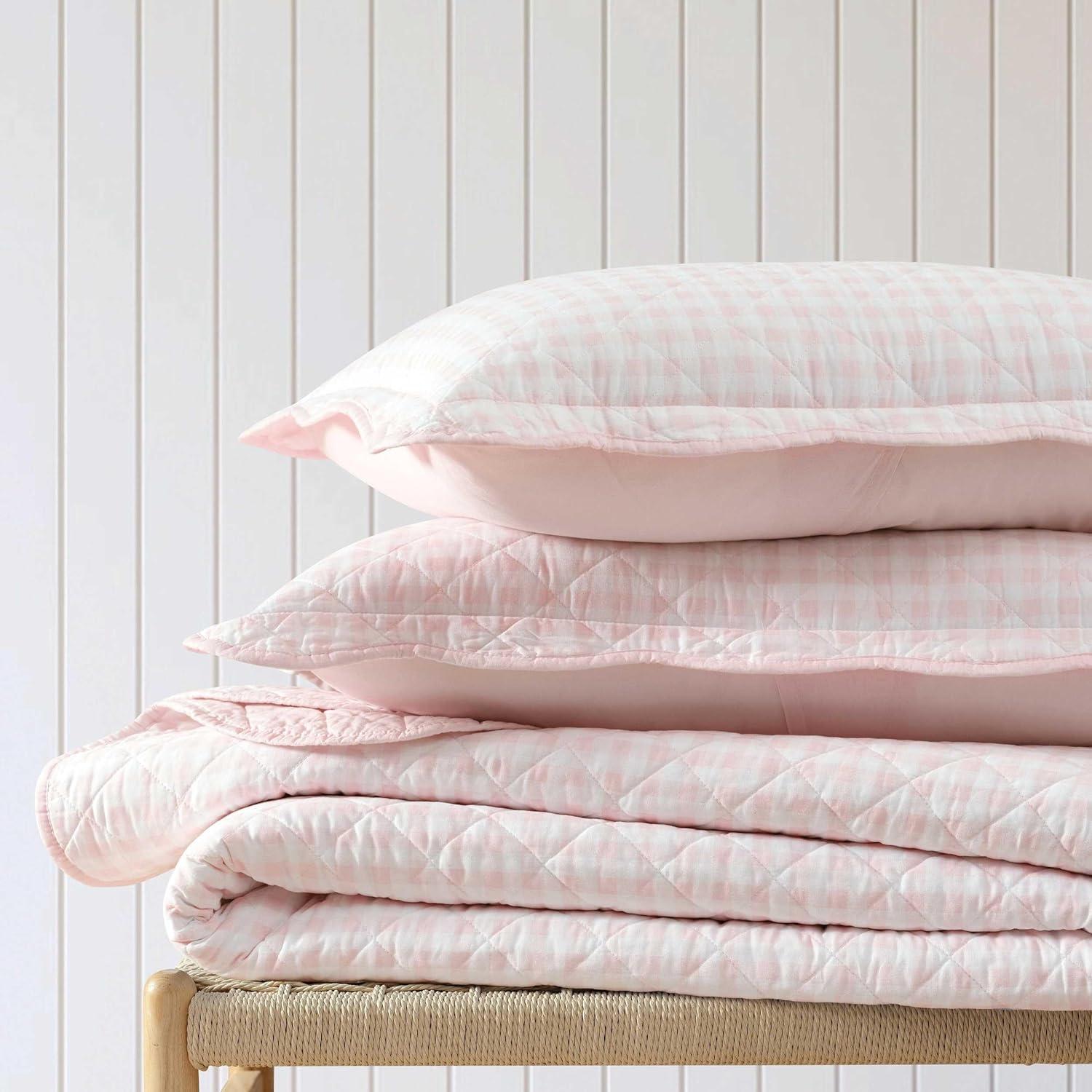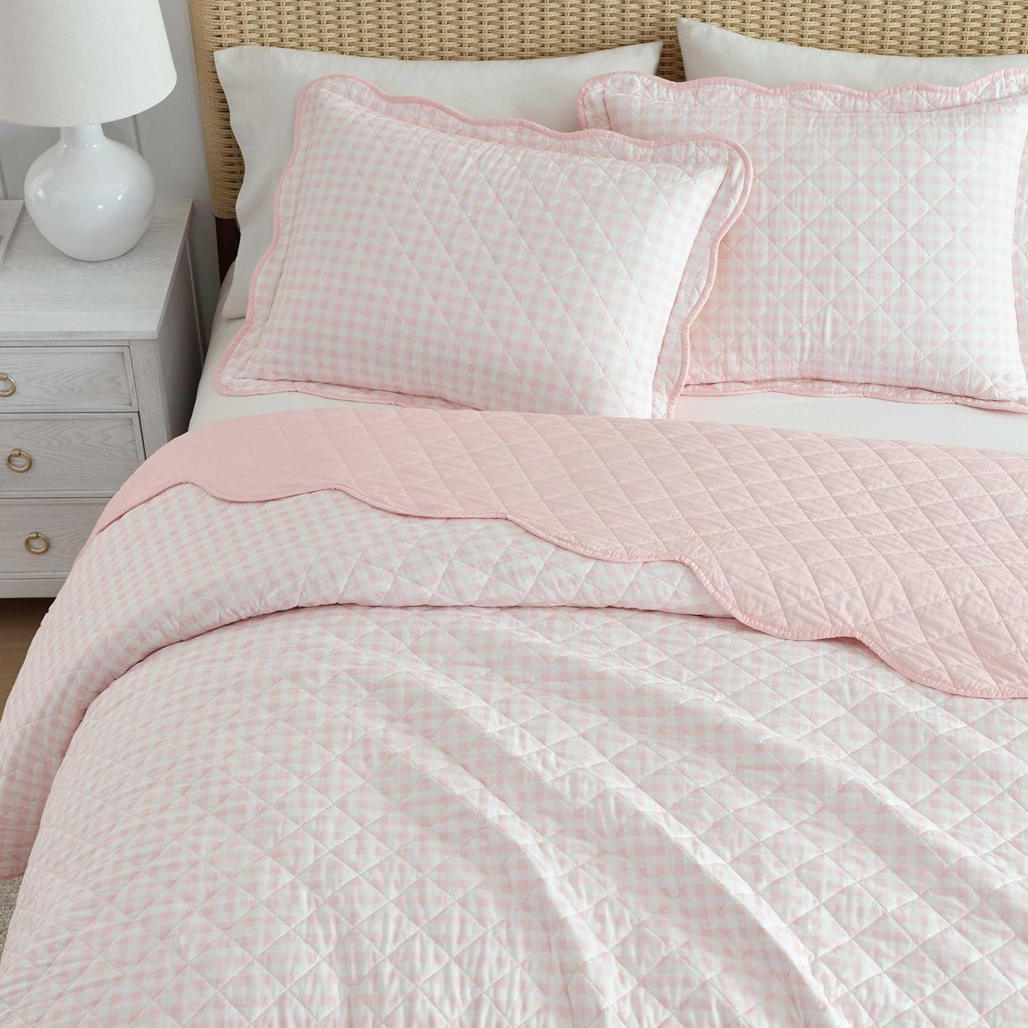 Martha Stewart - Queen Quilt Set, 100% Soft & Breathable Bedding with a Lightweight Feel for Year Round Comfort, 3 Piece Bed Set with Matching Pillowcases (Olivia Gingham Blue)(Olivia Gingham Pink)