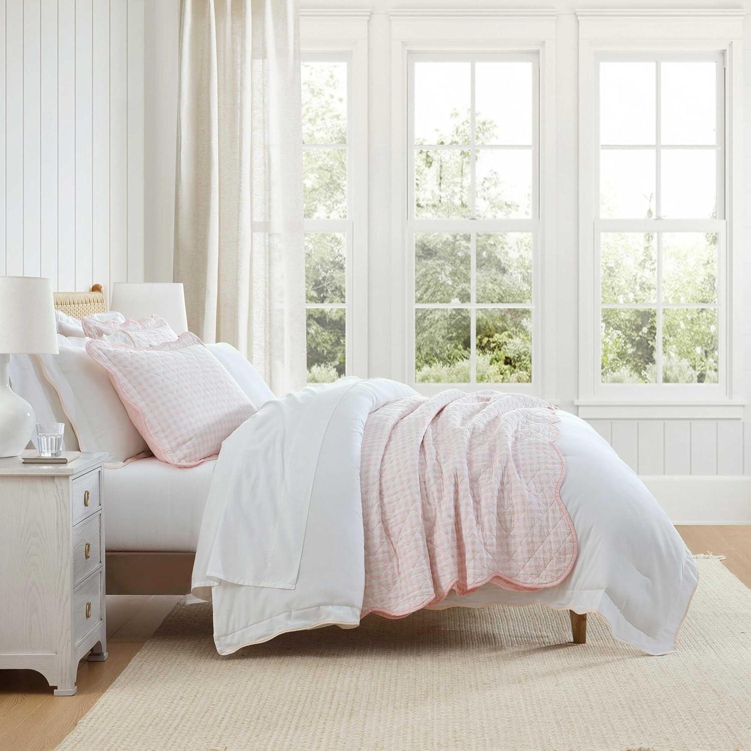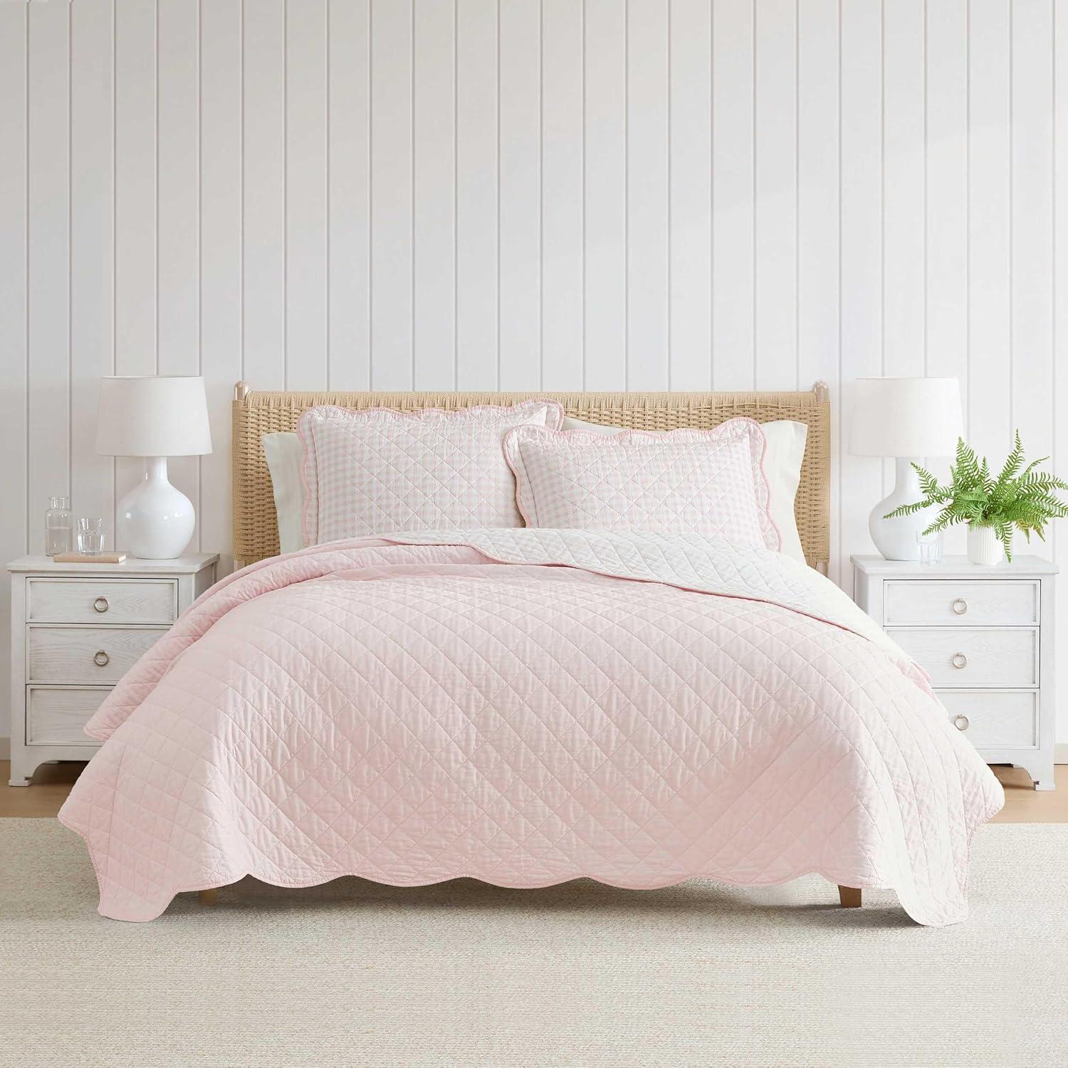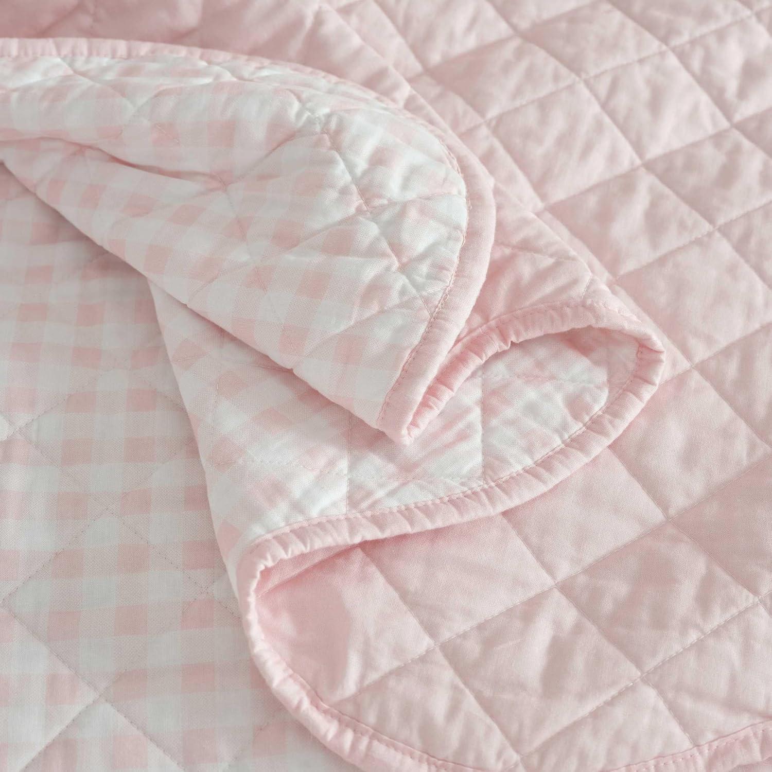 Martha Stewart - Queen Quilt Set, 100% Soft & Breathable Bedding with a Lightweight Feel for Year Round Comfort, 3 Piece Bed Set with Matching Pillowcases (Olivia Gingham Blue)(Olivia Gingham Pink)