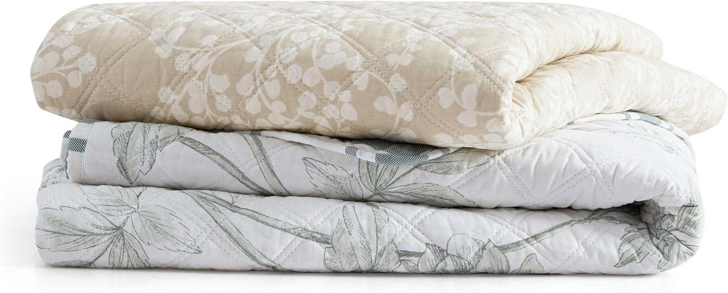 Martha Stewart - Queen Size Blanket, Ultra-Soft Plush Fleece Throw Blanket with Double-Needle Stitching, 350 GSM, Medium Weight Bedding for Bed or Couch (Bedford Solid Yellow)(Vine Flora Green)