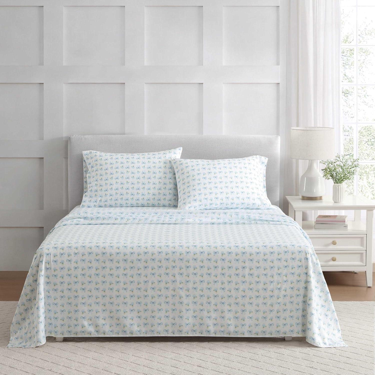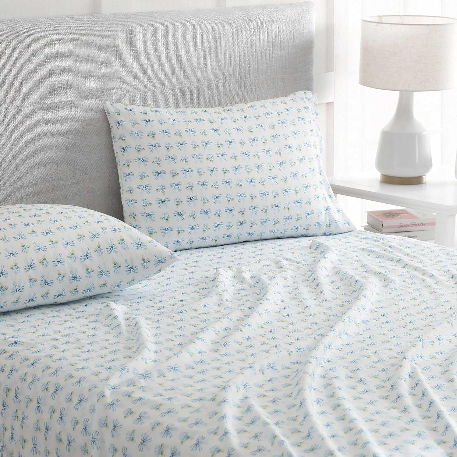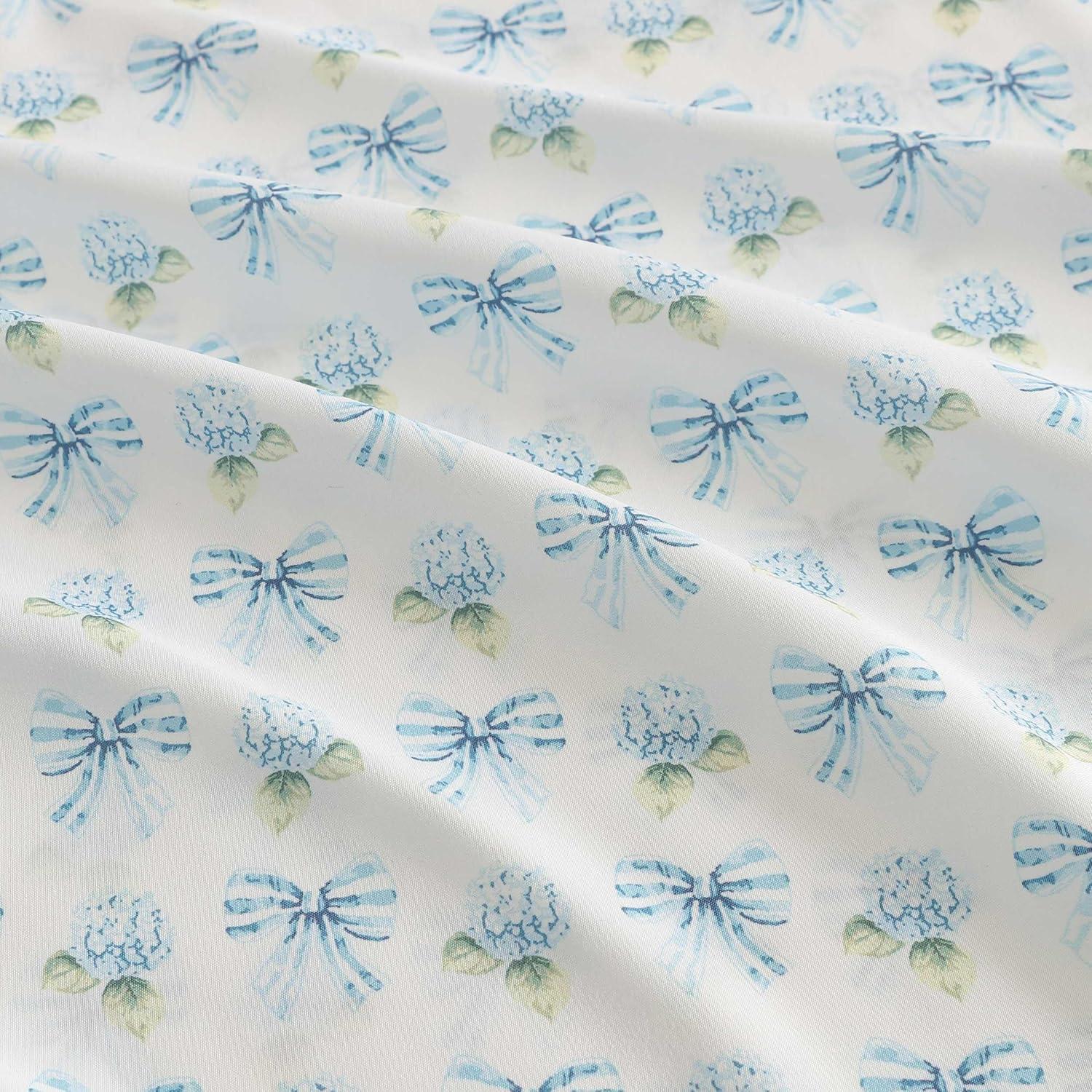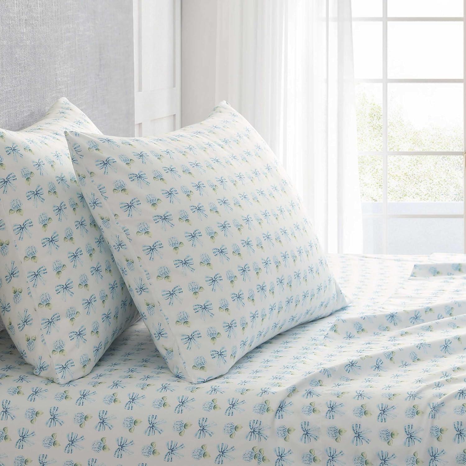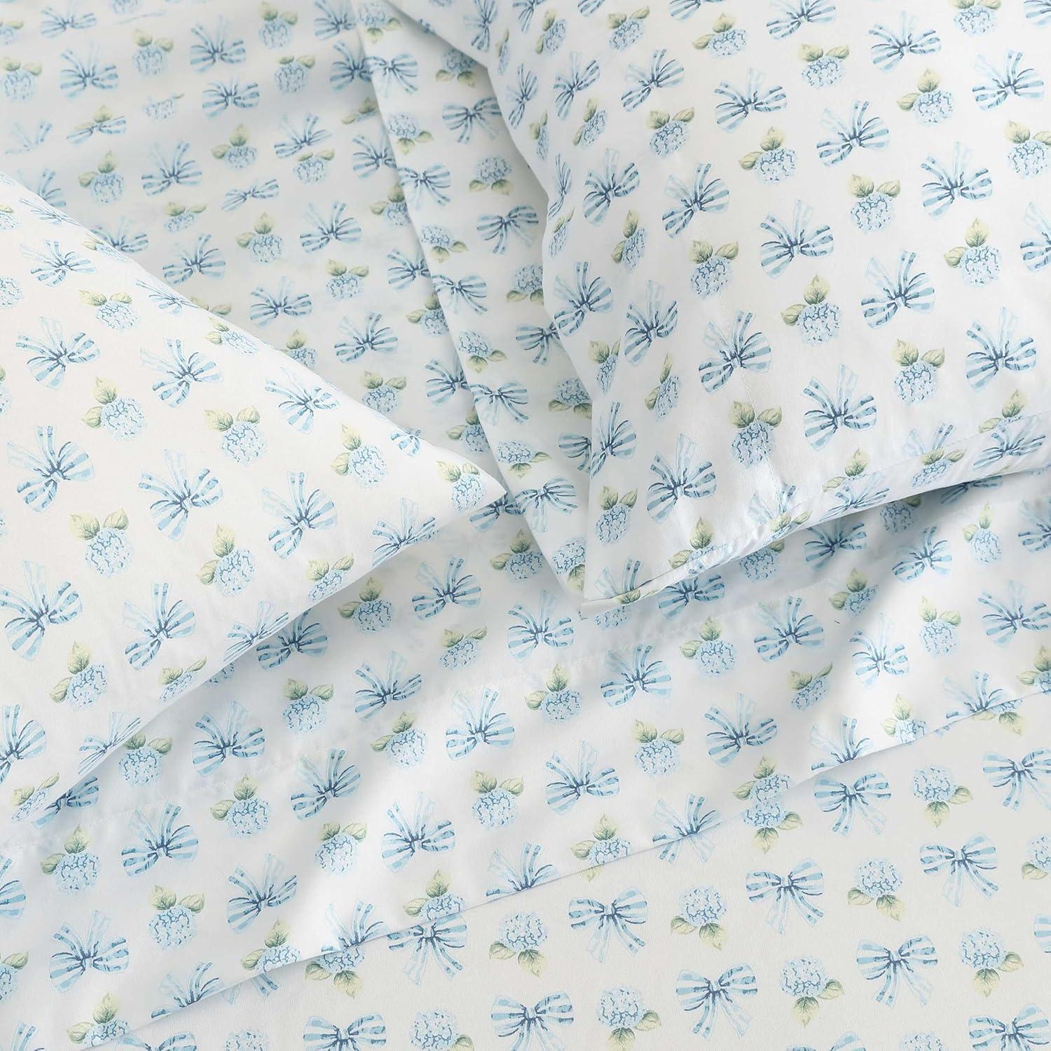 Martha Stewart - Queen Size Sheet Set, Smooth & Lightweight Bedding with Deep Pockets, Fade & Wrinkle Resistant, Bed Sheets with Matching Pillowcases (Ditsy Floral Pink)(Donna Bow Blue)