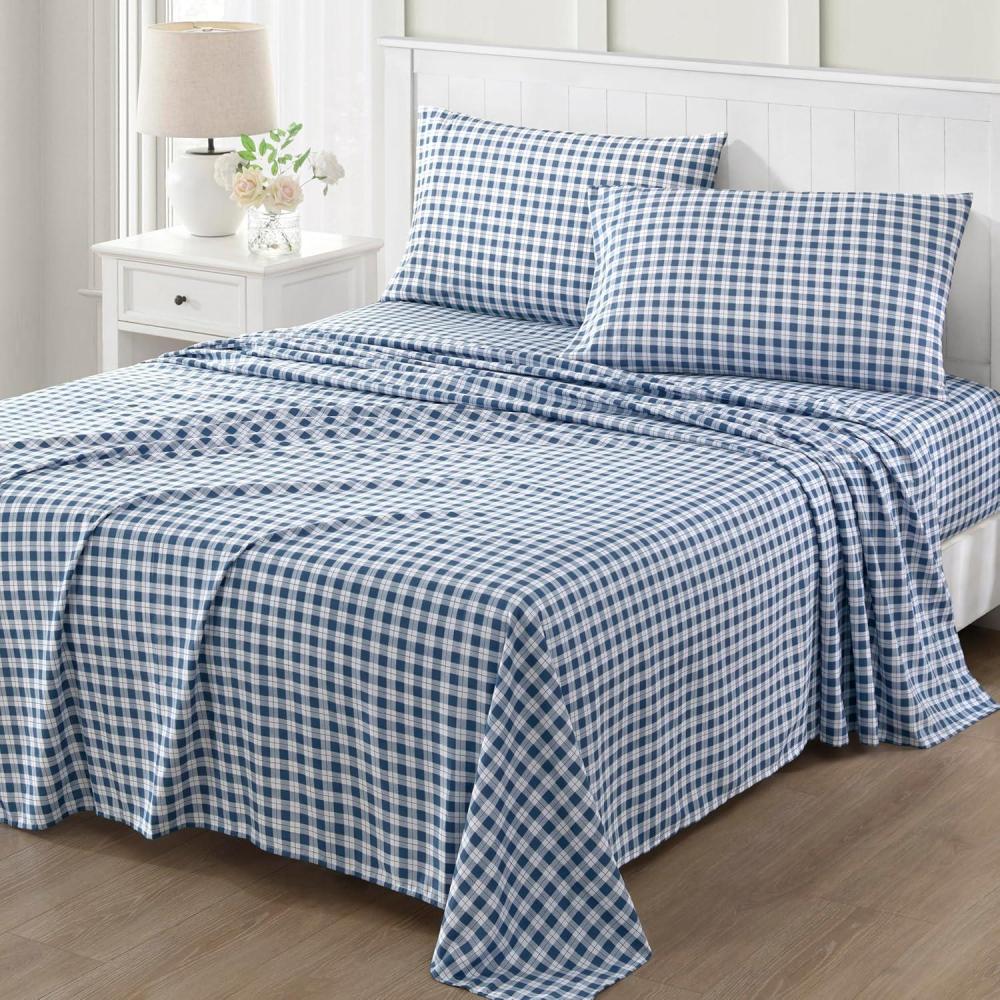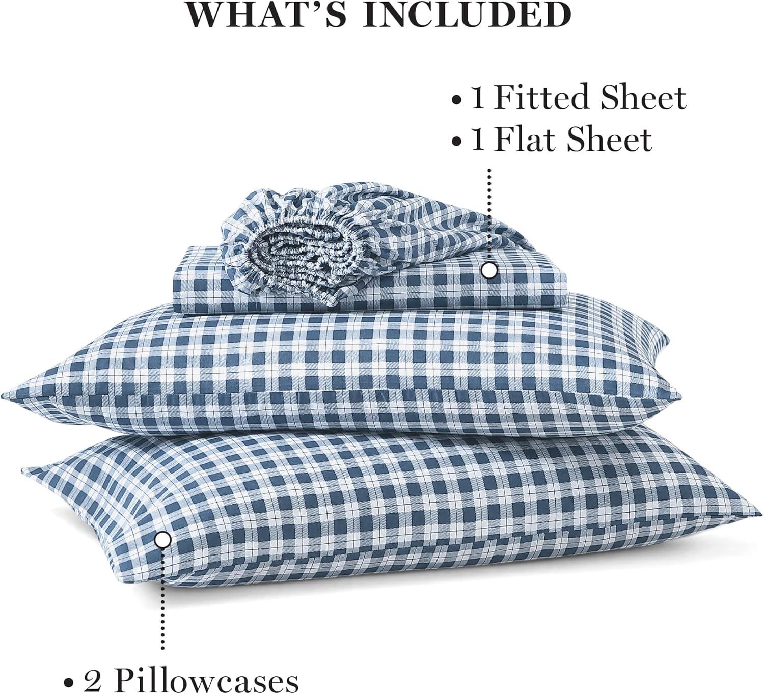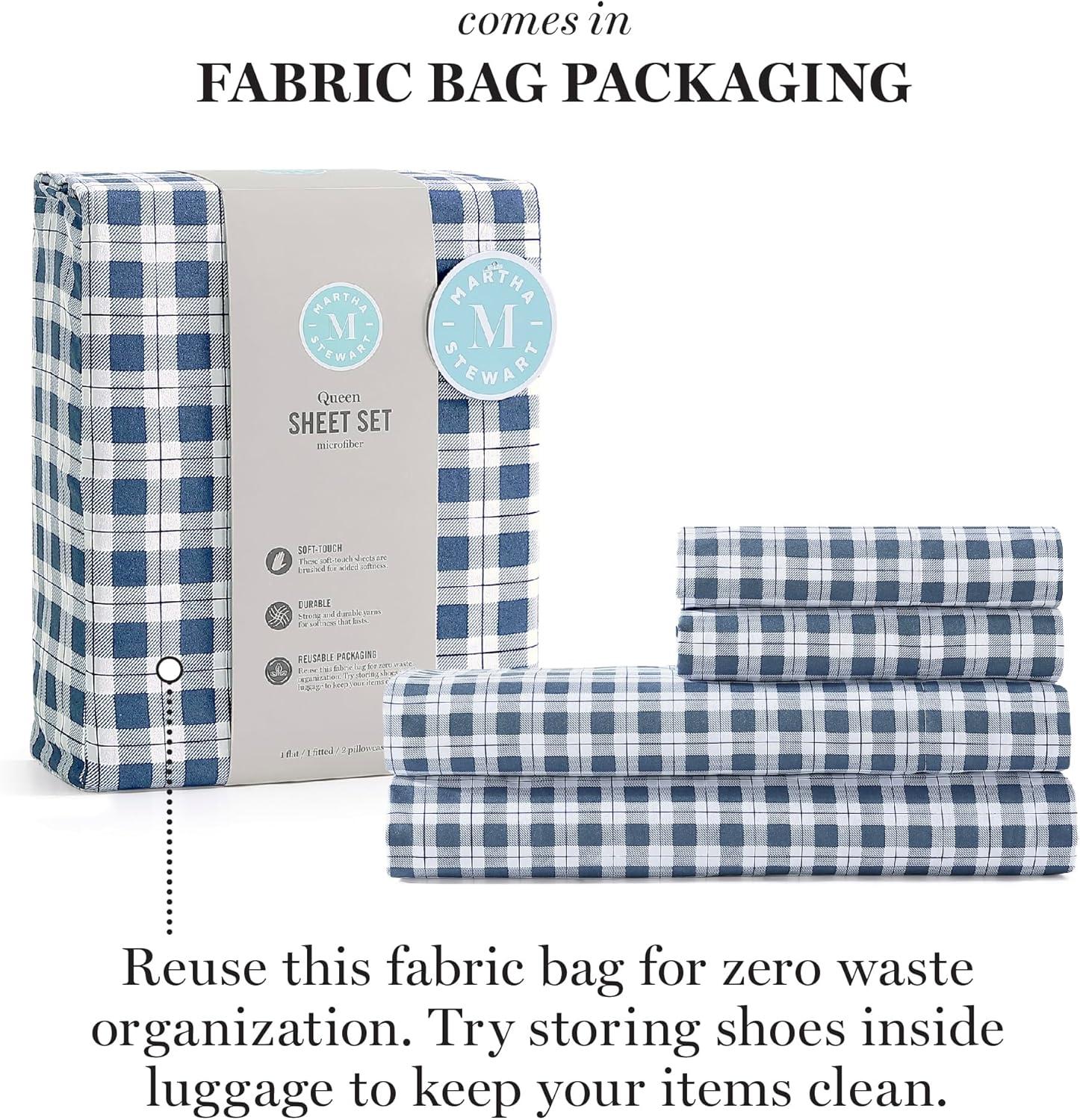 Martha Stewart – Queen Size Sheet Set, Smooth & Lightweight Bedding with Deep Pockets, Fade & Wrinkle Resistant, Bed Sheets with Matching Pillowcases (Ditsy Floral Pink)(Todd Checks Blue)