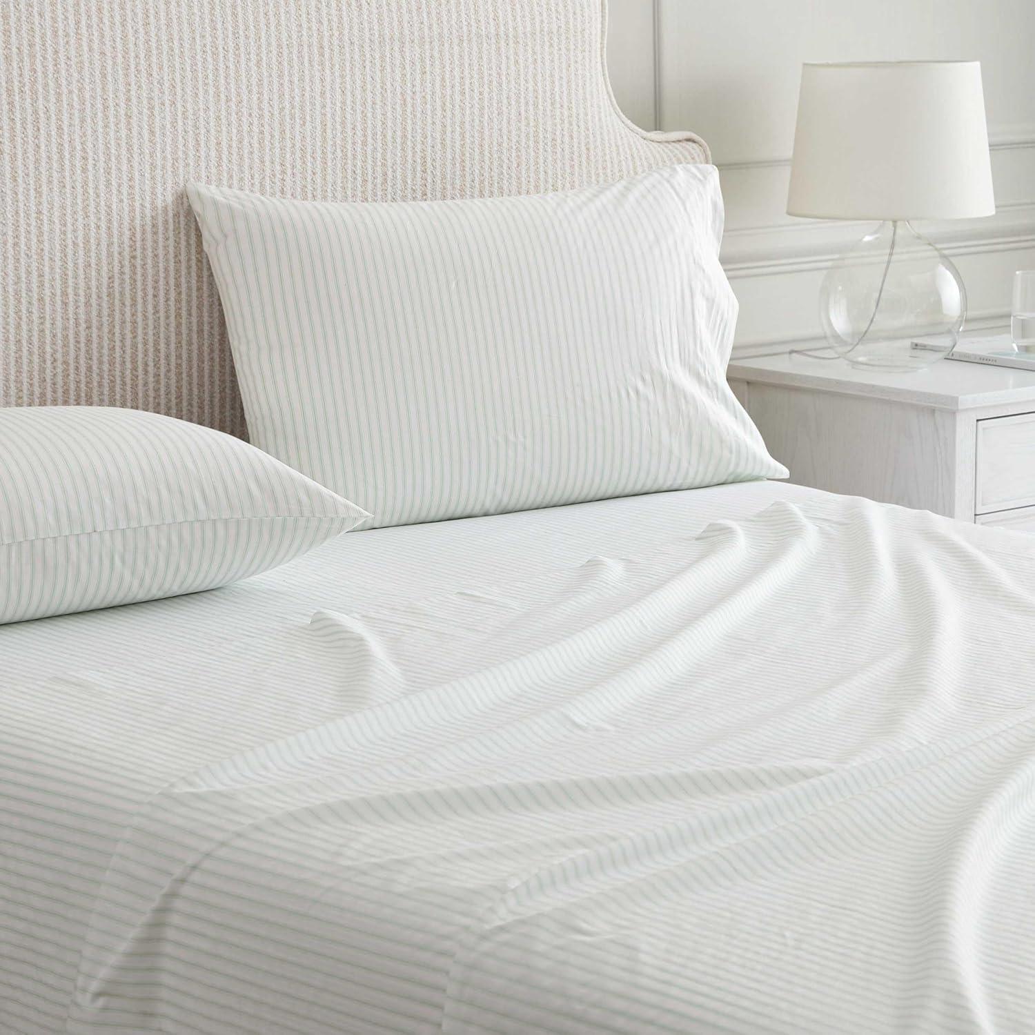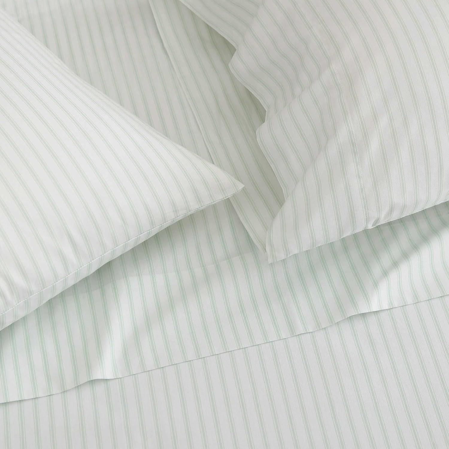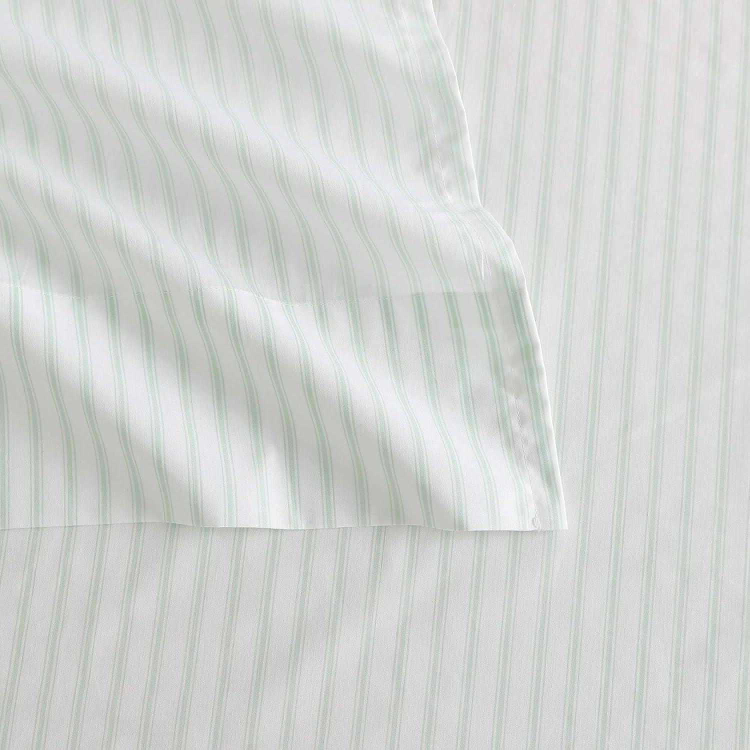 Martha Stewart - Queen Size Sheets Set, Crisp & Tailored Cooling Sheets with a Smooth Cotton Percale Lightweight Feel - Bed Sheets with Matching Pillowcases & Fitted Sheet (Francesca Stripe Beige)(Ticking Stripe Green)