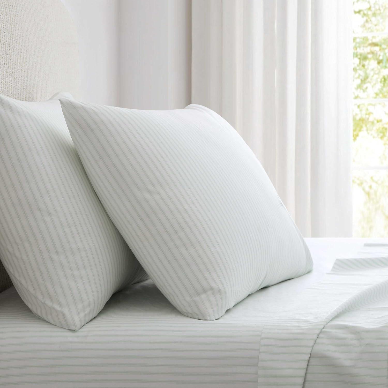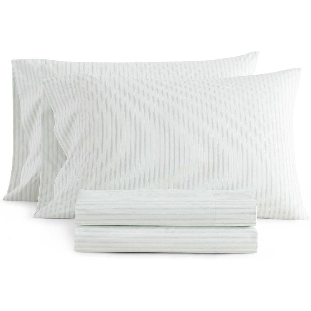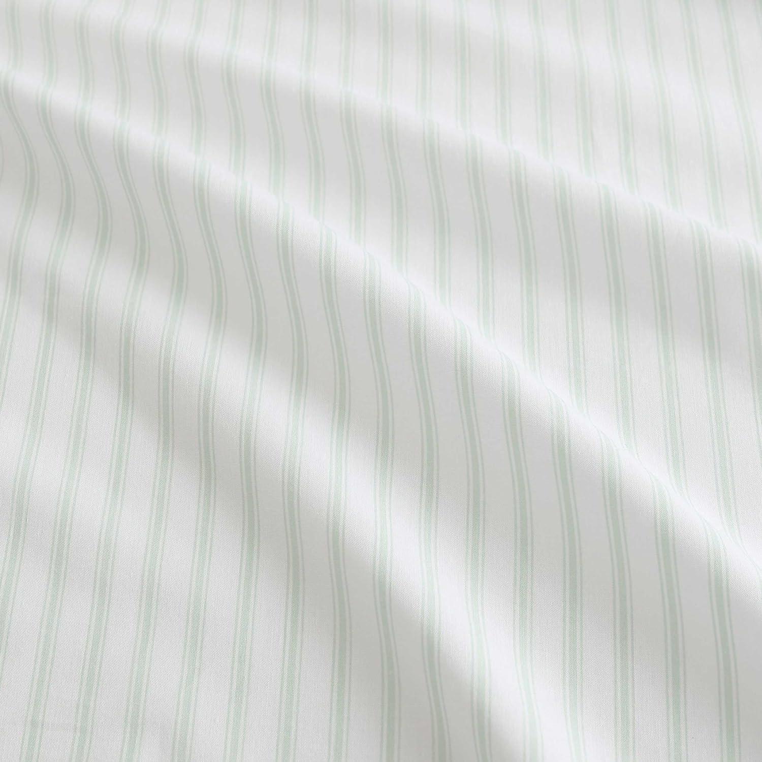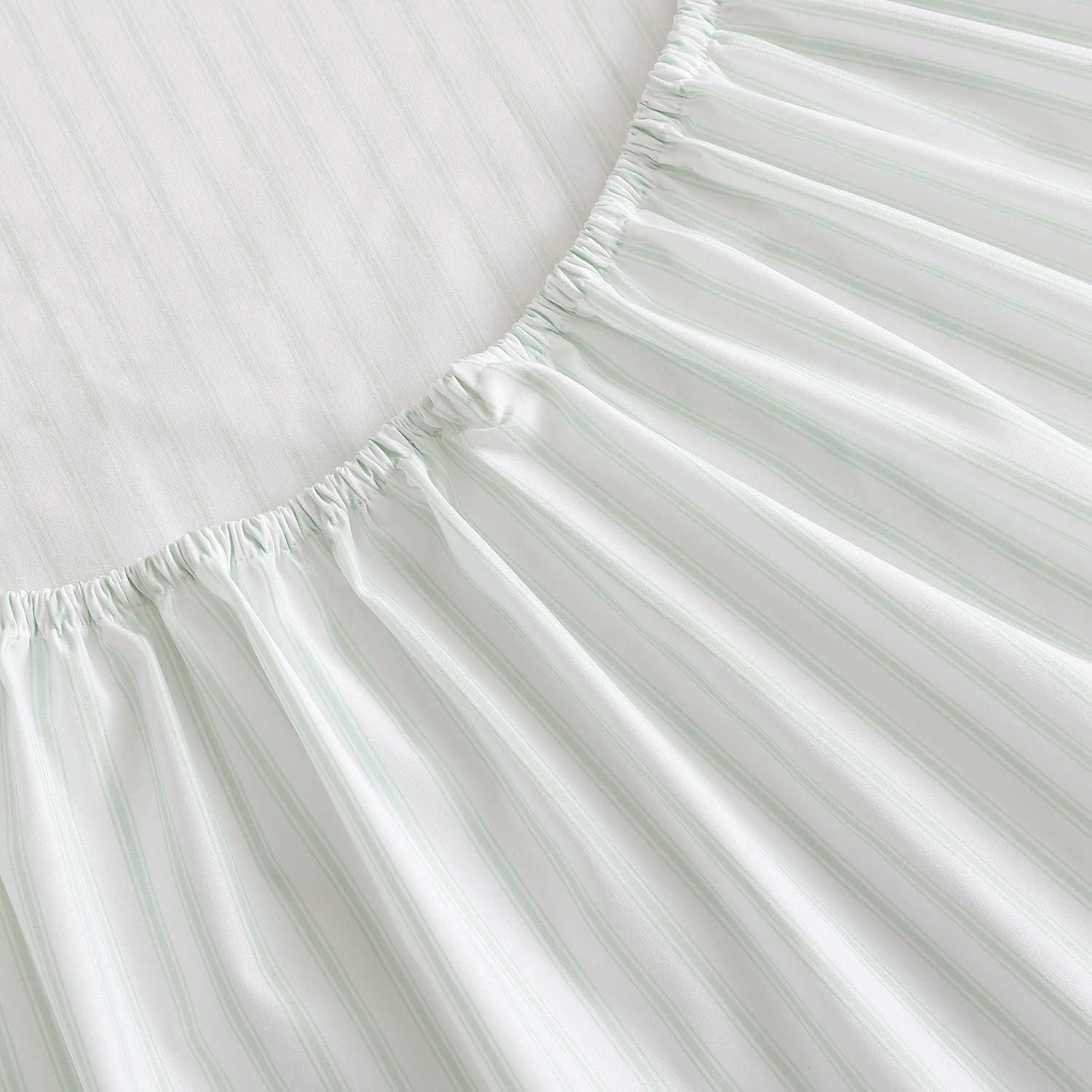 Martha Stewart - Queen Size Sheets Set, Crisp & Tailored Cooling Sheets with a Smooth Cotton Percale Lightweight Feel - Bed Sheets with Matching Pillowcases & Fitted Sheet (Francesca Stripe Beige)(Ticking Stripe Green)