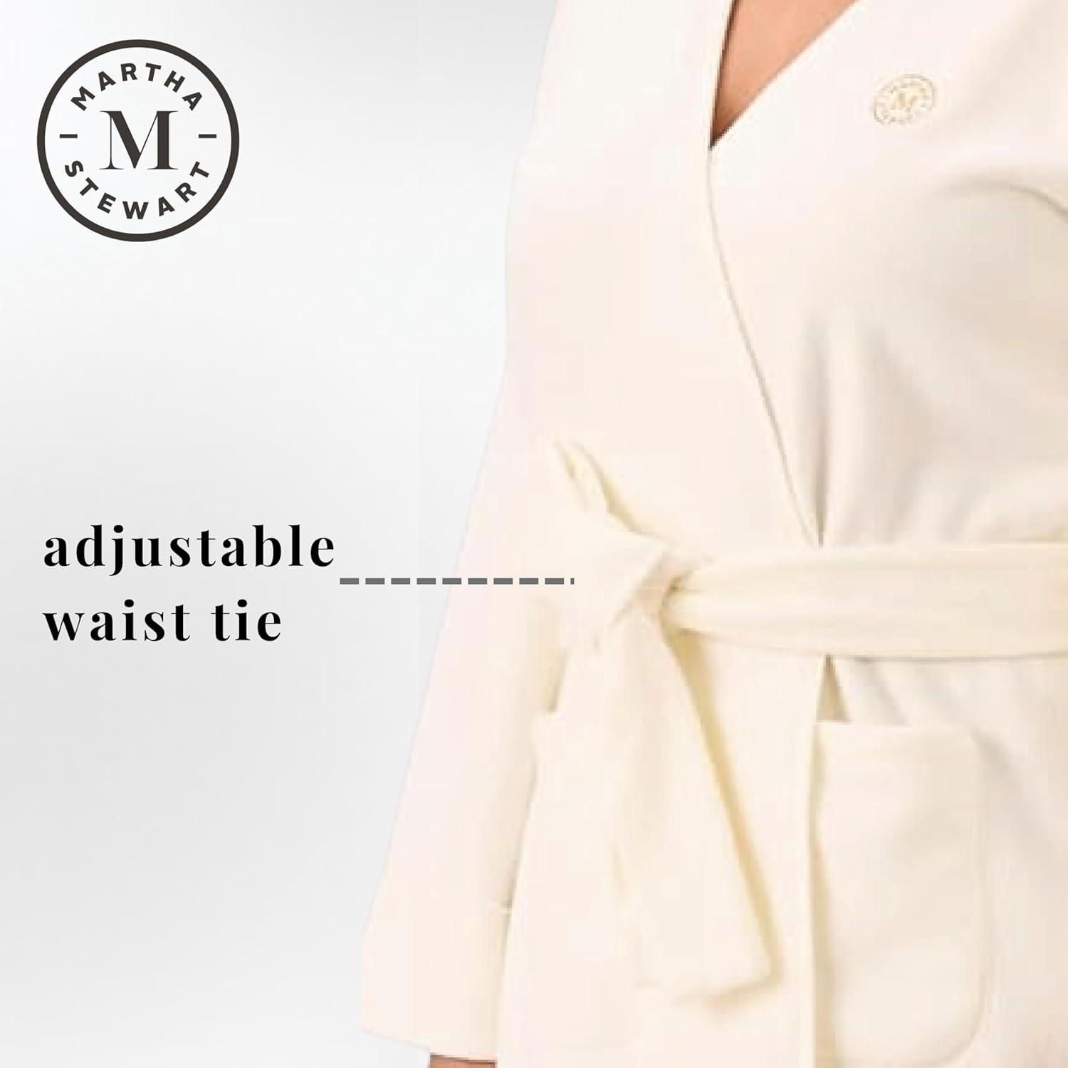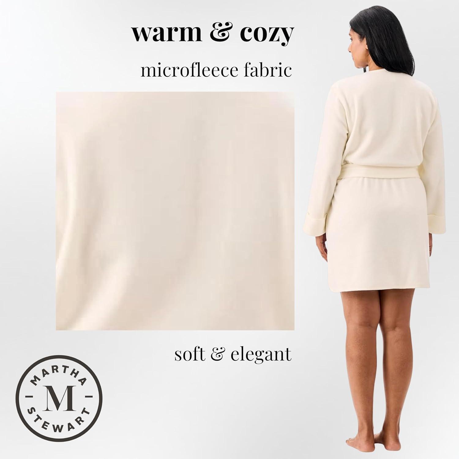 Martha Stewart Robe | Sleepwear for Women | Shorter-Length Microfleece | Cozy, Warm, Relaxing Loungewear(Egret)
