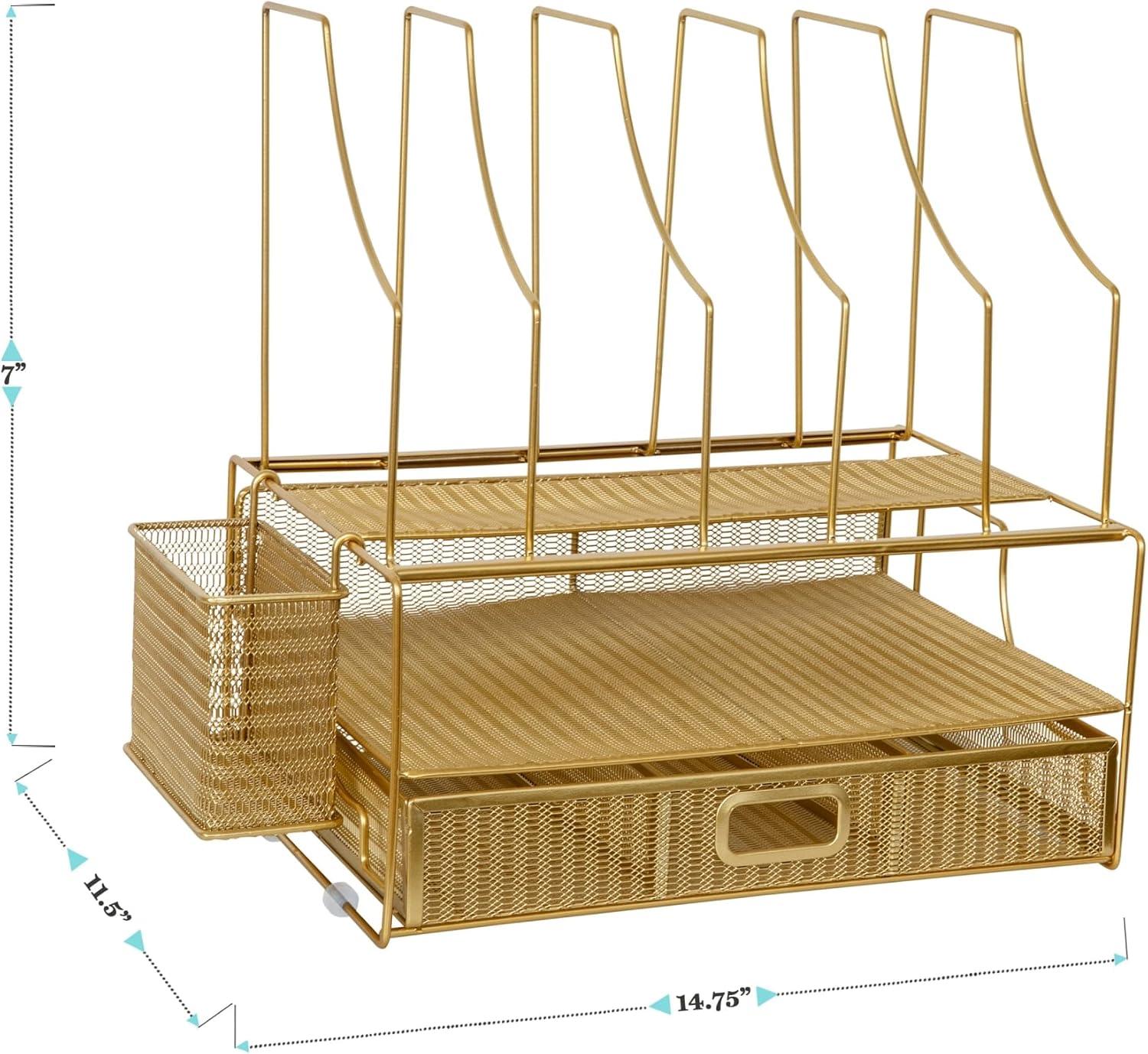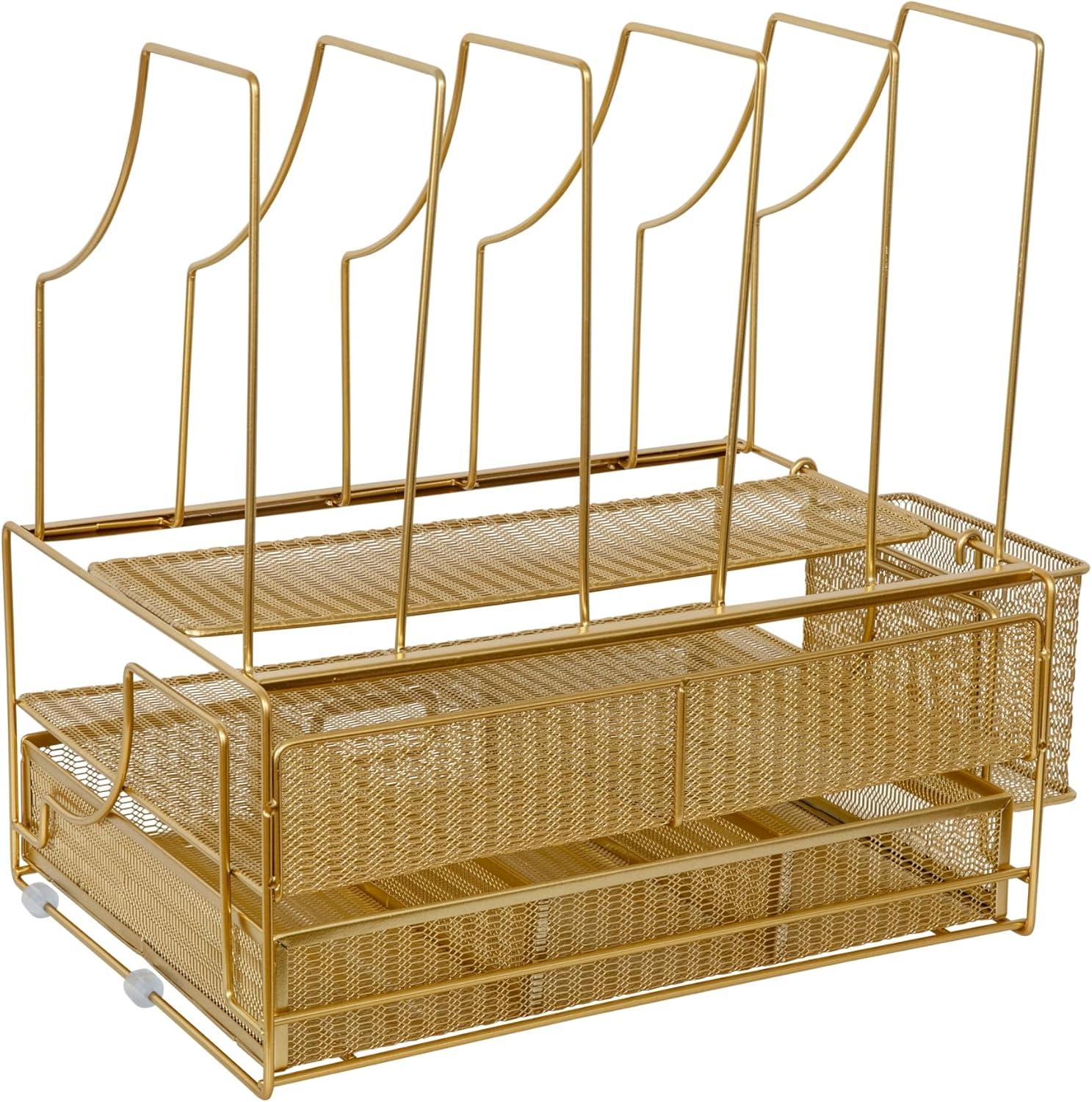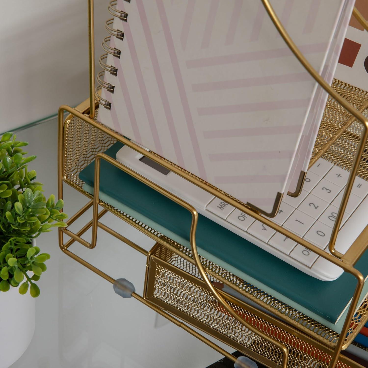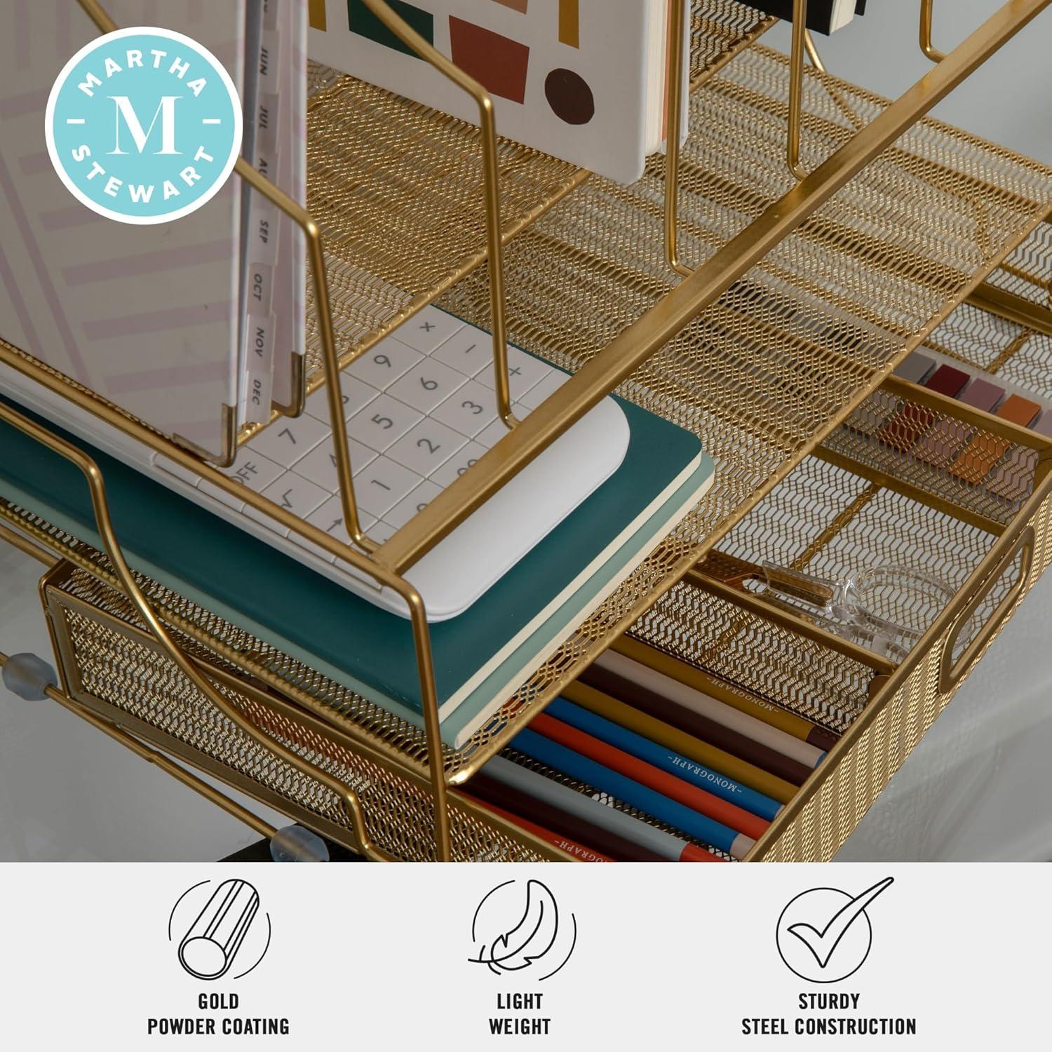 When your work at home tasks demand a great deal of your time, the Martha Stewart Desktop Organizer with Storage Drawer will ensure your work space is organized and inspiring. Satisfying environmental cues can direct your energy toward productivity, creativity, and staying on task by keeping essential items organized, tidy, and within reach. This metal mesh organizer serves multipurposes by providing you with an attractive and efficient workspace that keeps your important files and office supplies sorted and organized in one place.