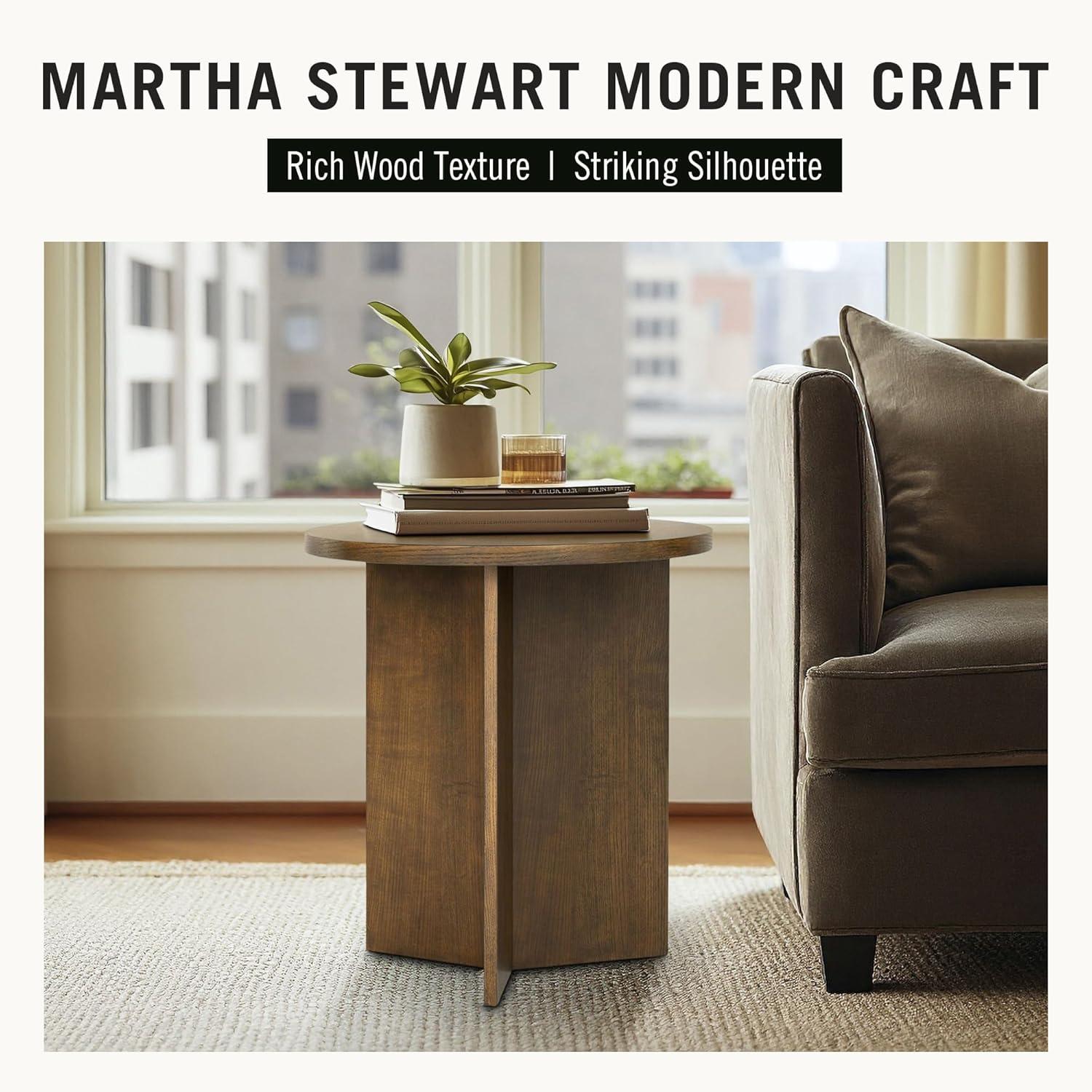 Part of the Martha Stewart Perry Street Collection, the Sadie Side Table adds timeless charm with its round silhouette and sculptural lines. The starburst wood veneer top adds warmth and texture, complementing a range of interiors. Compact and versatile, it functions beautifully as a side table, nightstand, or accent piece—perfect for small spaces. Floor-protecting glides and easy assembly make it a practical choice. Elevate your space with this stylish and functional piece—shop now!