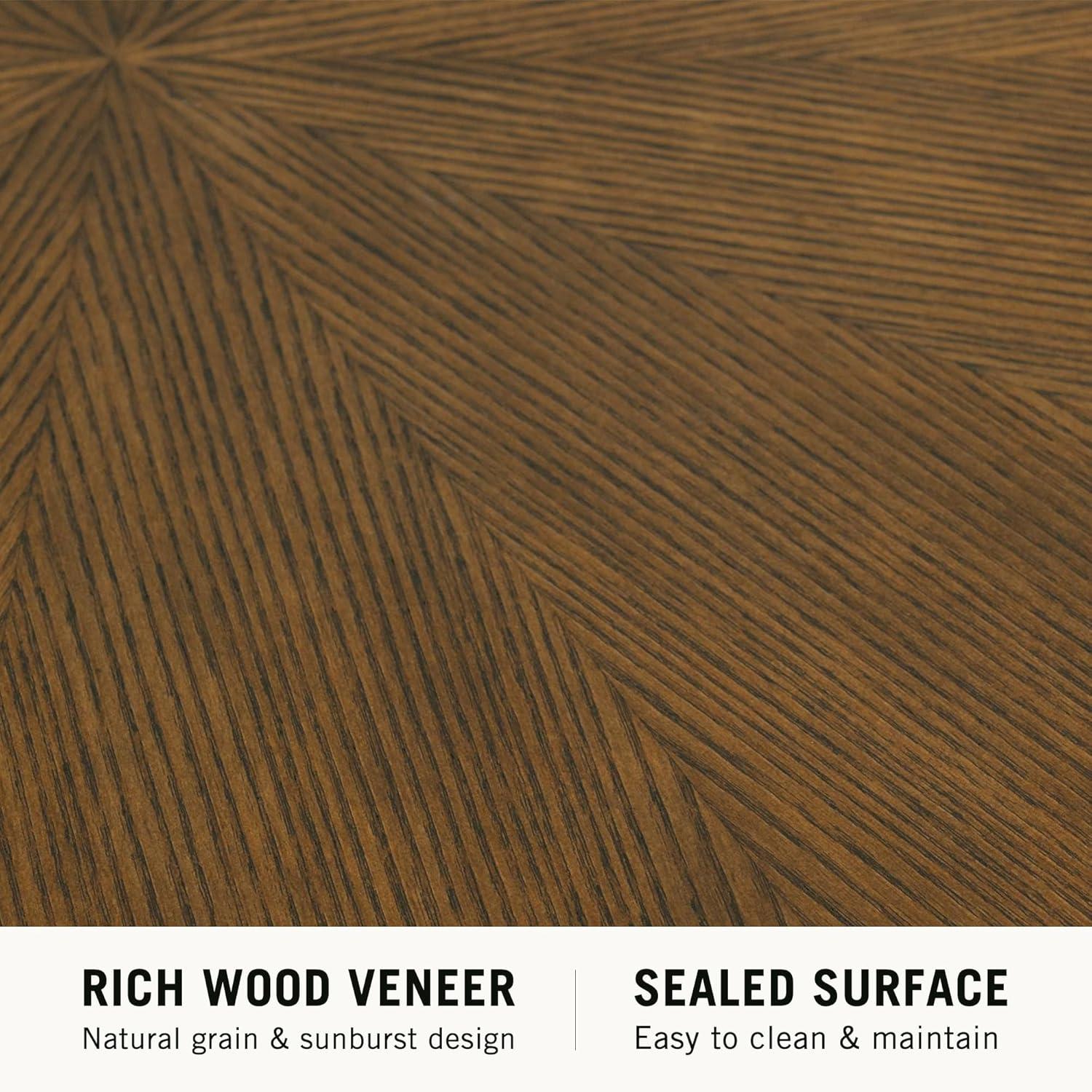 Martha Stewart Sadie Round Coffee Table – Starburst Veneer Top, Walnut Brown Wood Finish, Modern Accent for Living Room, Lounge, or Sitting Area, 22″ x Dia 24″ H