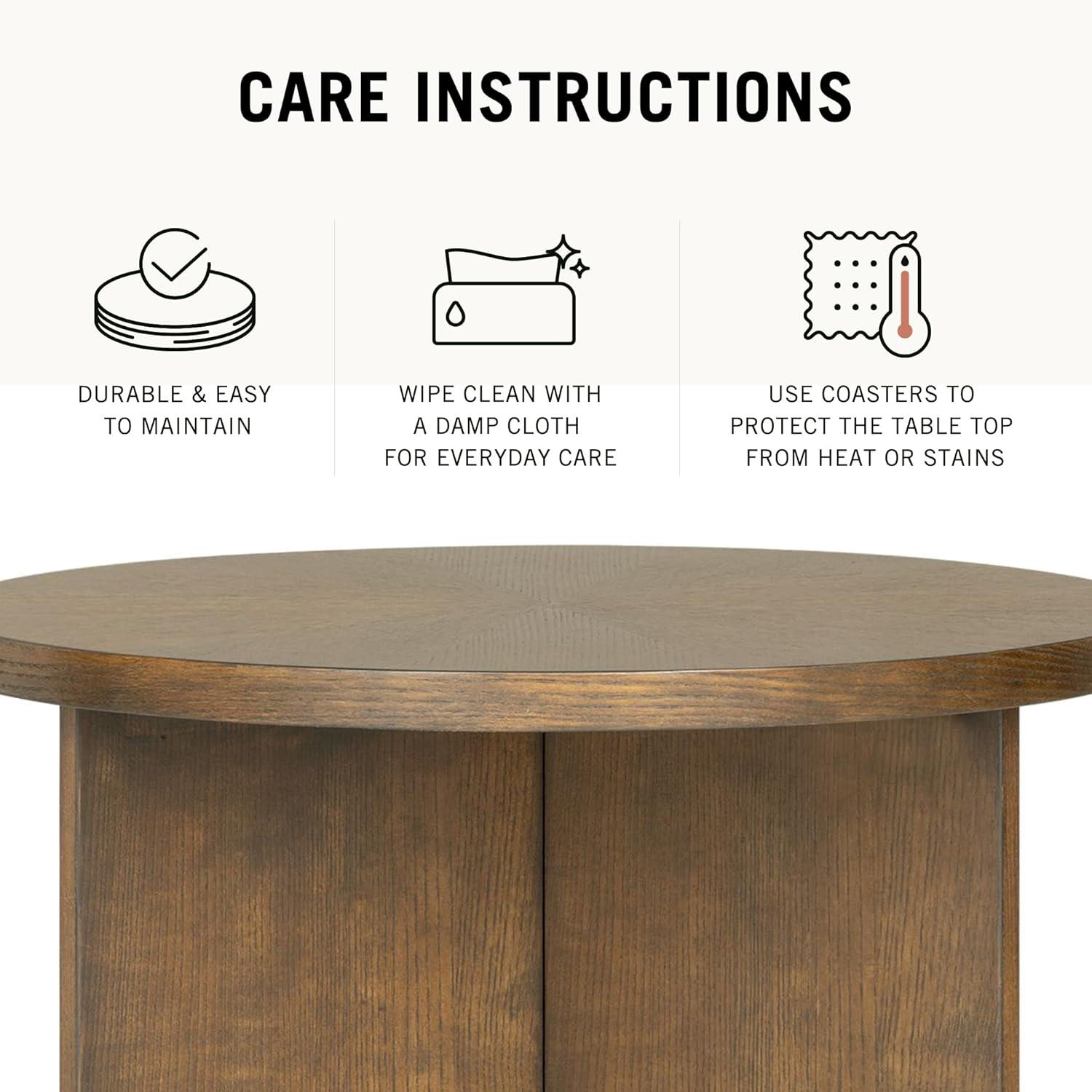 Martha Stewart Sadie Round Coffee Table – Starburst Veneer Top, Walnut Brown Wood Finish, Modern Accent for Living Room, Lounge, or Sitting Area, 22" x Dia 24" H