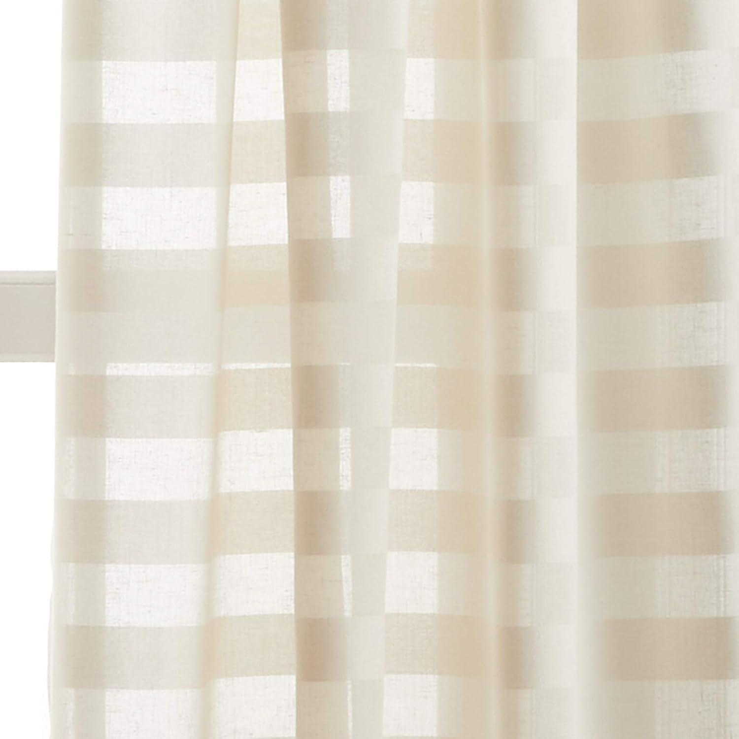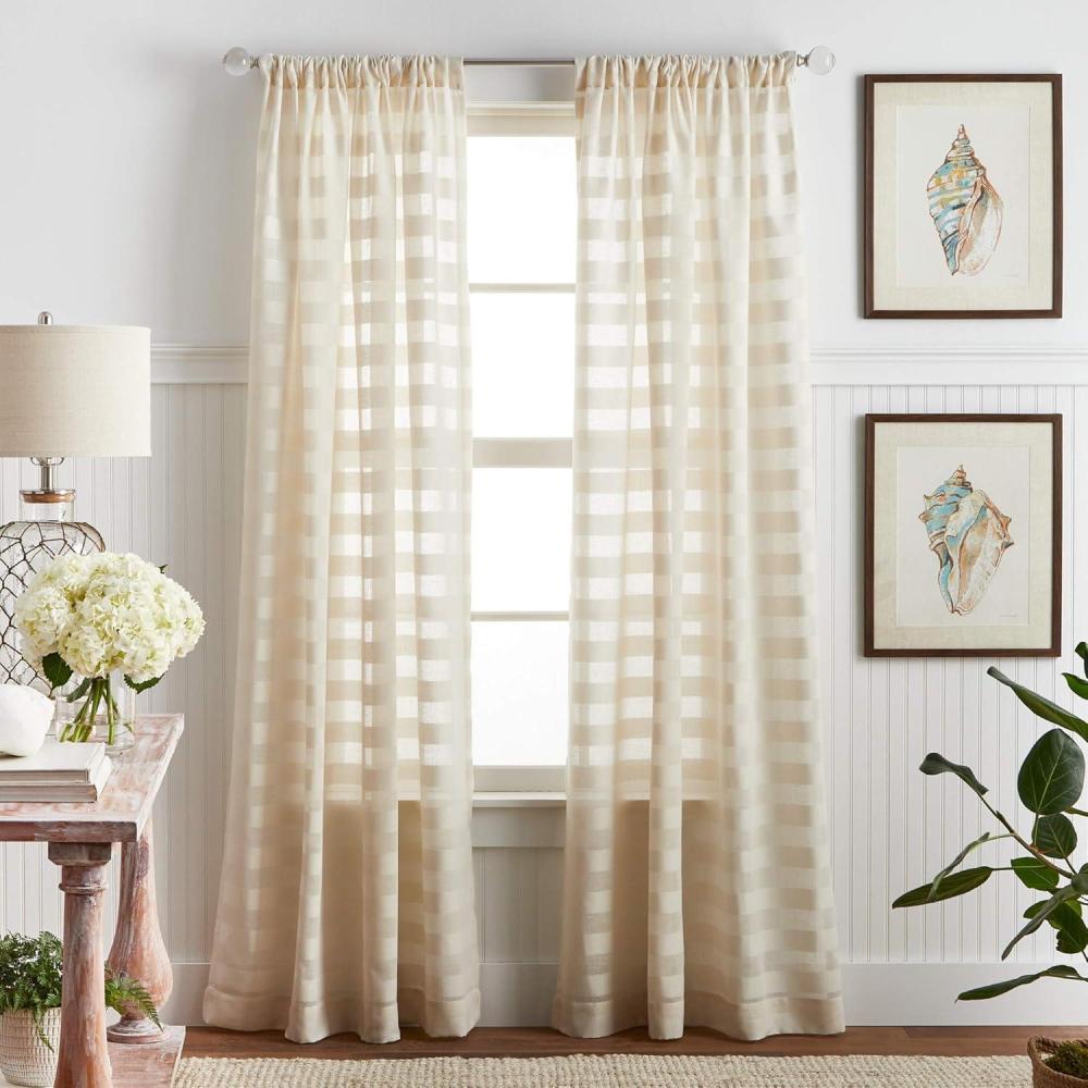 SHEER CURTAINS Woven stripe rod pocket window curtain panel pair from Martha Stewart's Lily Pond Coastal Window Collection; Unlined curtains softly filter sunlight; Creates a light and airy look