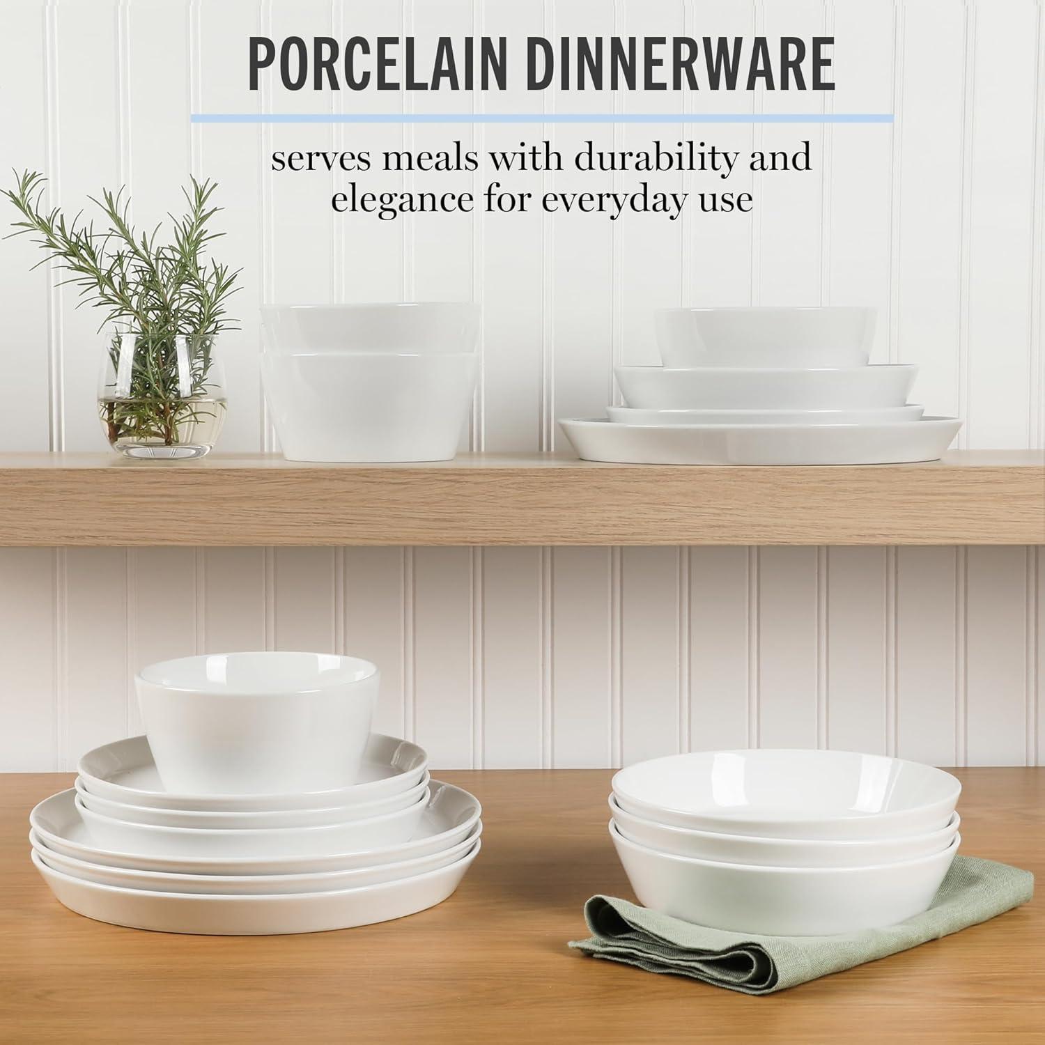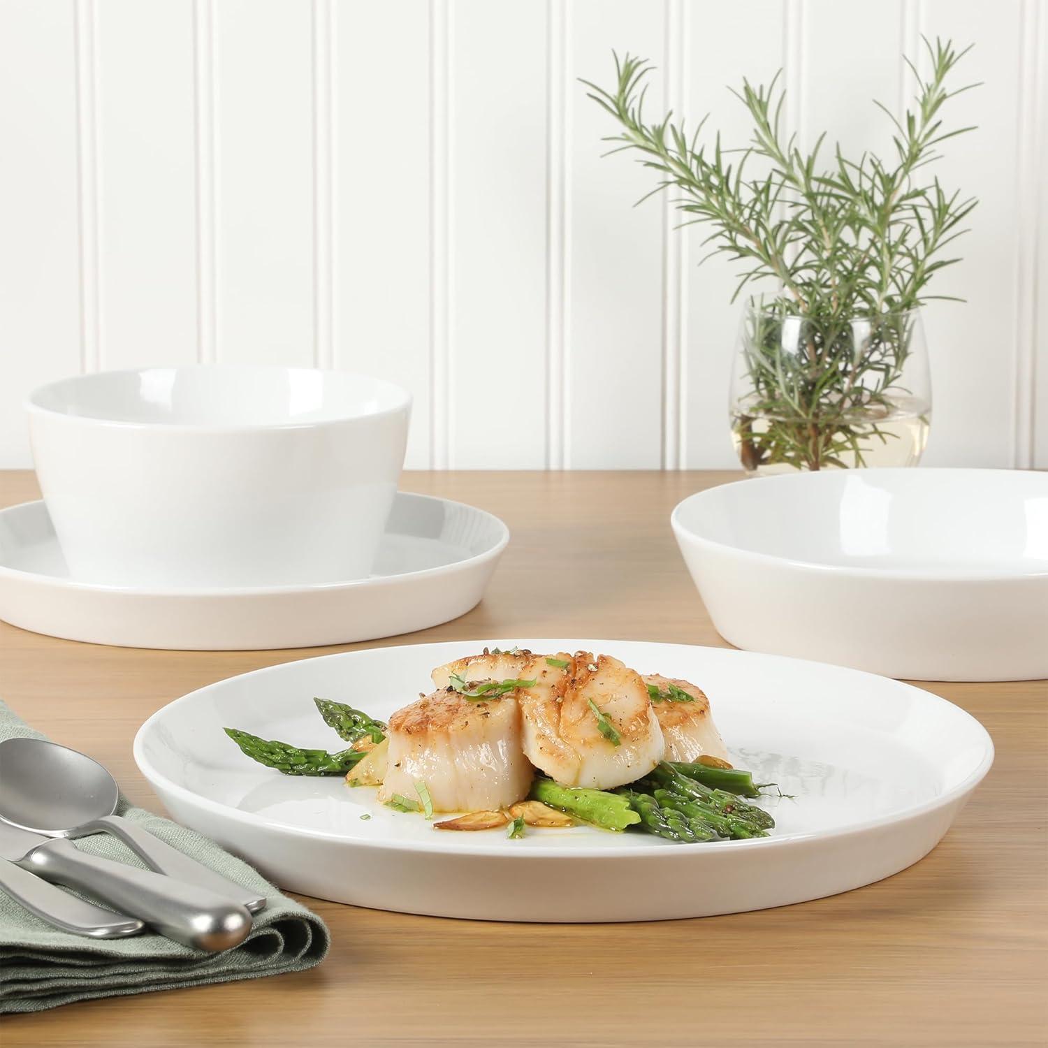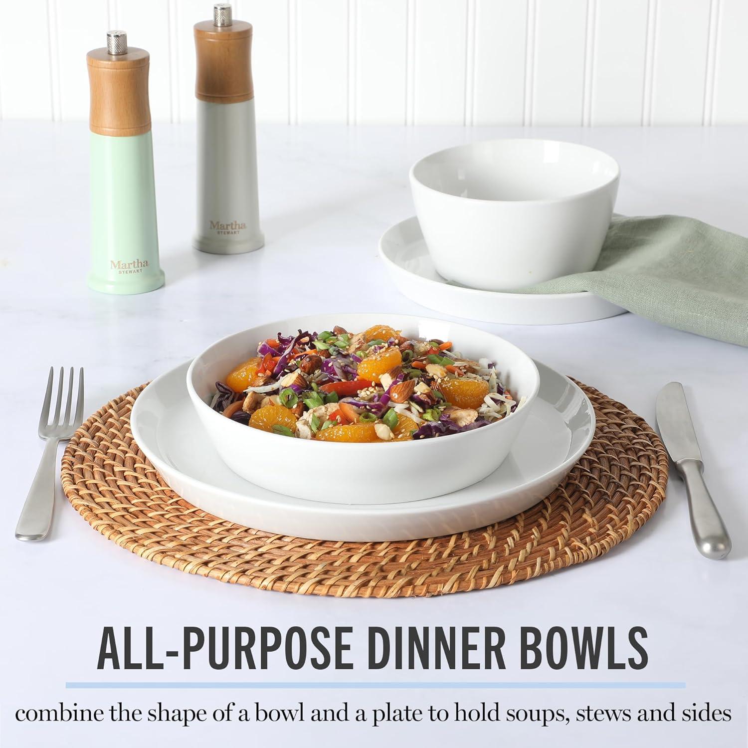 Martha Stewart Selma Chip & Scratch Resistant Dinnerware Set, Plates and Bowls Dishes Set, White