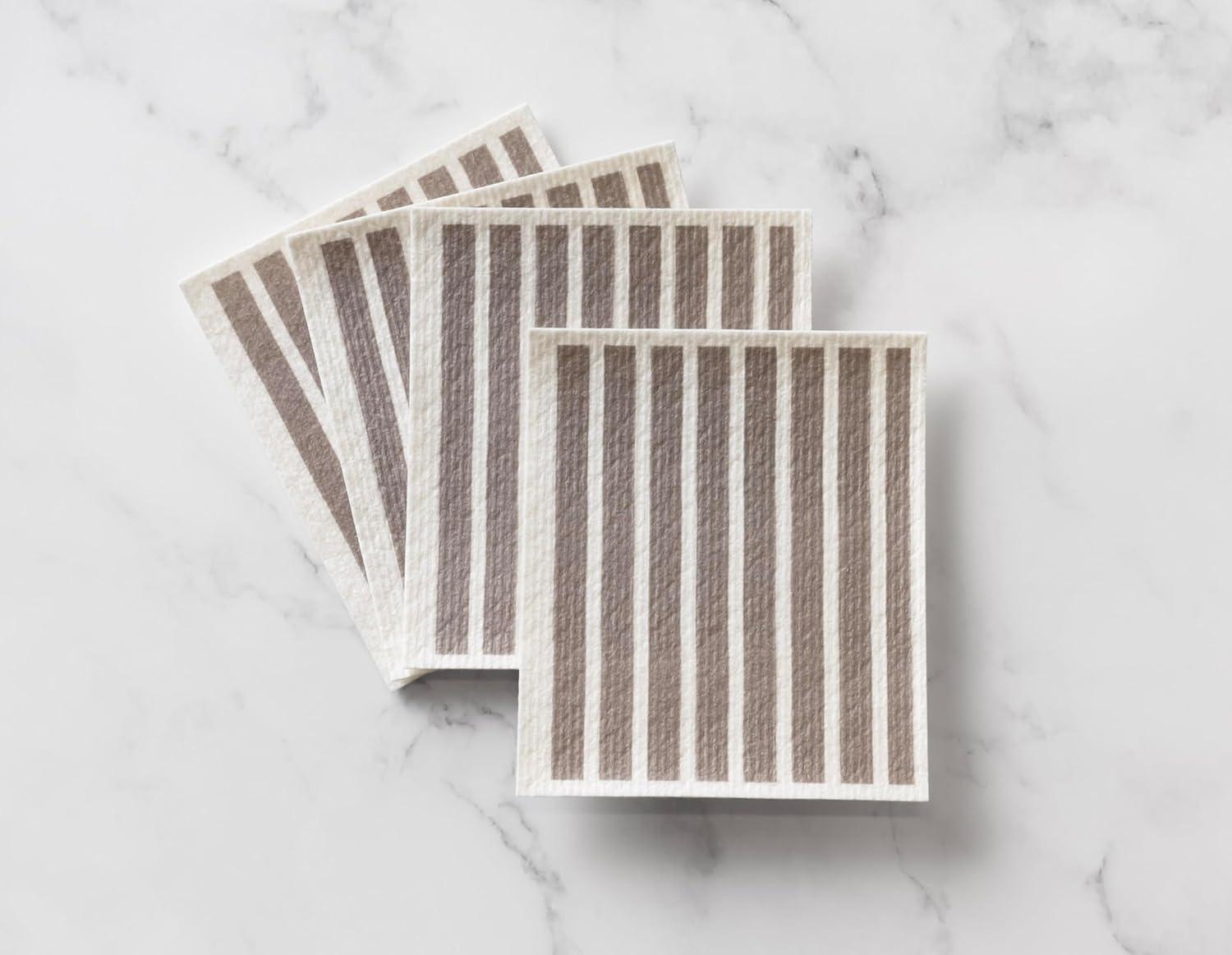 Martha Stewart Swedish Kitchen Absorbent Sponge Dish Cloths, Stripes, 8 Count(Grey Stripes)