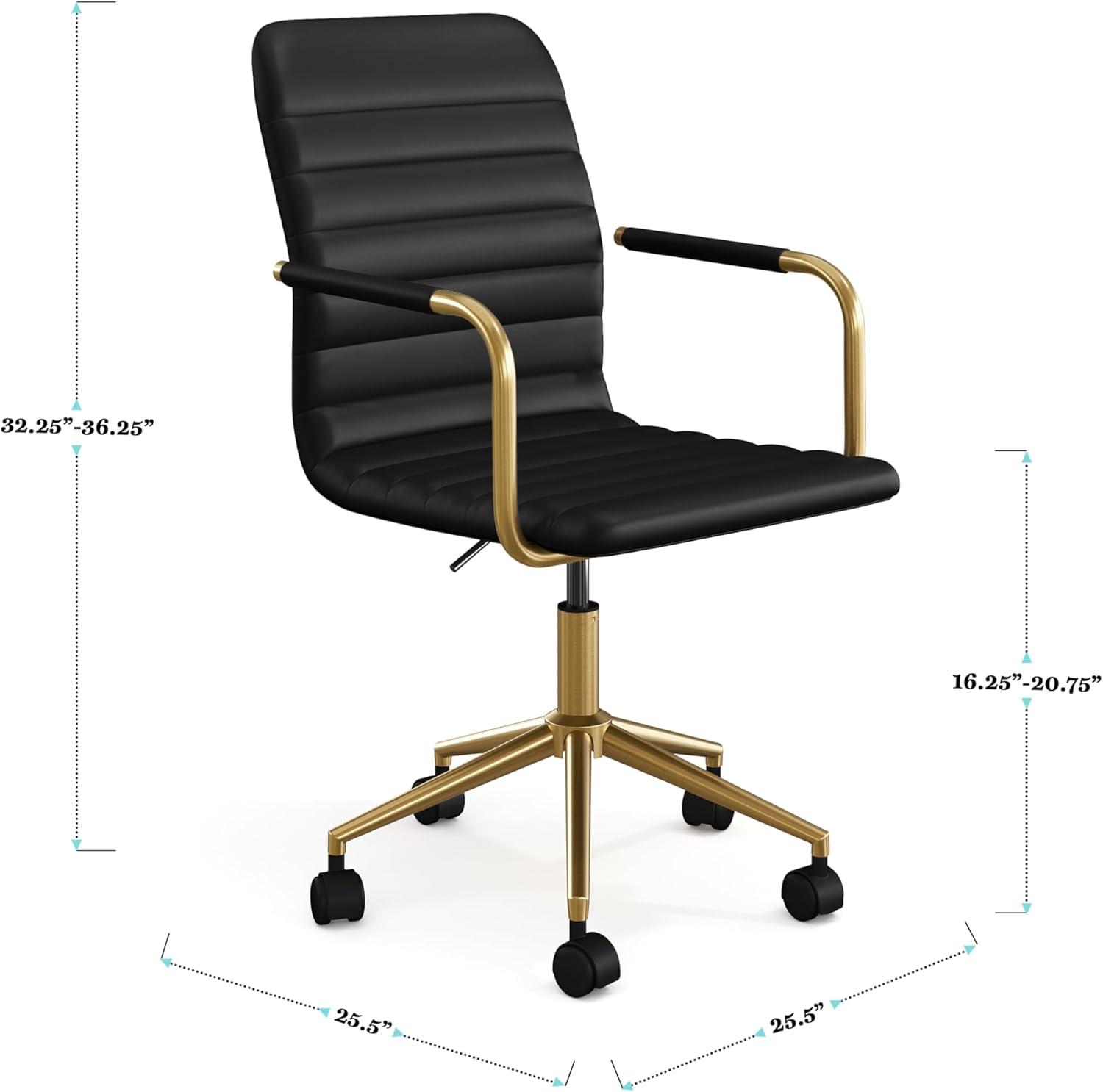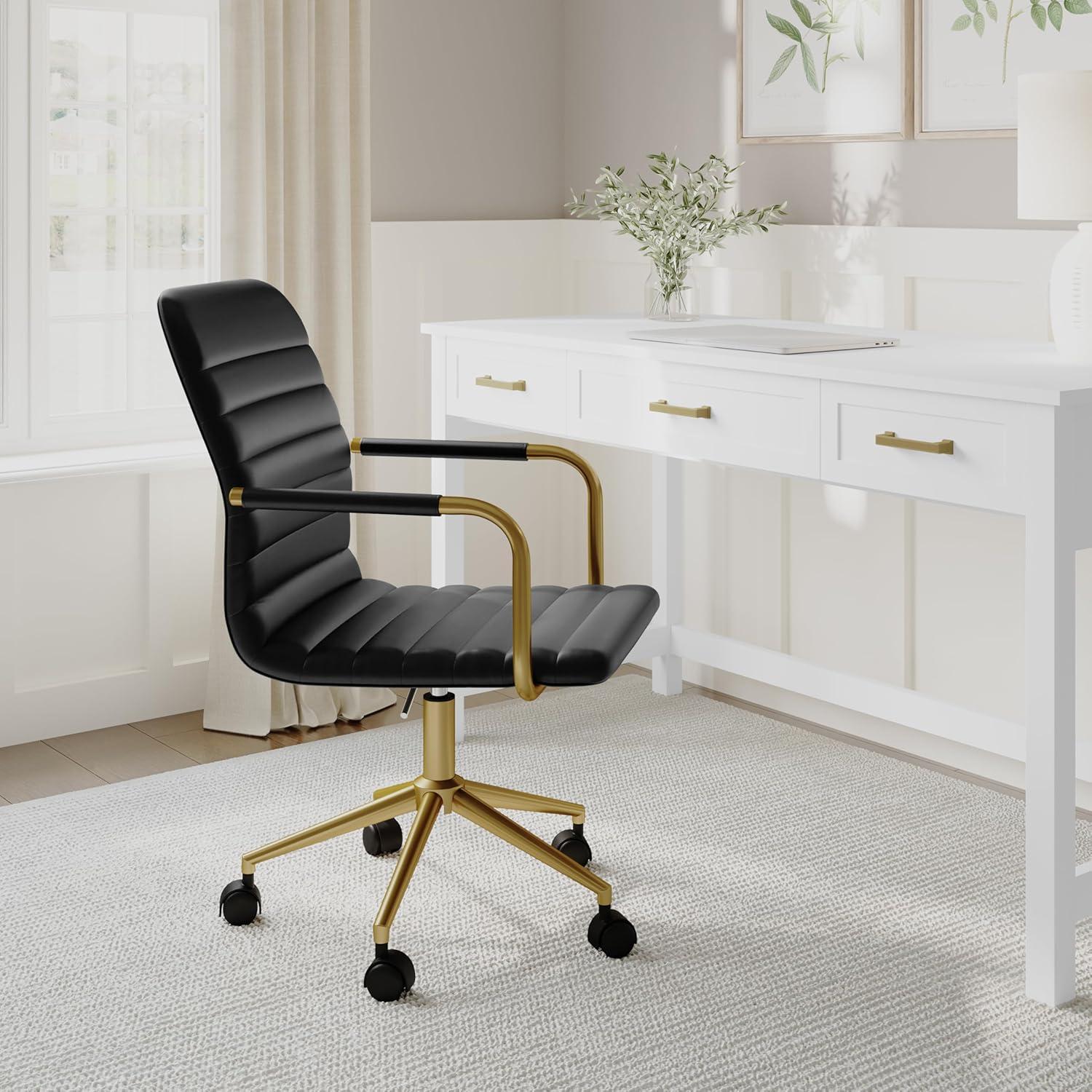 Martha Stewart Taytum Swivel Task Chair with Armrests for Home Office in White Faux Leather with Polished Brass Frame(Black Faux Leather/Polished Brass Frame)