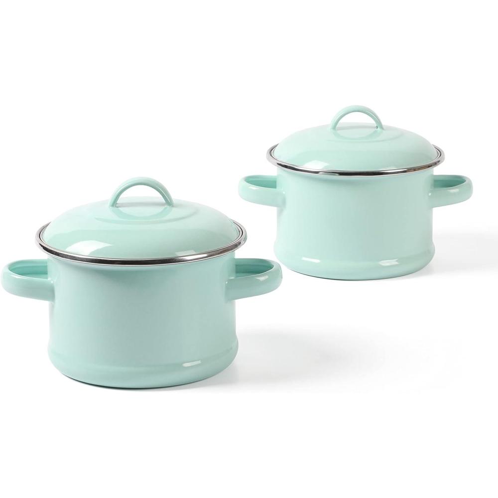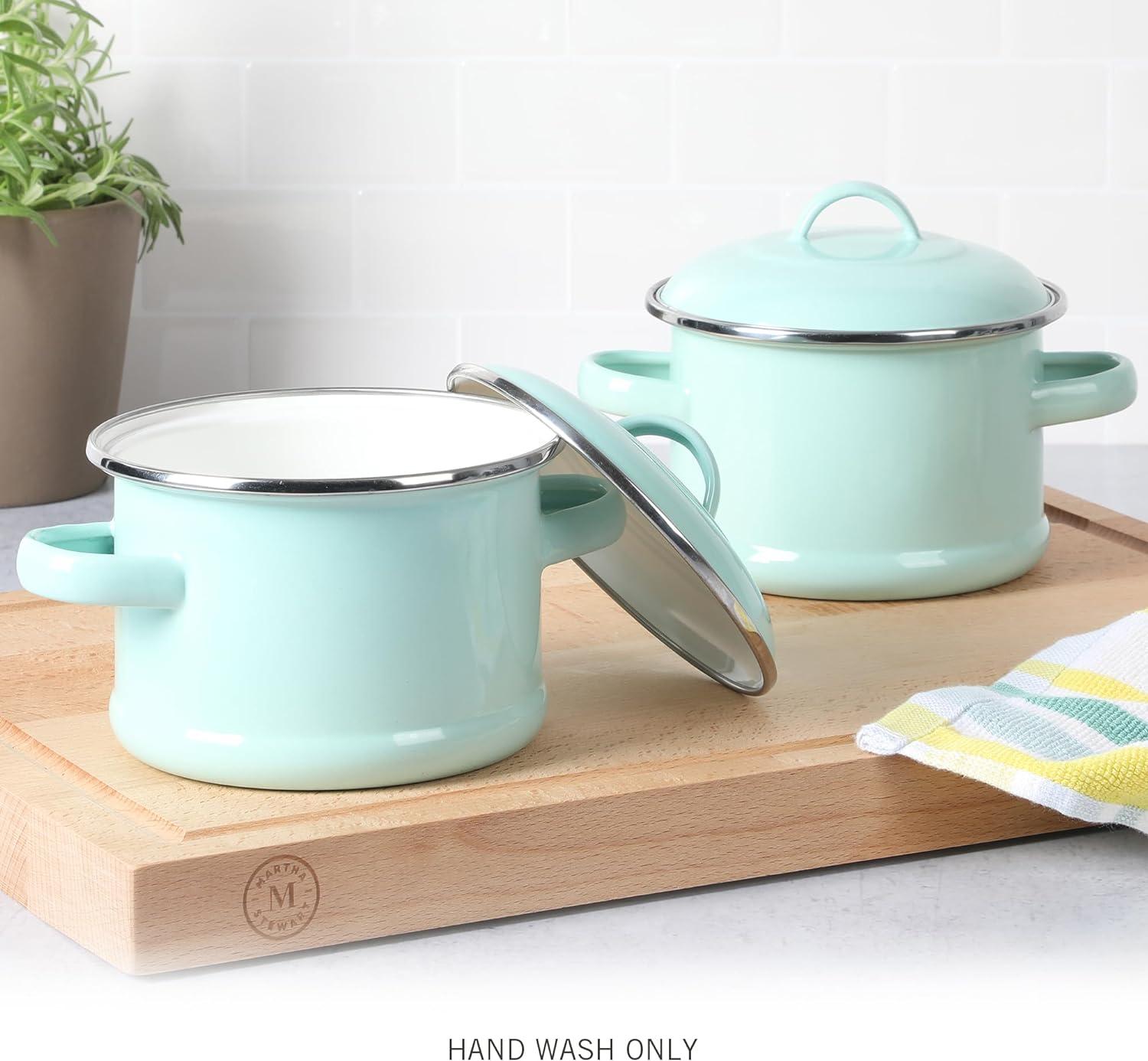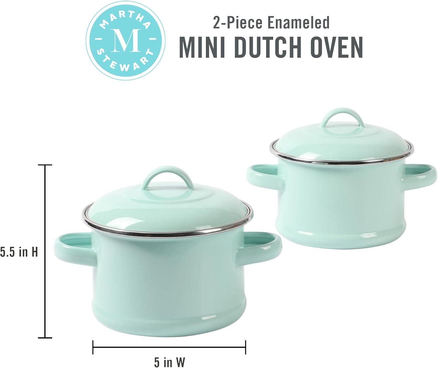 Martha Stewart Thayer 6.4-Quart Enamel On Steel Scratch Resistant Dutch Oven w/Lid - Martha Blue, Induction Safe(5.5" Mini Dutch Oven (2-Pack))