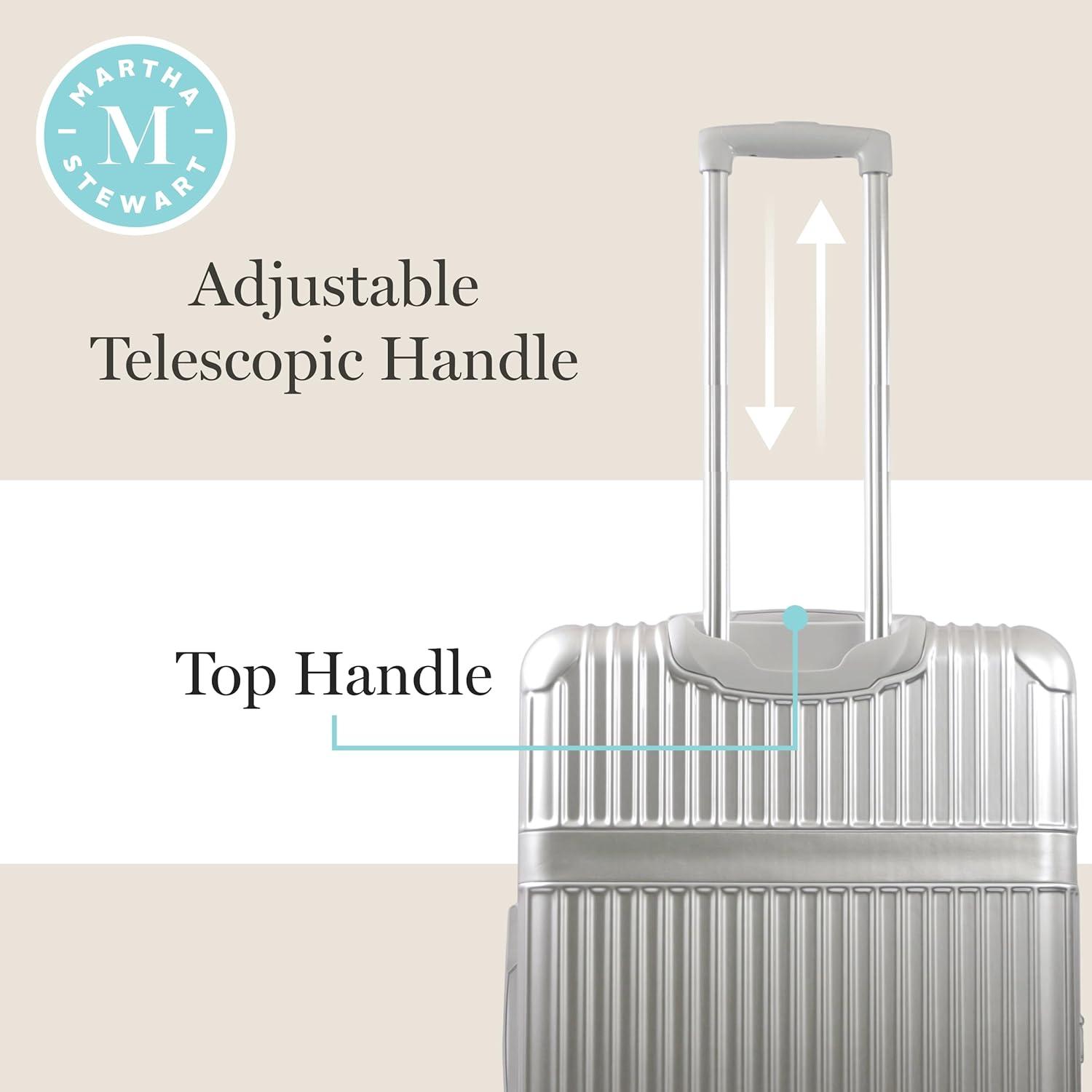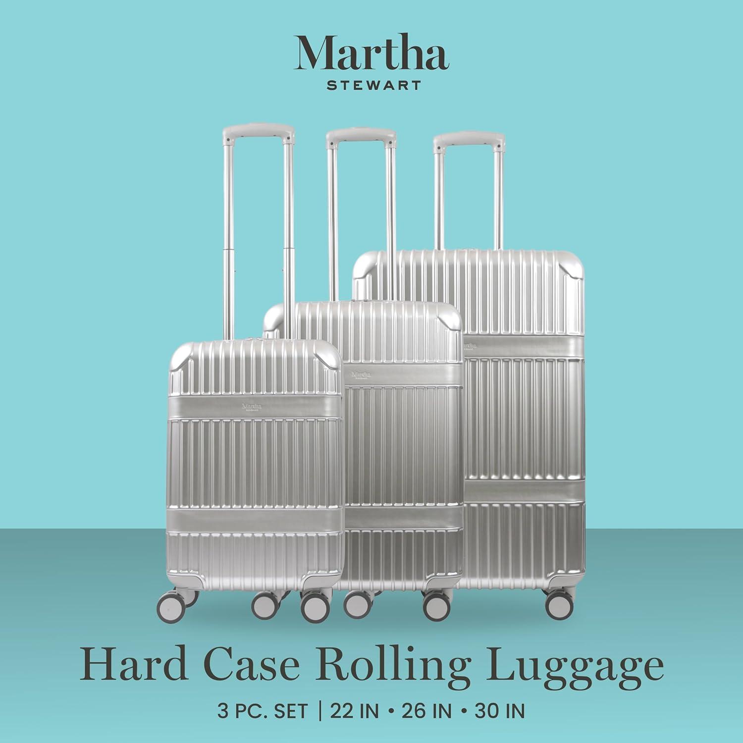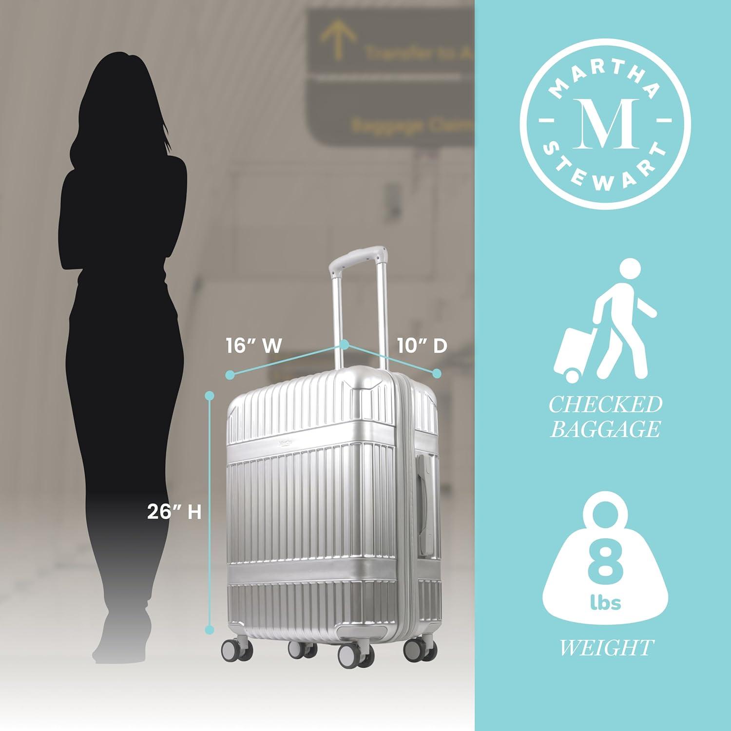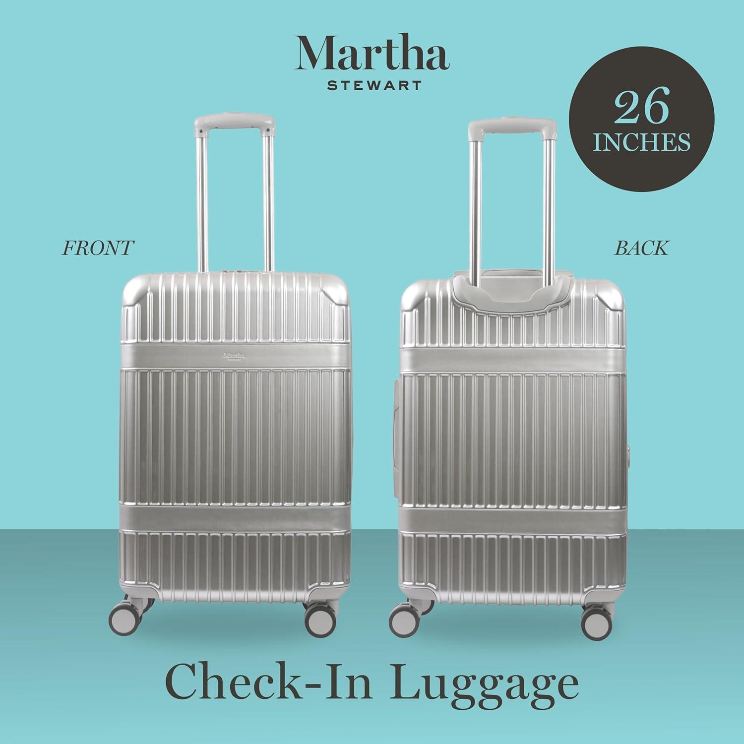 Martha Stewart The Bedford 26 Inch Rolling Luggage, Hardshell Suitcase with Spinner Wheels, Silver(Silver)