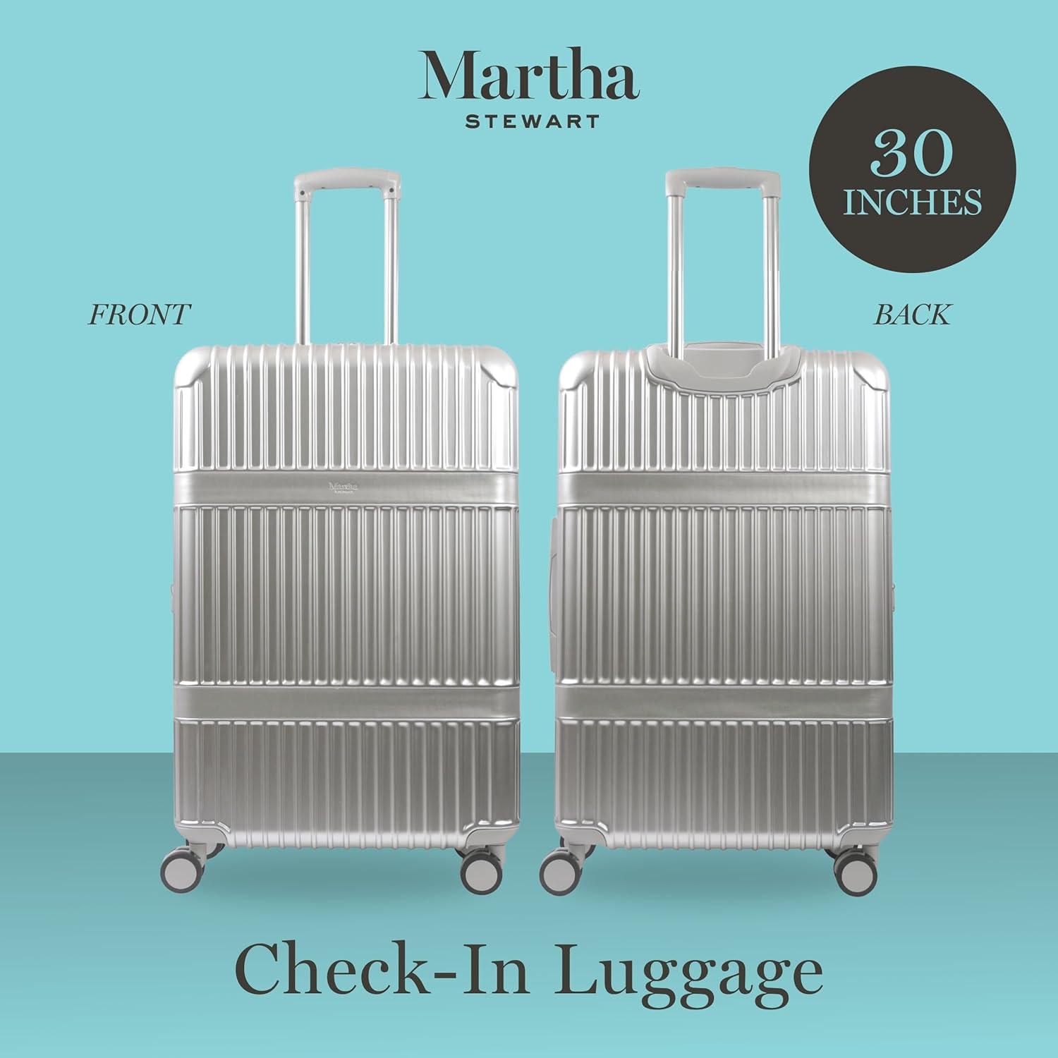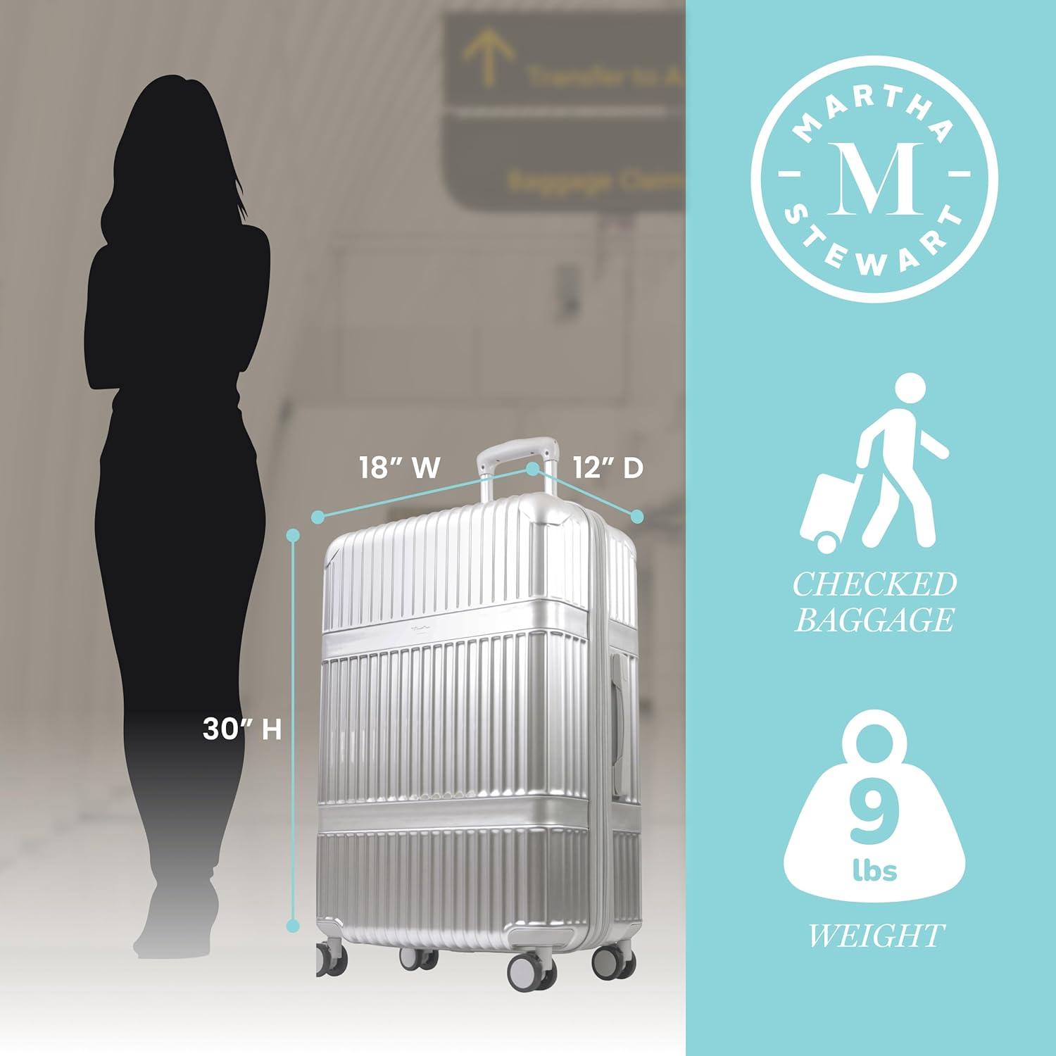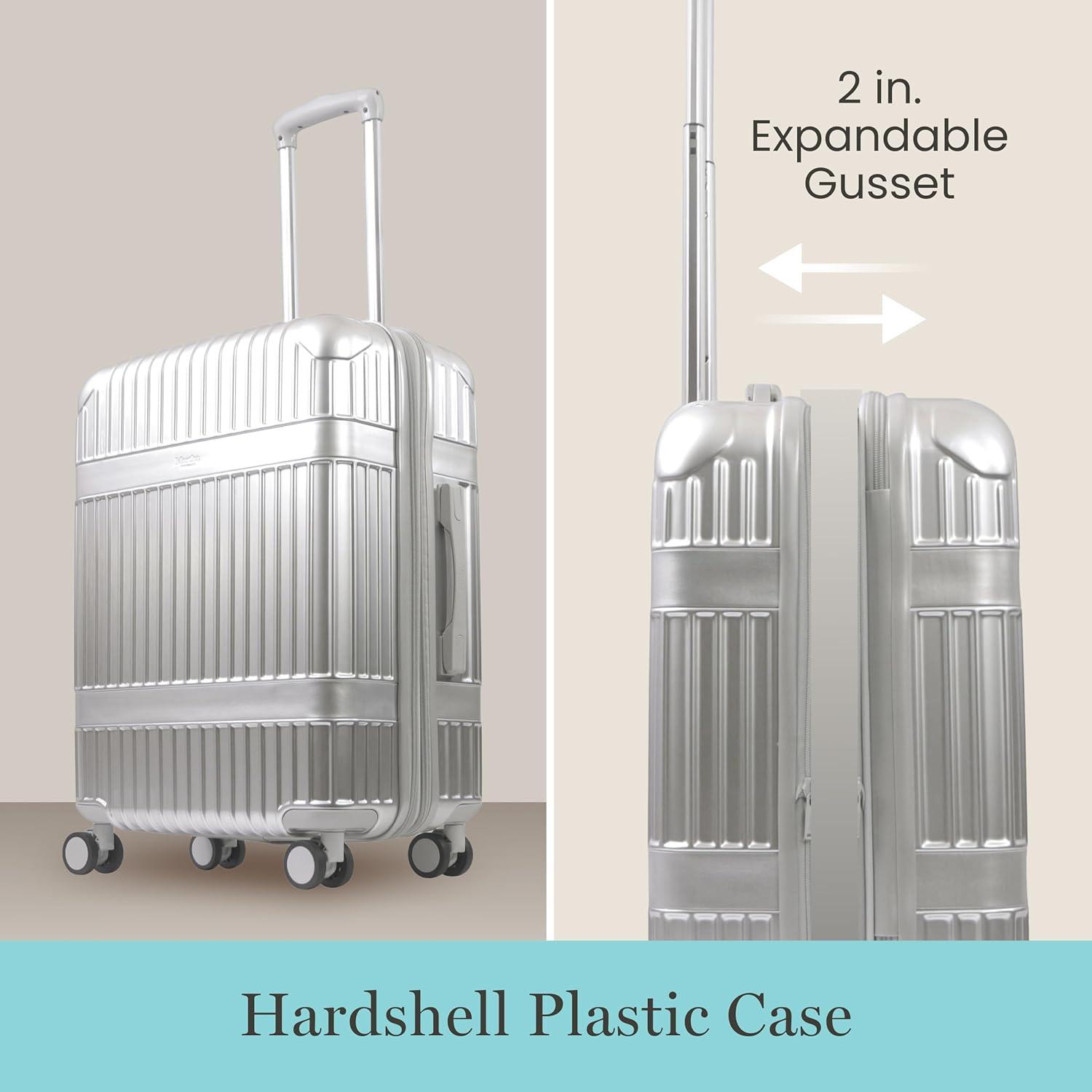 Martha Stewart The Bedford 26 Inch Rolling Luggage, Hardshell Suitcase with Spinner Wheels, Silver(Silver)