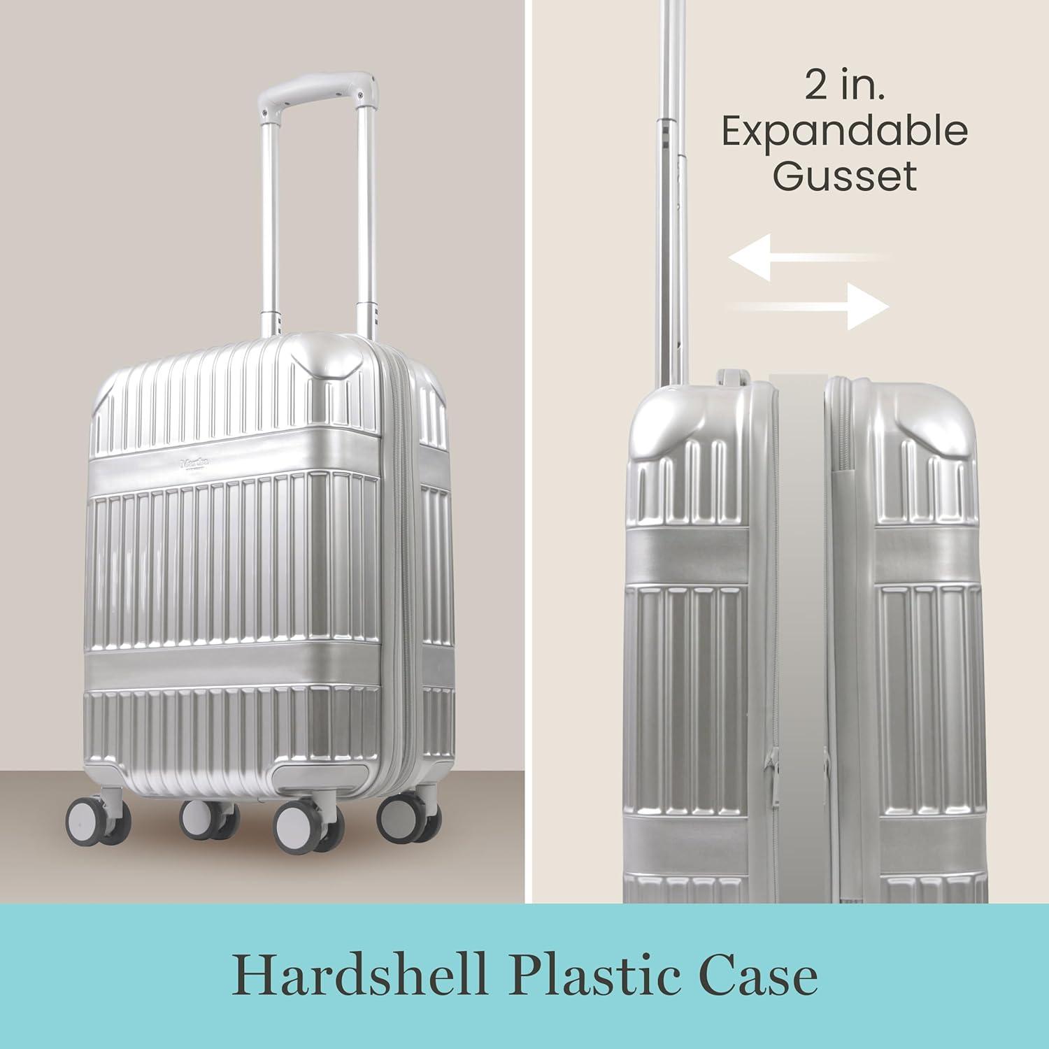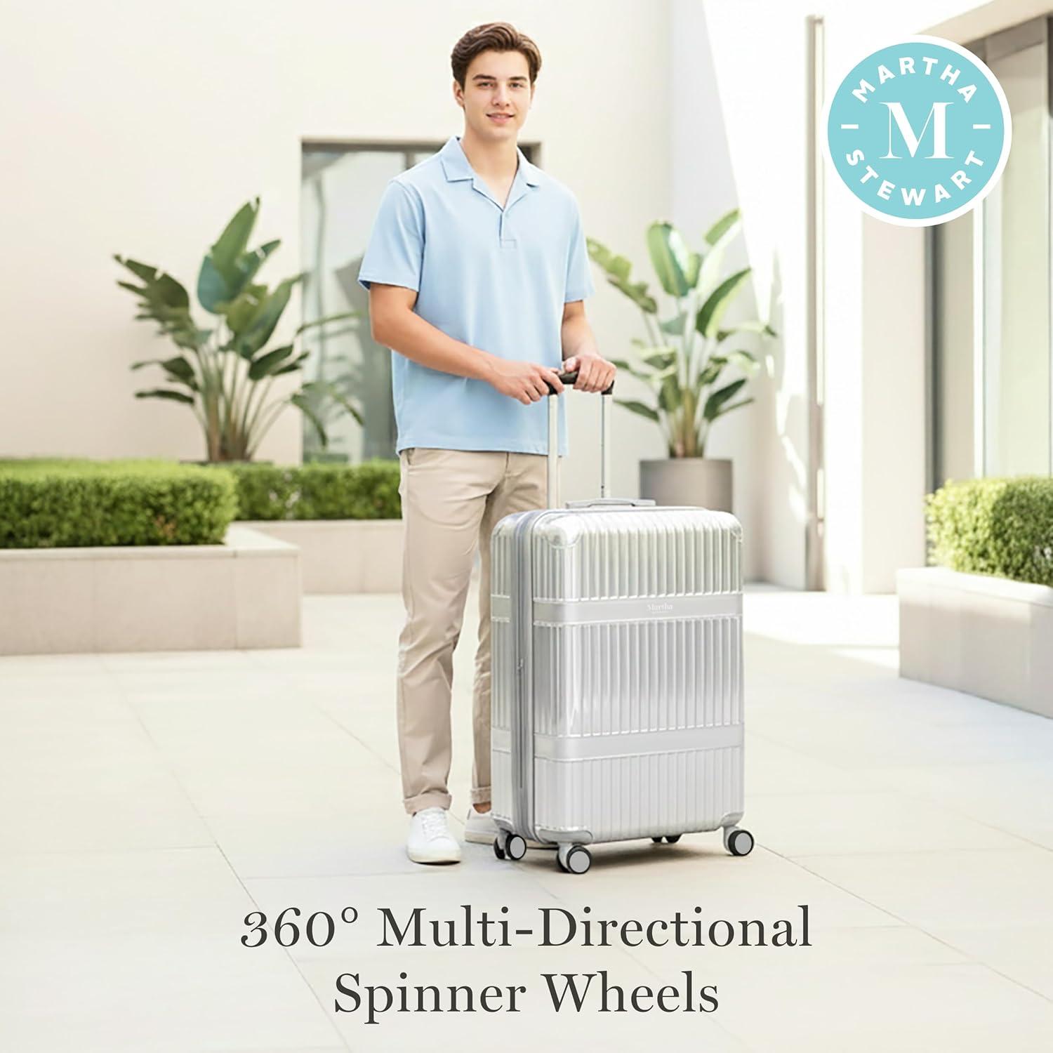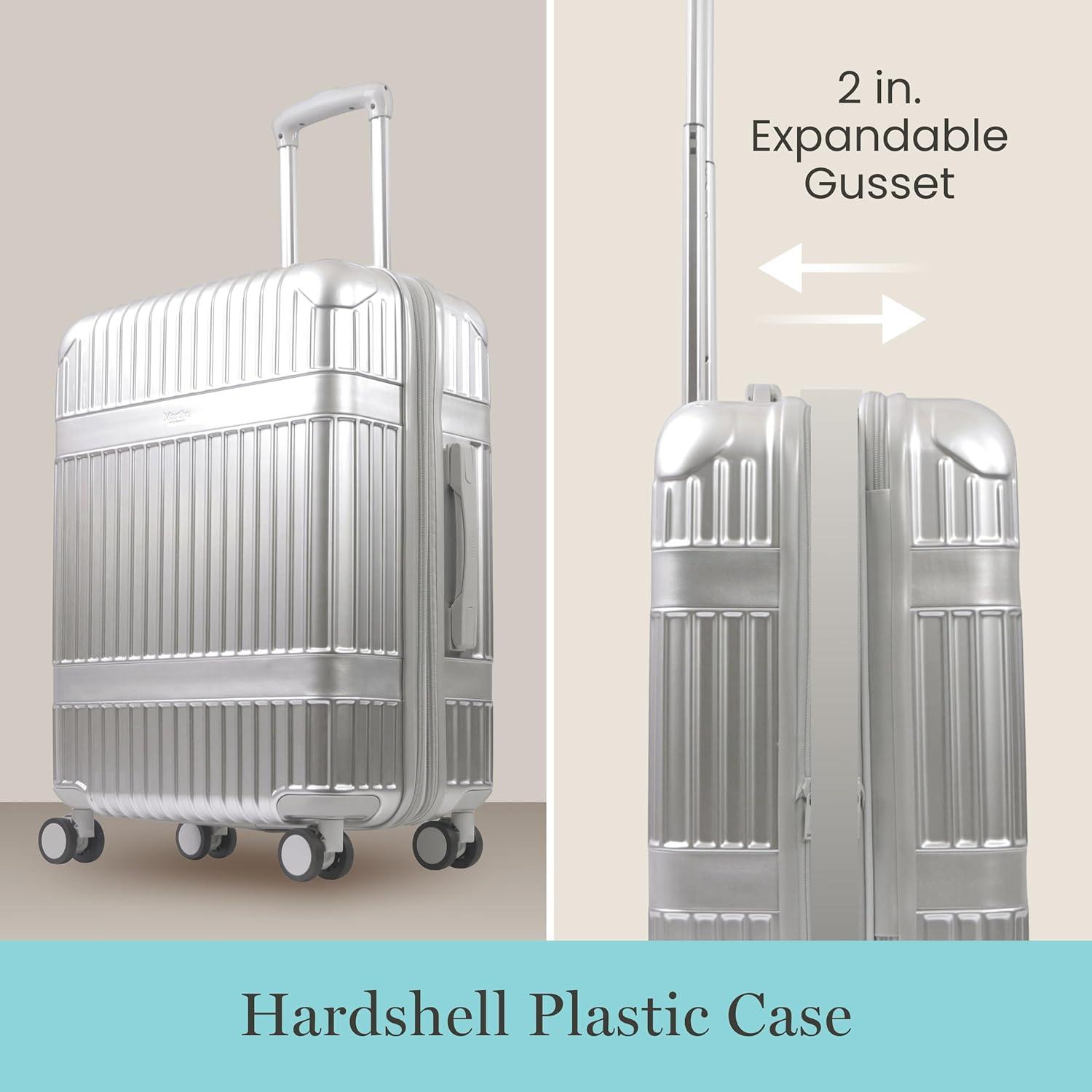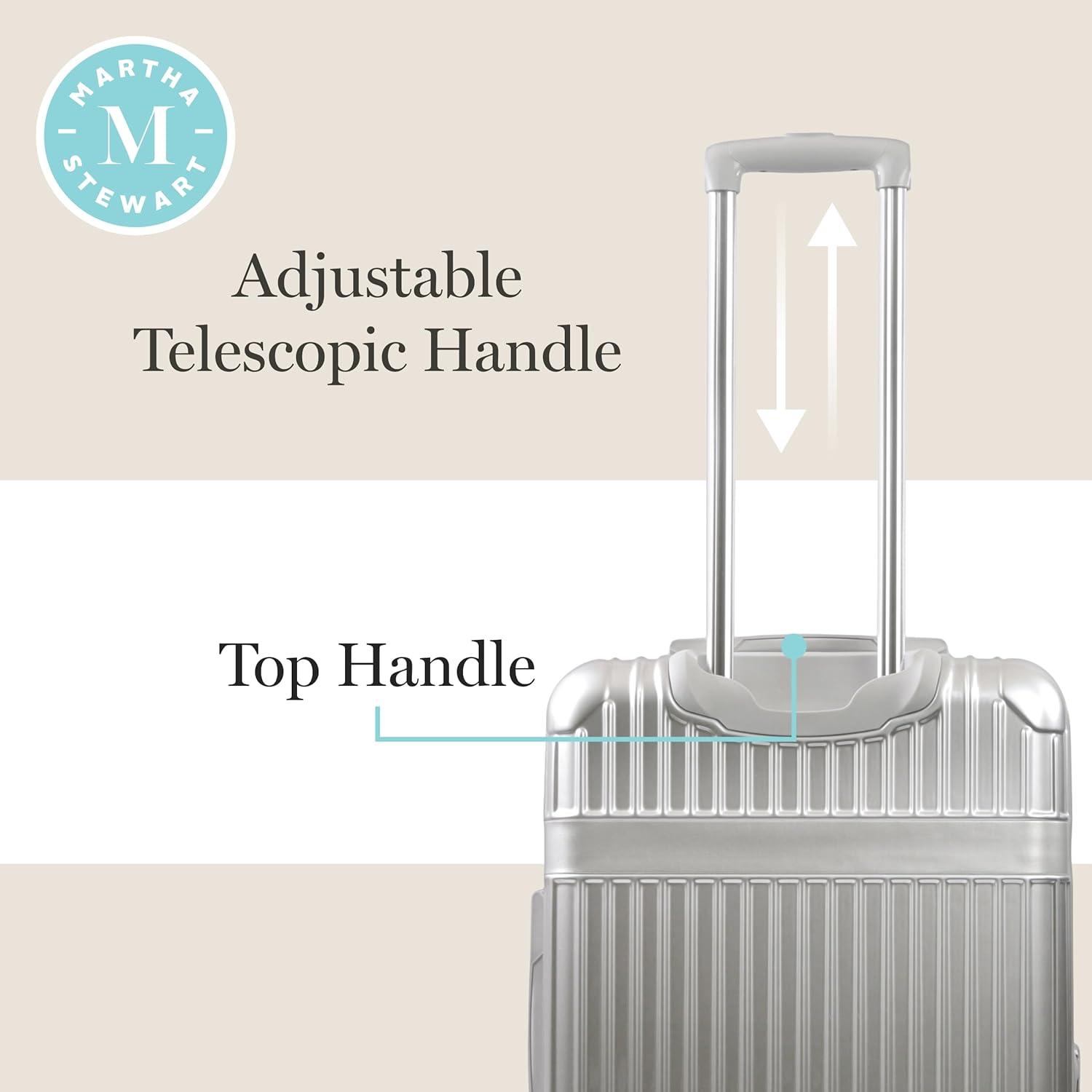 Martha Stewart The Bedford 26 Inch Rolling Luggage, Hardshell Suitcase with Spinner Wheels, Silver(Silver)
