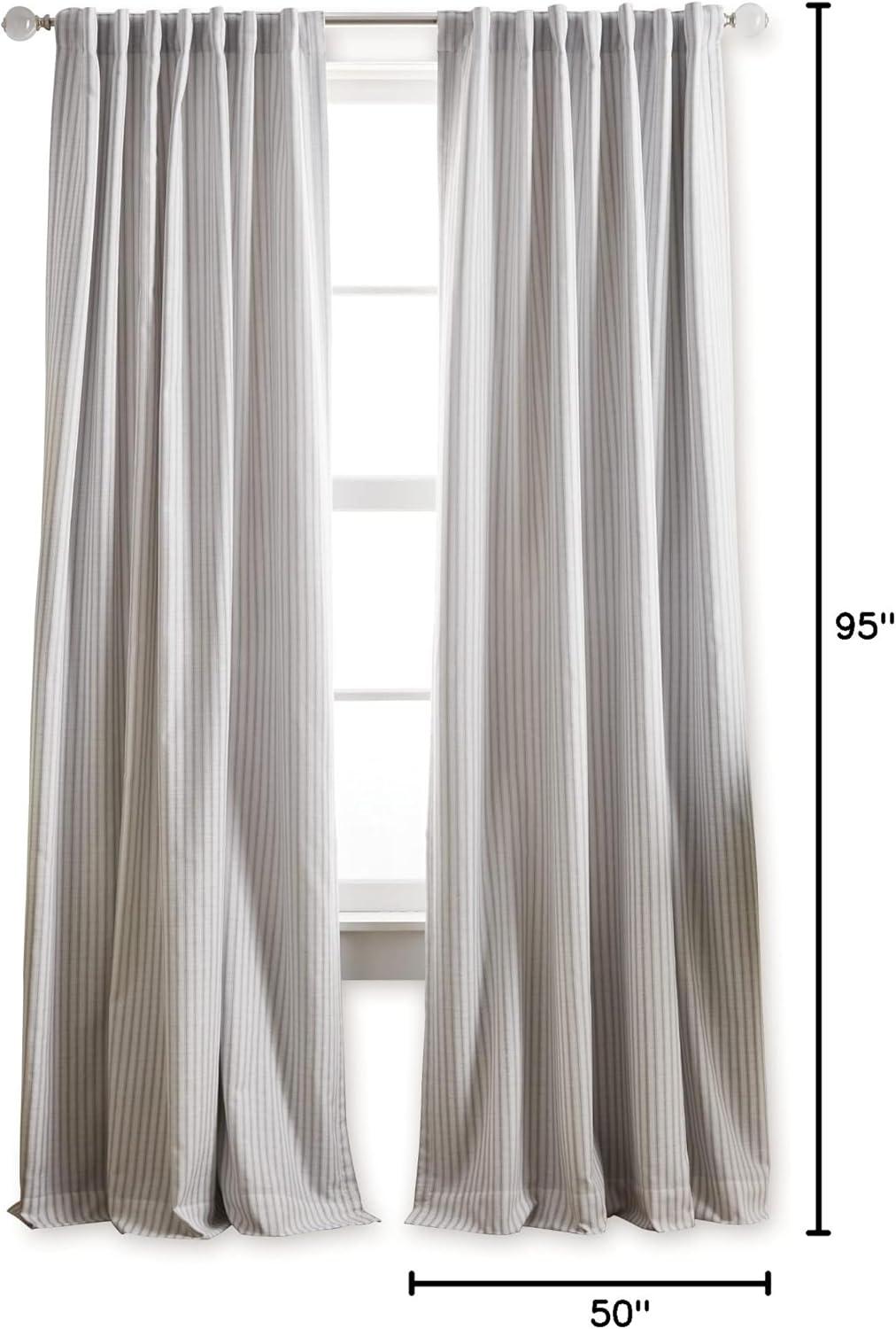Martha Stewart Ticking Stripe Blackout Lining Rod Pocket/Back Tab Window Curtain Panel Pair, 95", White/Grey(White/Grey)