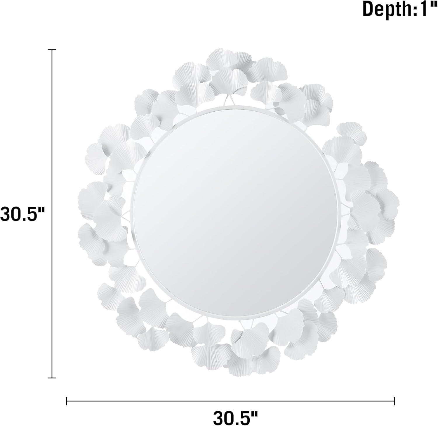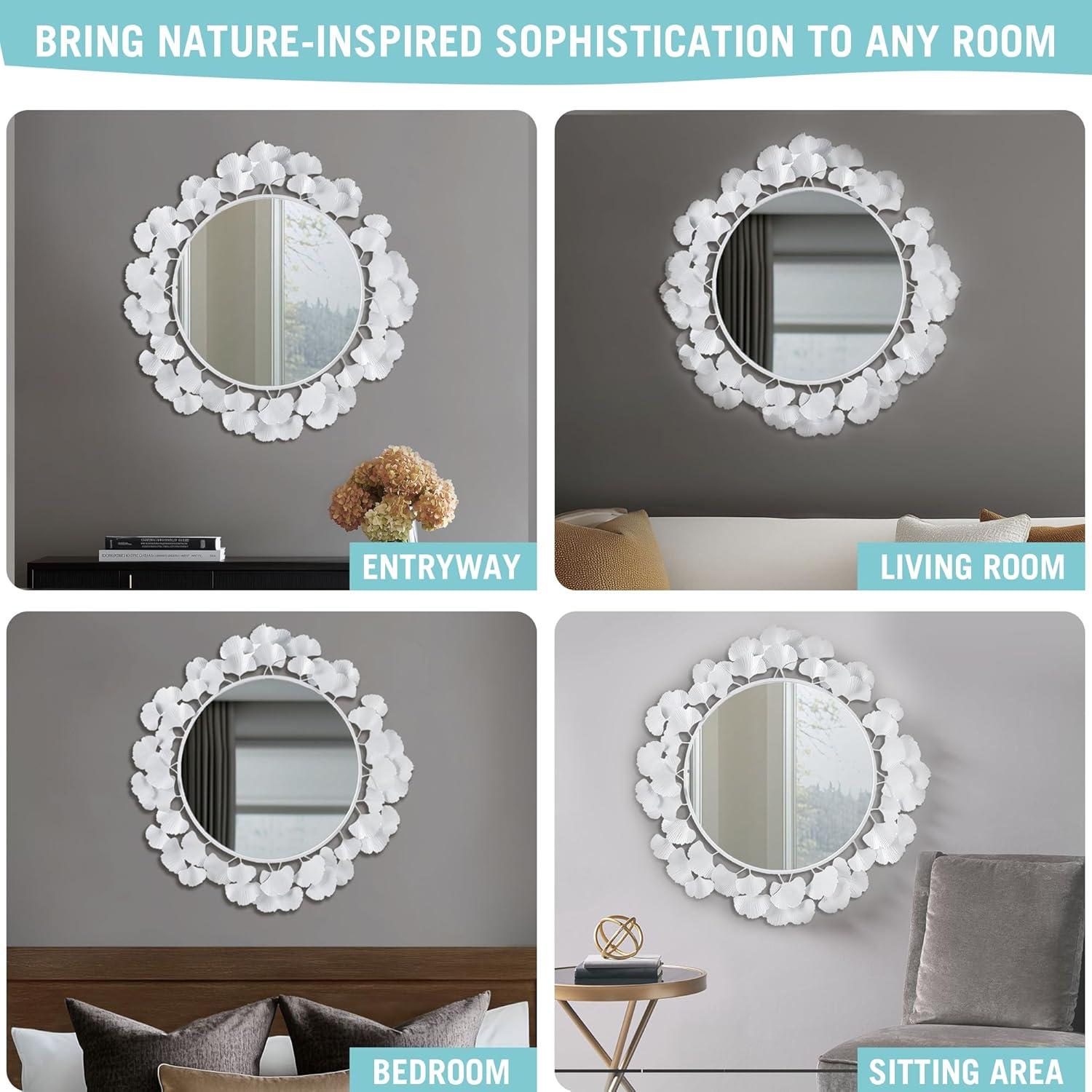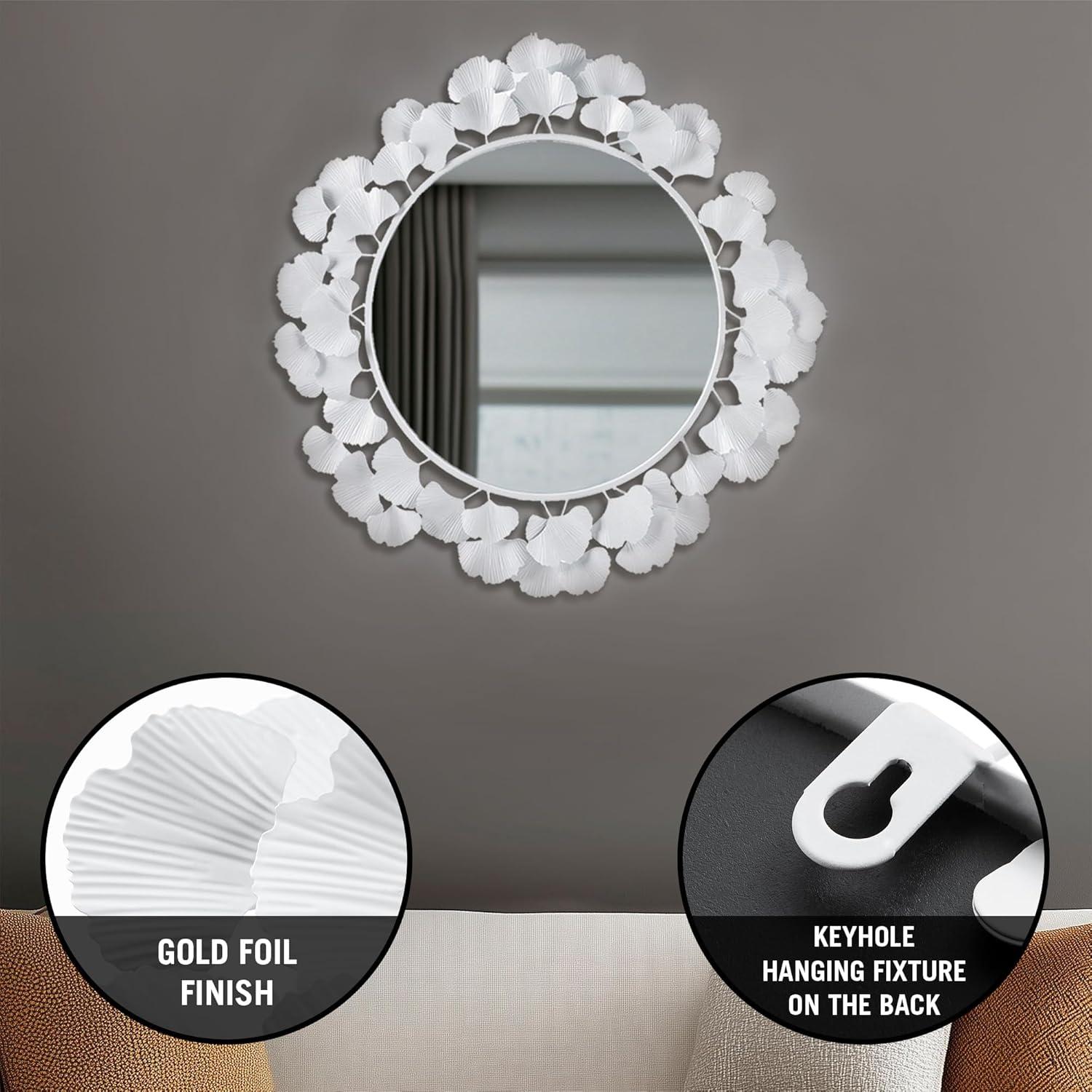 Martha Stewart Wall Décor Large Gingko Leaf Round Wall Mirror for Living Room, Iron Metal Plate Frame Antique Finish, Ready to Hang Bedroom Decoration, Eden, 30.5", Gold(White)