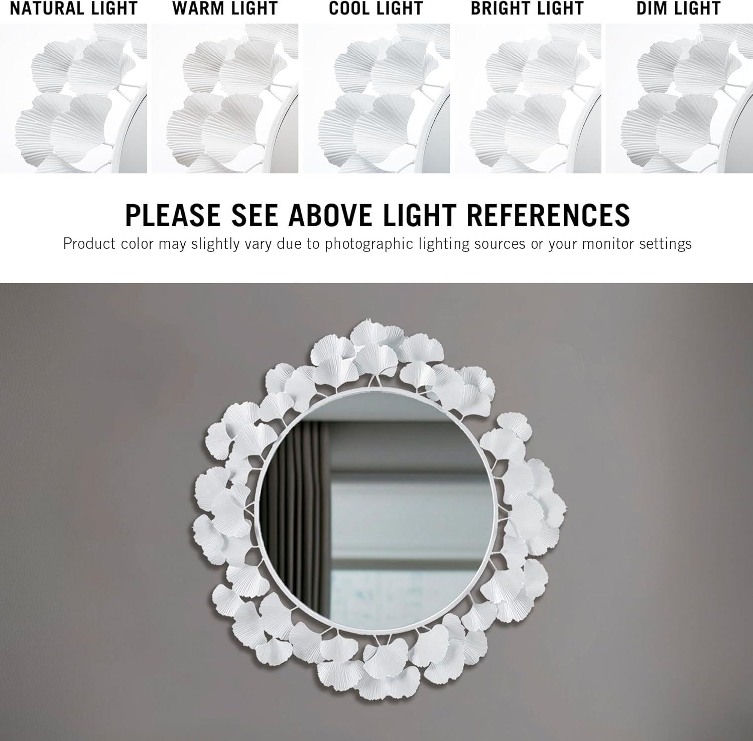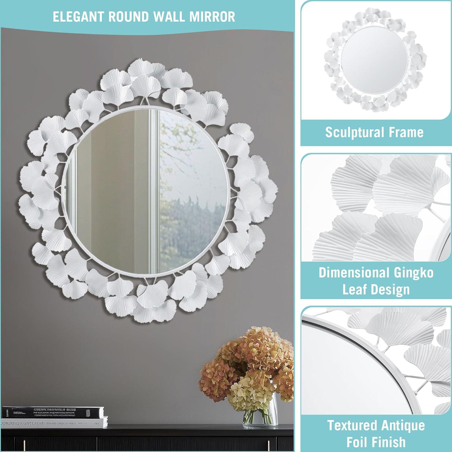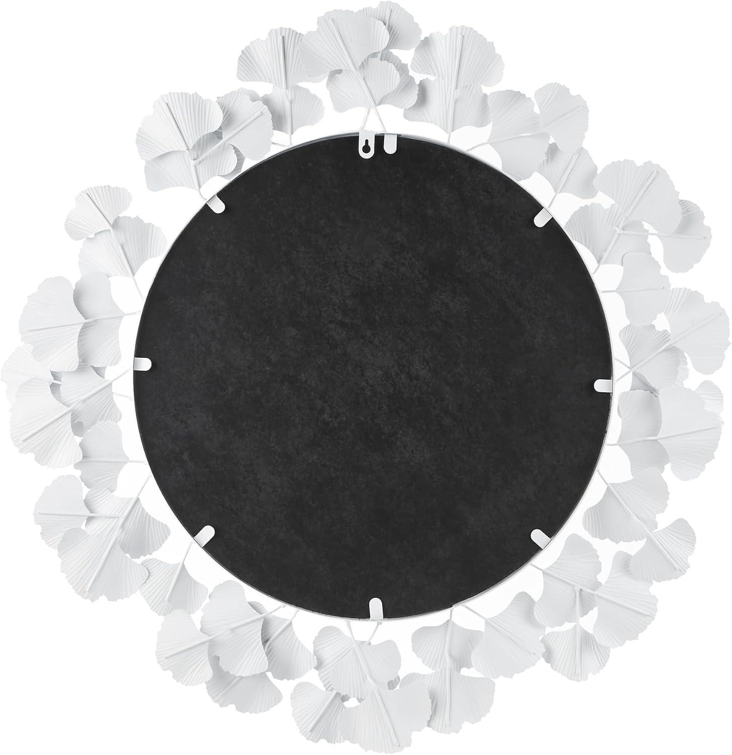 Martha Stewart Wall Décor Large Gingko Leaf Round Wall Mirror for Living Room, Iron Metal Plate Frame Antique Finish, Ready to Hang Bedroom Decoration, Eden, 30.5″, Gold(White)