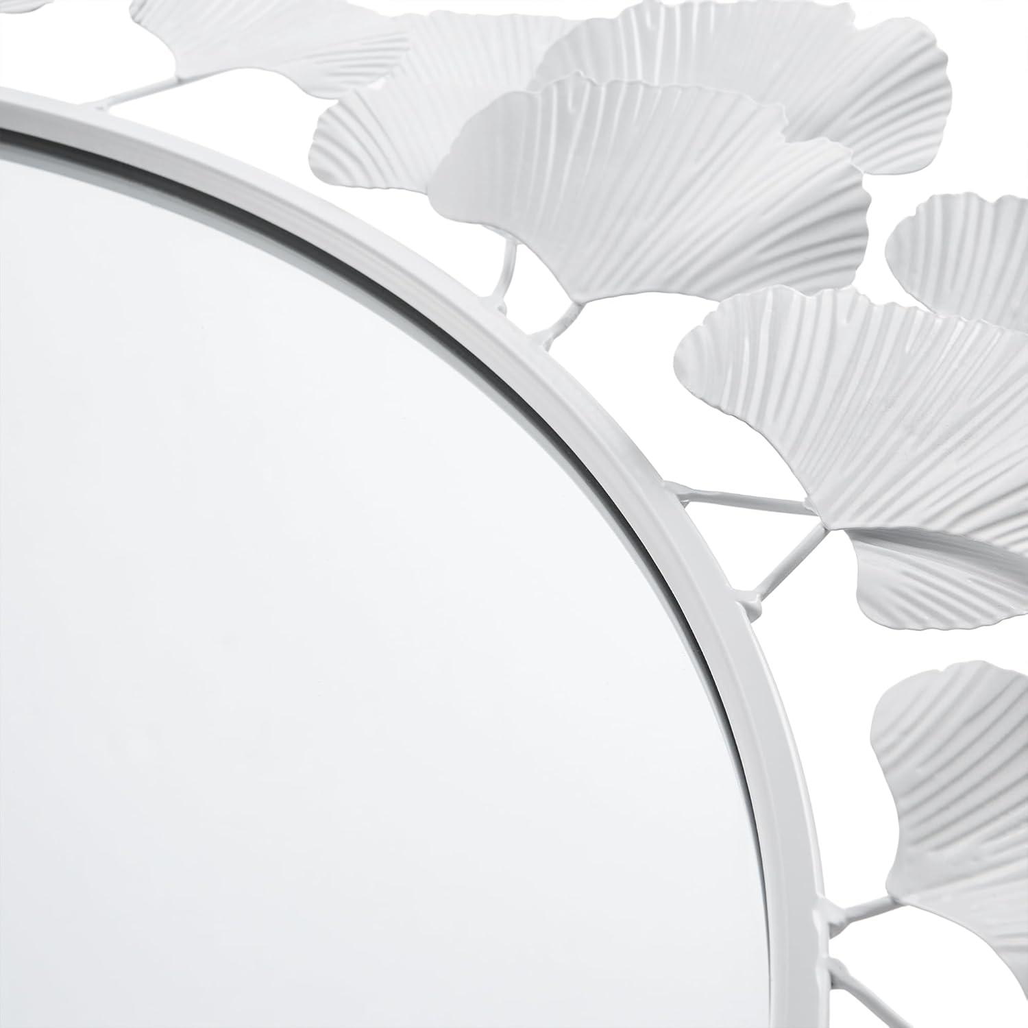 Add a touch of timeless elegance to your space with the Gingko Round Wall Mirror from the Martha Stewart Perry Street Collection. Featuring a beautifully sculptural frame adorned with intricate gingko leaves, this mirror brings nature-inspired sophistication to any room. Crafted from durable iron metal, it offers a refined and elegant appearance. The mirrored glass sits securely on an MDF backing, ensuring durability and clarity. Perfect for enhancing your entryway, living room, or bedroom, this round mirror is ready to hang with a convenient keyhole hanger. It effortlessly reflects light and style, making it an eye-catching statement in your home.