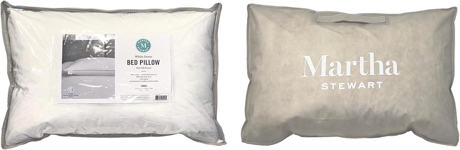 Martha Stewart White Down Pillows 600 Fill Power Luxury Hotel Bed Pillow Cooling Breathable Sleeping Pillows Made in USA(Jumbo(Set of 1 Pack))