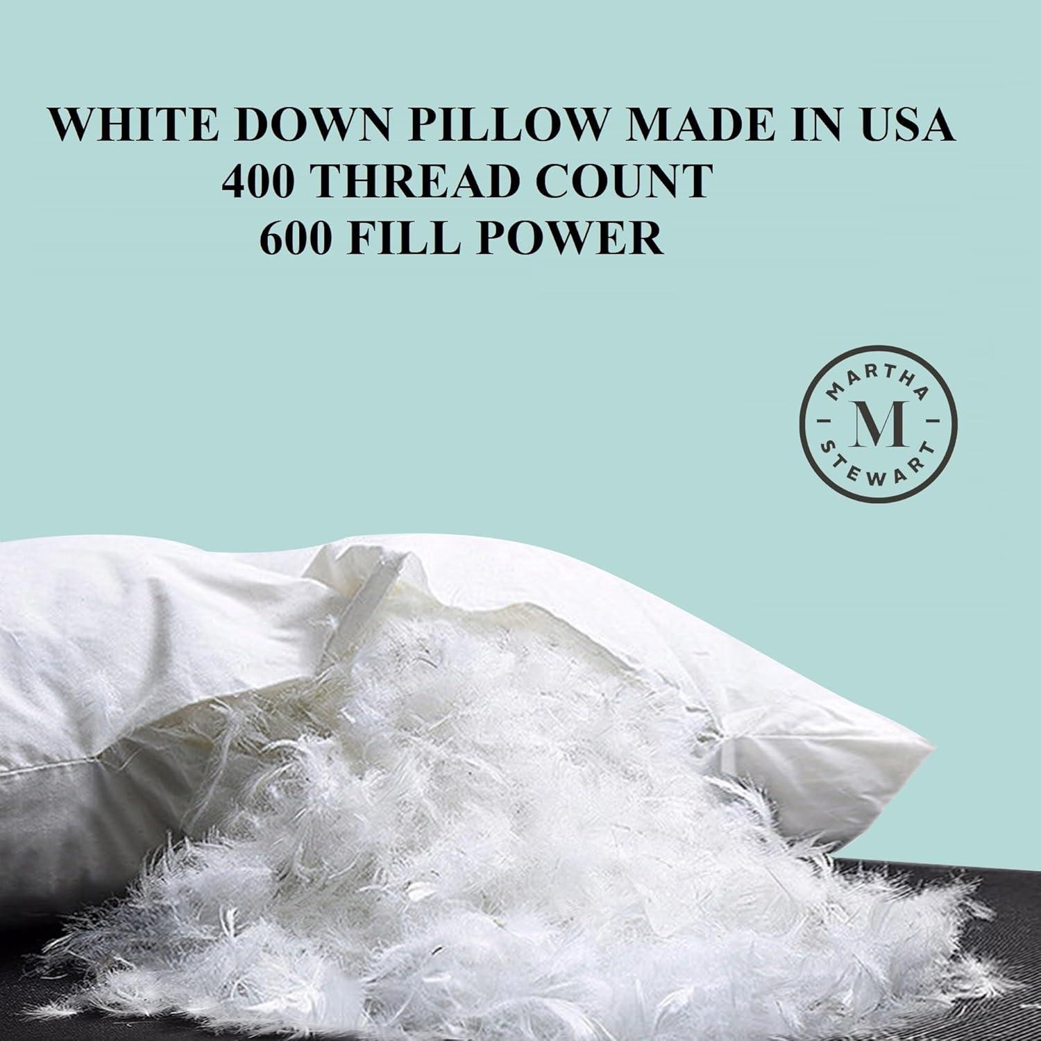imageMartha Stewart White Down Pillows 600 Fill Power Luxury Hotel Bed Pillow Cooling Breathable Sleeping Pillows Made in USAJumboSet of 1 Pack