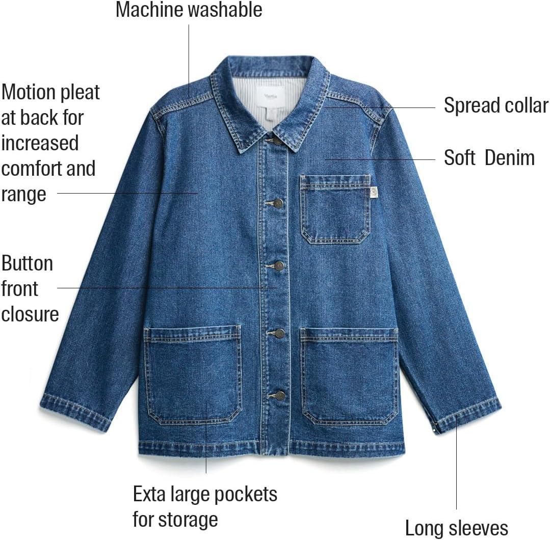 Martha Stewart Women’s Garden Chore Jacket, Lightweight Utility Coat, Casual Outerwear, Long Sleeve(Vintage Wash)