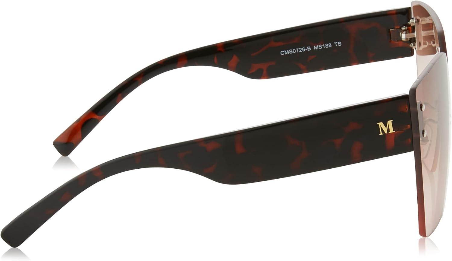 Discover these Martha Stewart Women's MS188 Oversized Square Cat Eye Shield Sunglasses. These women's shield sunglasses are a modern cat eye square shape with double metal rivet accents and clear adjustable nosepads for added comfort. Present a fashion-forward and polished look, all day, both indoors or outdoors & all year long with UV400 lens protection. Timeless modern gifts for women. Grab an extra pair for both of you as a back-up!