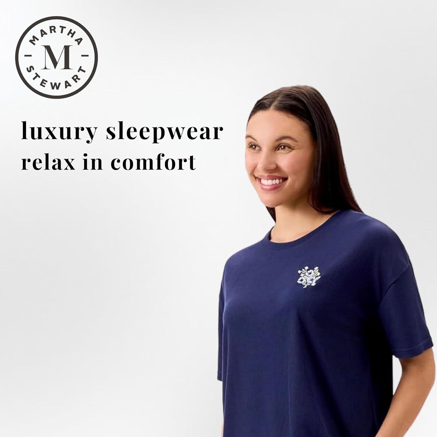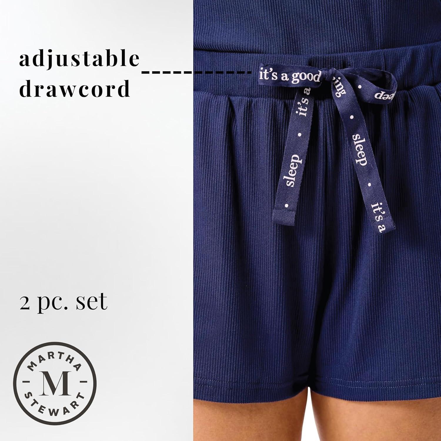 imageMartha Stewart Womens Pajama Shorts Set  Soft Ribbed Jersey Sleepwear  2Pc Short Sleeve Top and Shorts  Light and ComfyQuiet Tide