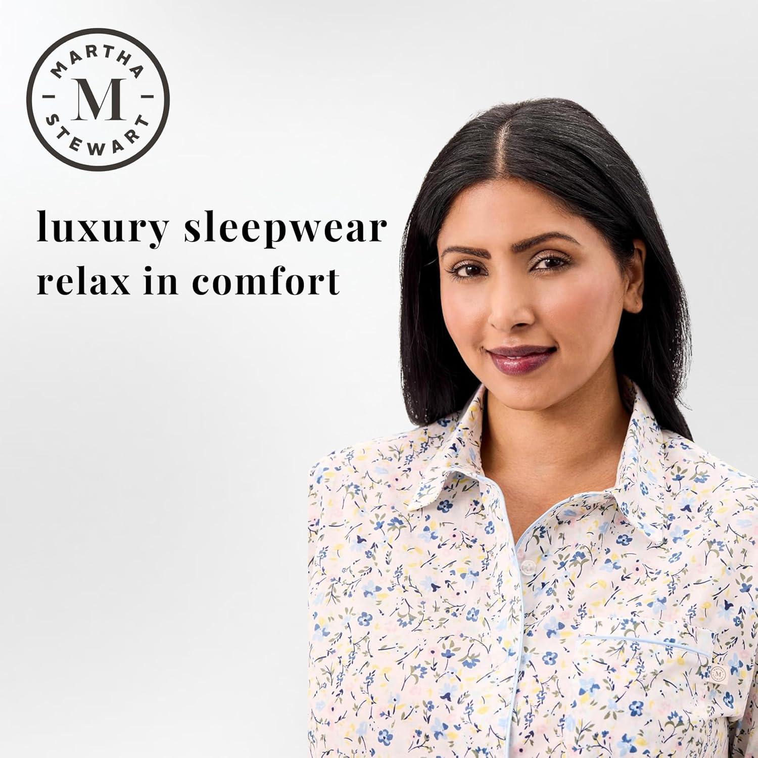 Martha Stewart Women’s Pajama Set | Soft, Breathable Sleepwear | 2-Pc Notch Collar Short Sleeve Button Down | Relaxed Comfort(Medieval Blue)
