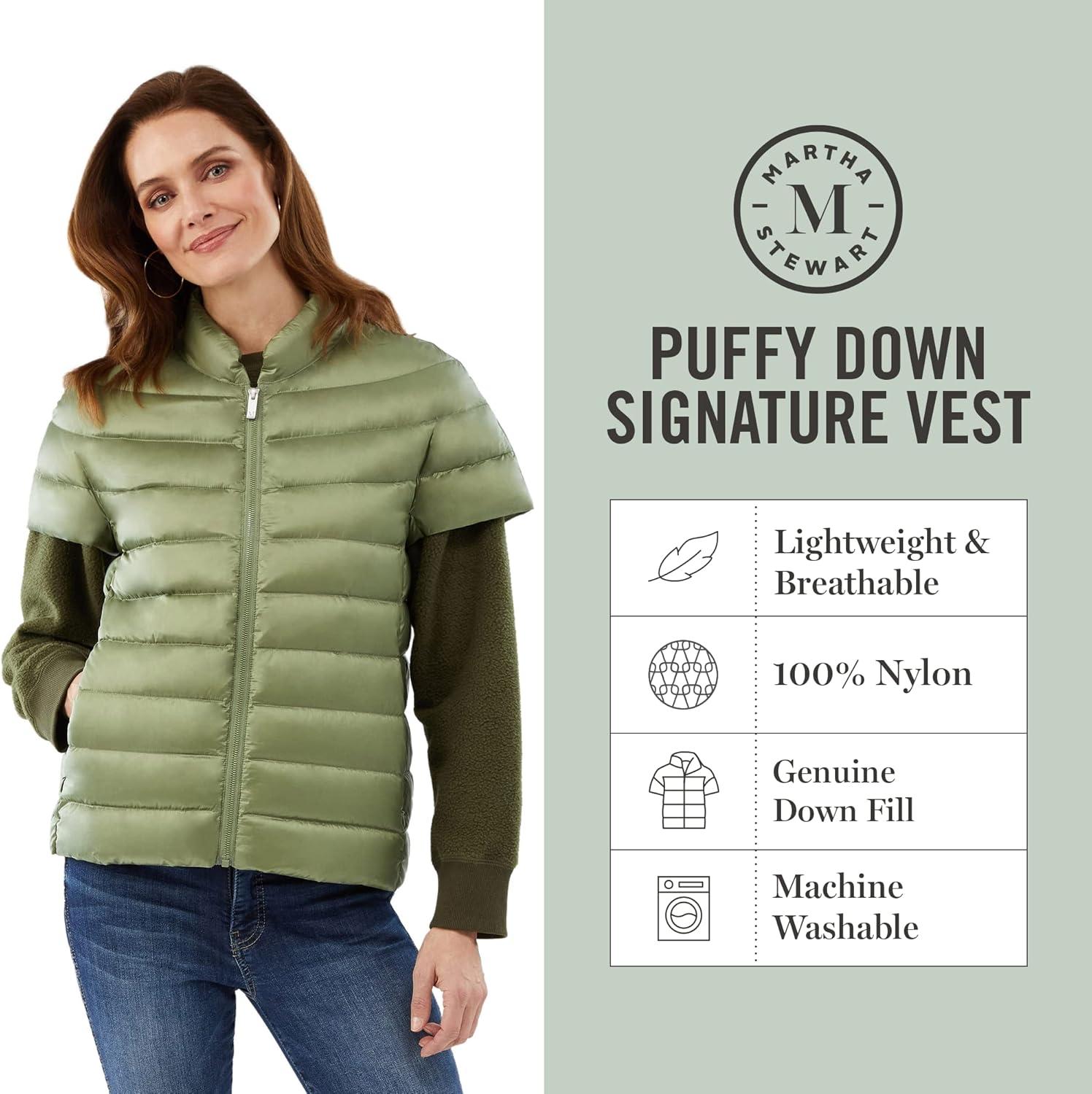 Martha Stewart Women's Short Sleeve Quilted Down Puffer Vest(Sage)