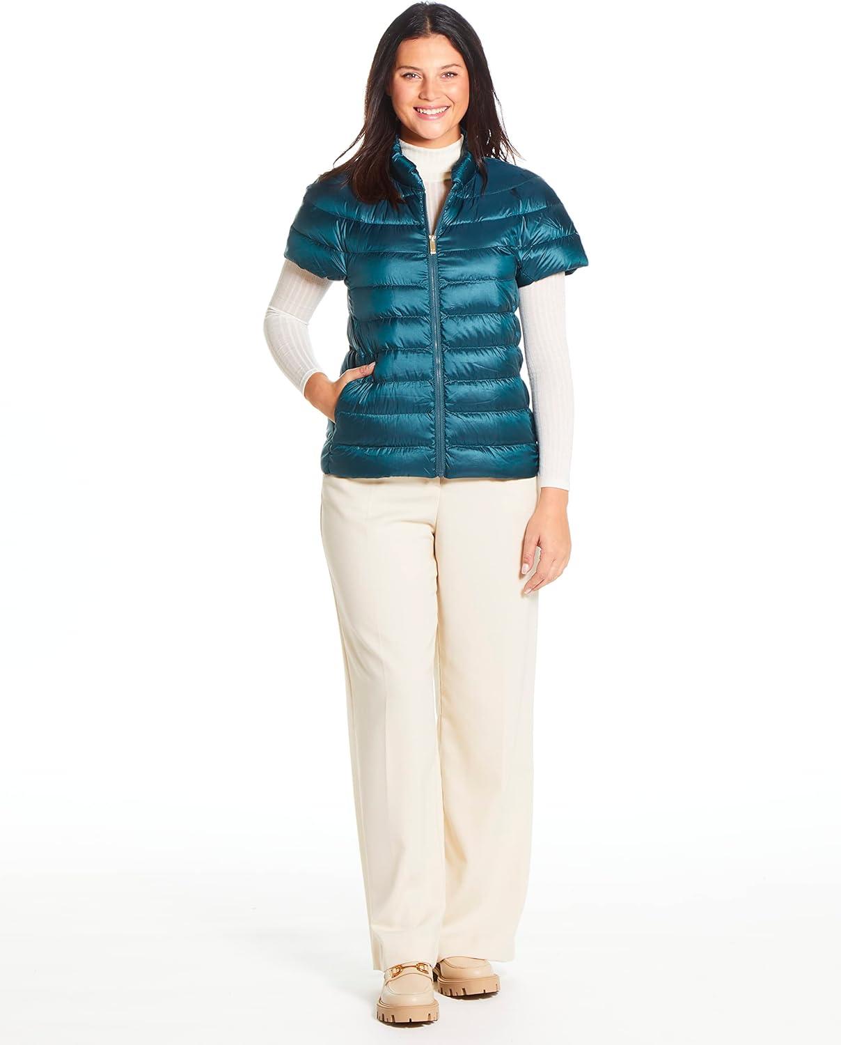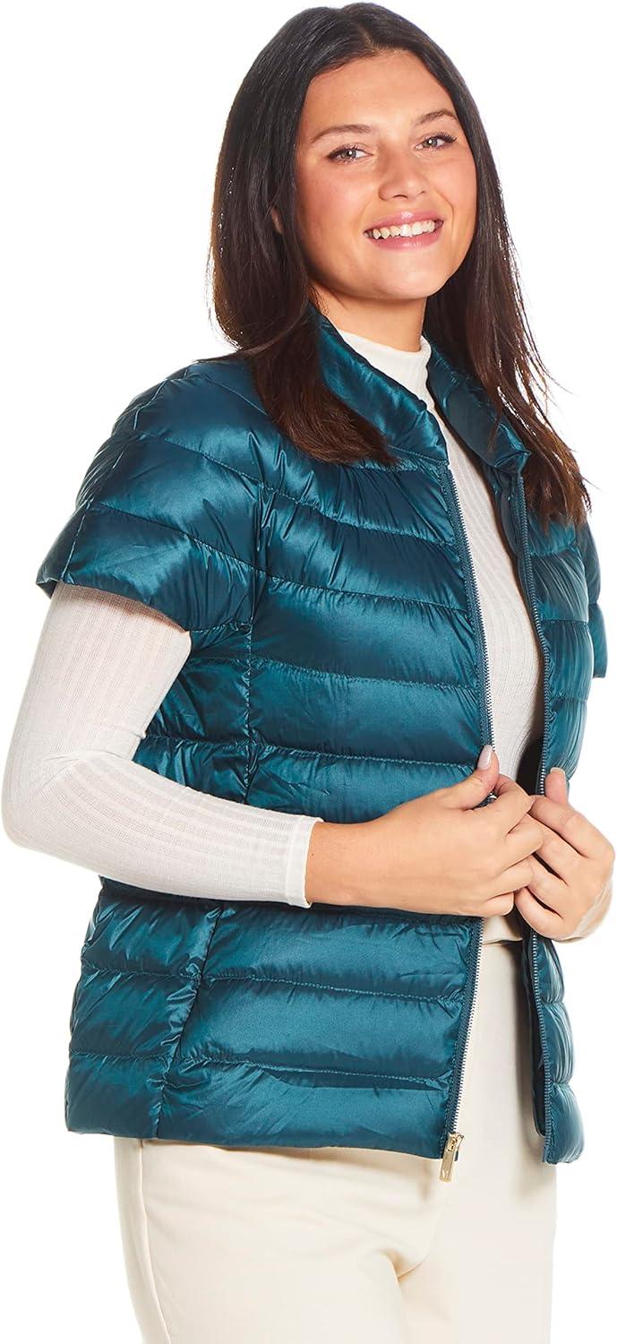 Martha Stewart Women’s Short Sleeve Quilted Down Puffer Vest(Sea Green)