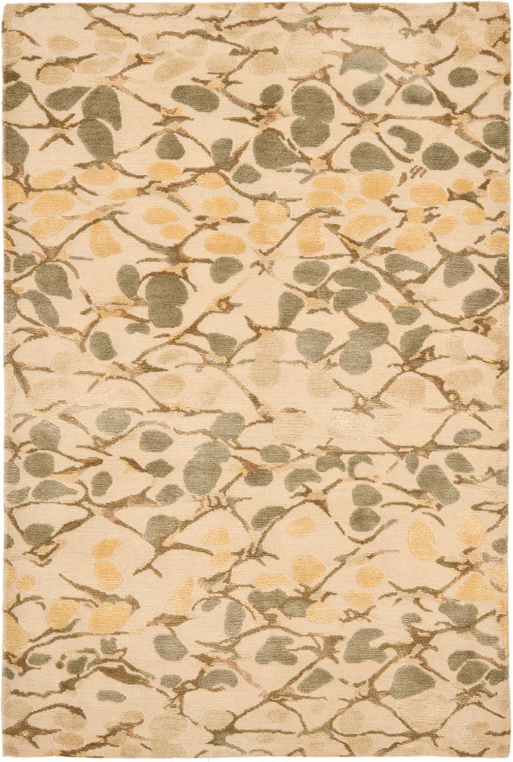Martha Stewart x SAFAVIEH Area Rug Collection - 8' x 10', Bard Red, Hand-Knotted Silk & Wool, Ideal for Living Room, Bedroom, Office, Dining Space (MSR8641B)(Wheat Beige)