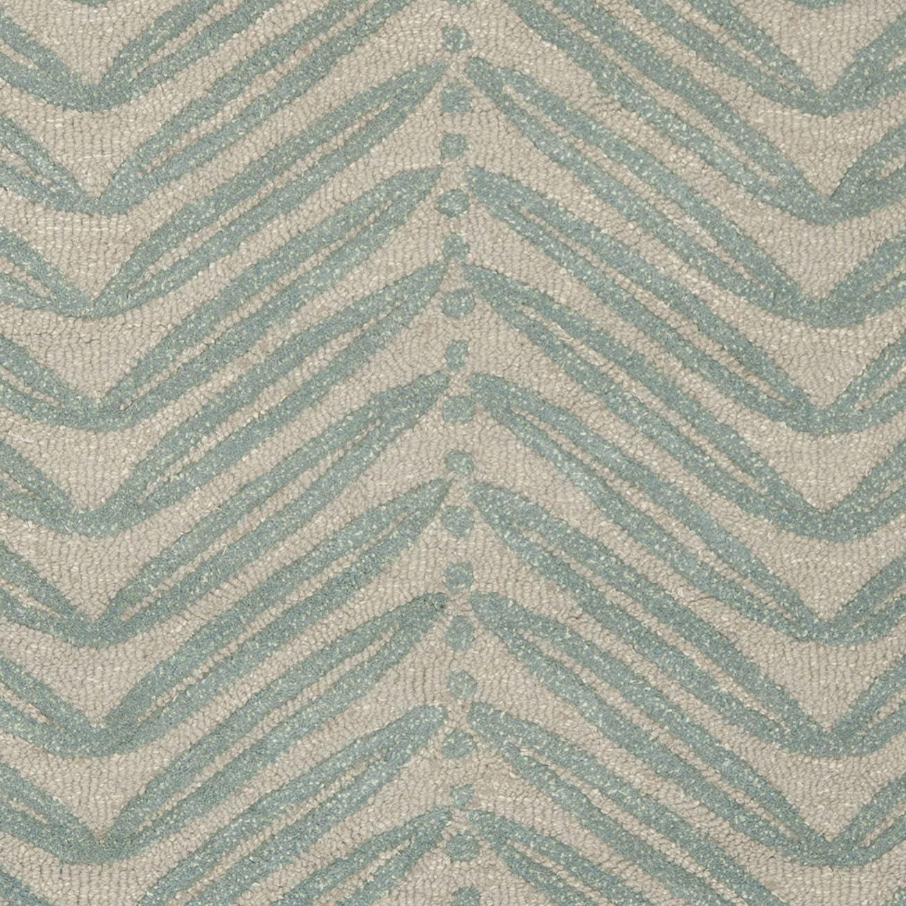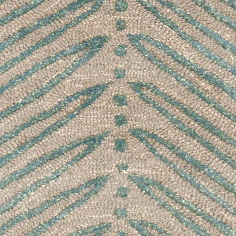 Inspired by a vintage printed paper, the foliage of Chevron Leaves has been dramatically increased in scale to create an unexpected yet decidedly elegant stripe. Cut-pile viscose yarns add depth and dimension to the loop pile New Zealand wool ground. Rendered in a palette of pale fashion colors, this transitional design is hand-tufted by skilled artisans in India.